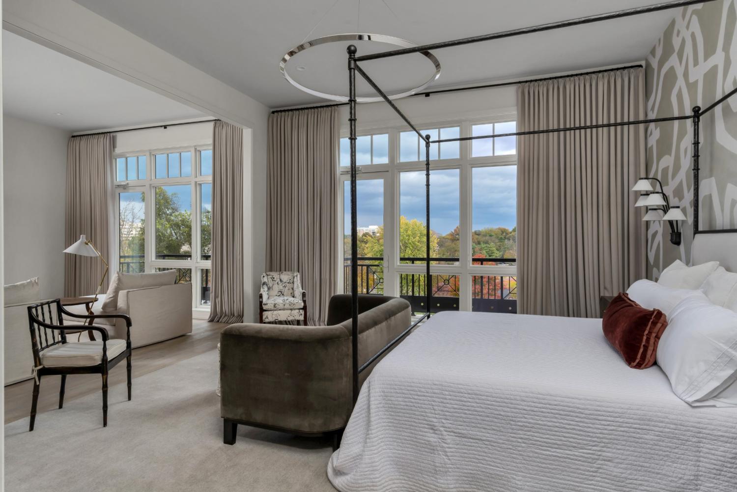 A rare chance to own the only popular "C"-unit available in The Manning—a bespoke, one-level residence offered fully furnished with exquisite pieces by renowned designer Robin Rains. A curated blend of collectible antiques and contemporary furnishings creates a truly Architectural Digest–level interior. The open layout, 11’4” ceilings, wide-plank hardwoods, marble baths, and a Christopher Peacock kitchen with Wolf and Sub-Zero appliances make the home feel expansive and refined. Every room to outdoor balcony space for a total of 475 SF, with an outdoor kitchen featuring a vented Wolf grill and beverage refrigerator overlooking Gavin Duke–designed gardens, a stunning pool with fountains, and views of the Green Hills and Nashville skyline. The owner combined two bedrooms to create an oversized primary suite, but the plan can be easily reconfigured back to offer three bedrooms. Two private, secure garage spaces and a large storage unit are included. The Manning offers unmatched amenities: 24/7 concierge, multiple security gates and cameras, swimming pool, cabanas and pavilion, fitness center, massage room, library/card room, boardroom, guest suite, and an owners’ grand salon with dining room, wine tasting room,catering kitchen, and piano bar lounge as well as even more outdoor and indoor owner spaces. Shown by appointment to qualified buyers. Proof of funds or adequate identification required prior to showings.