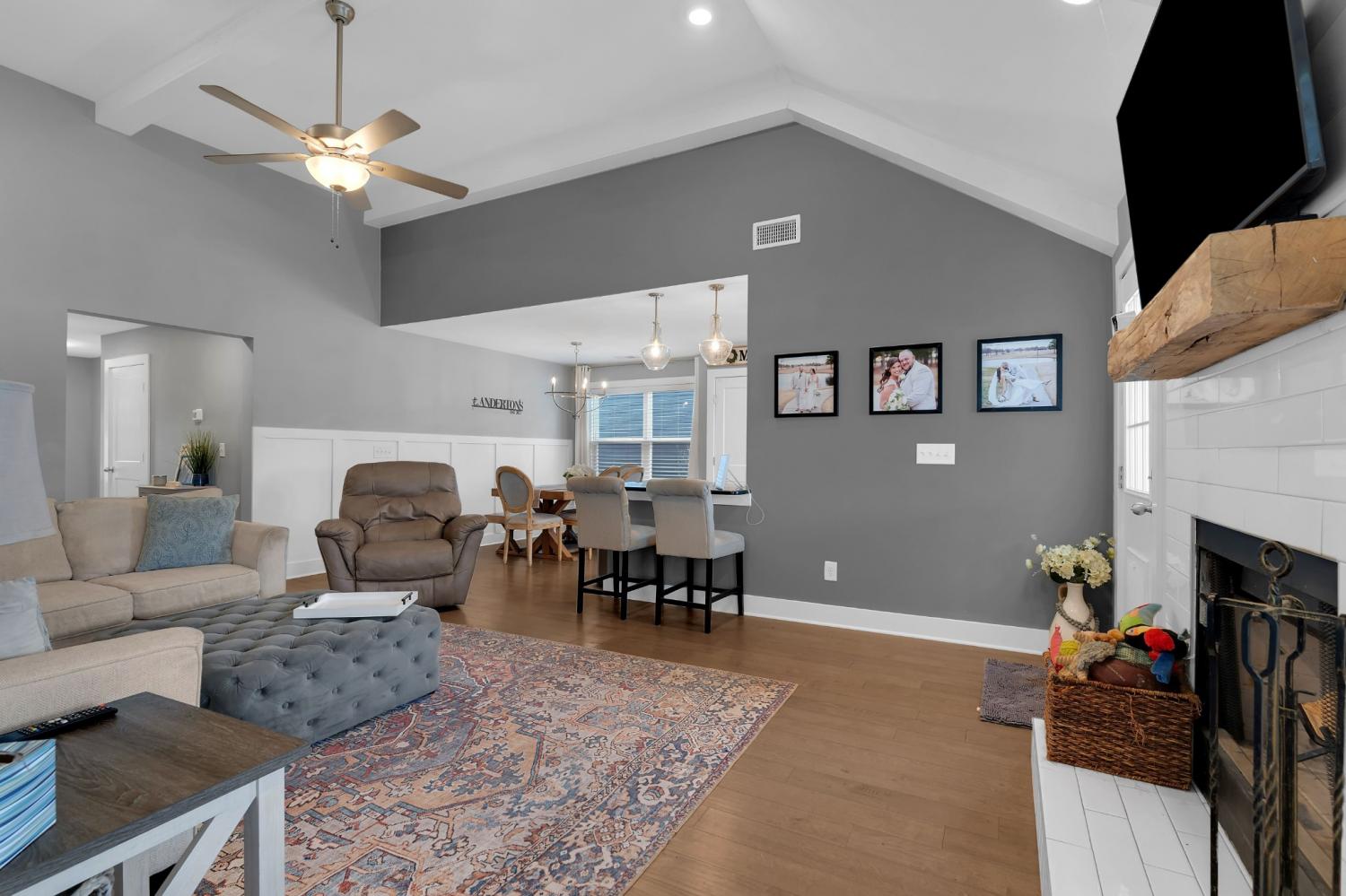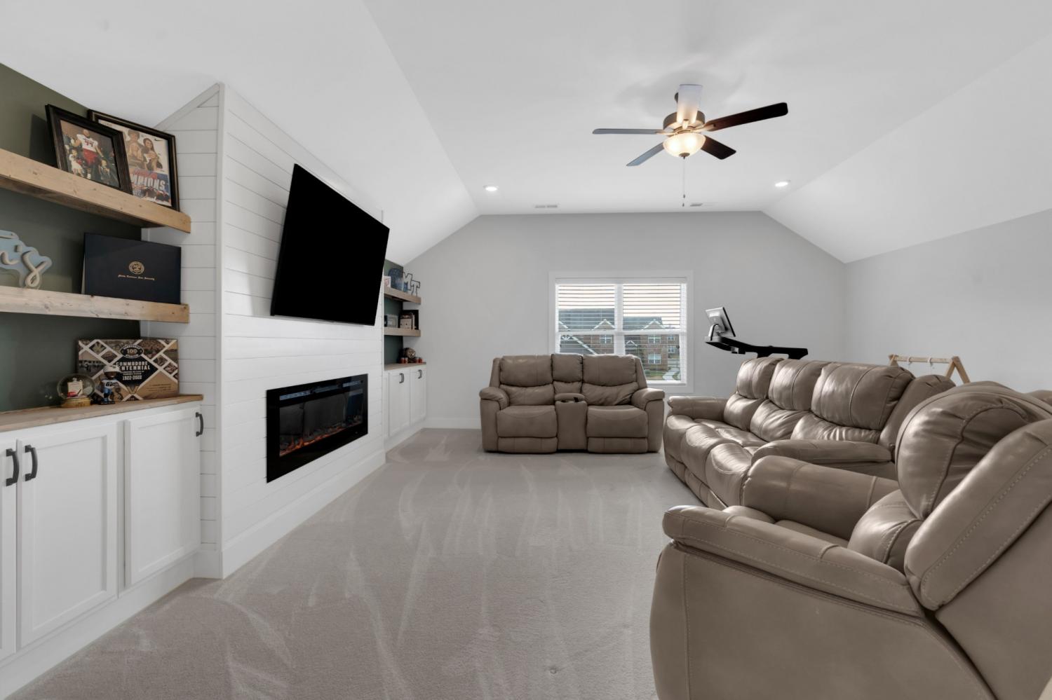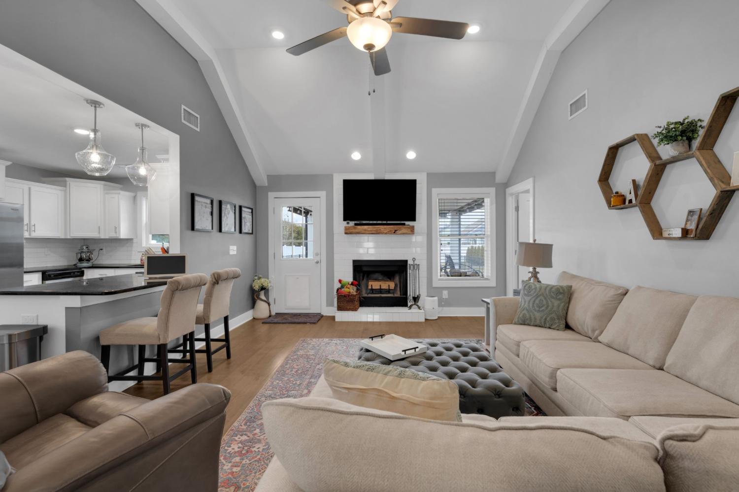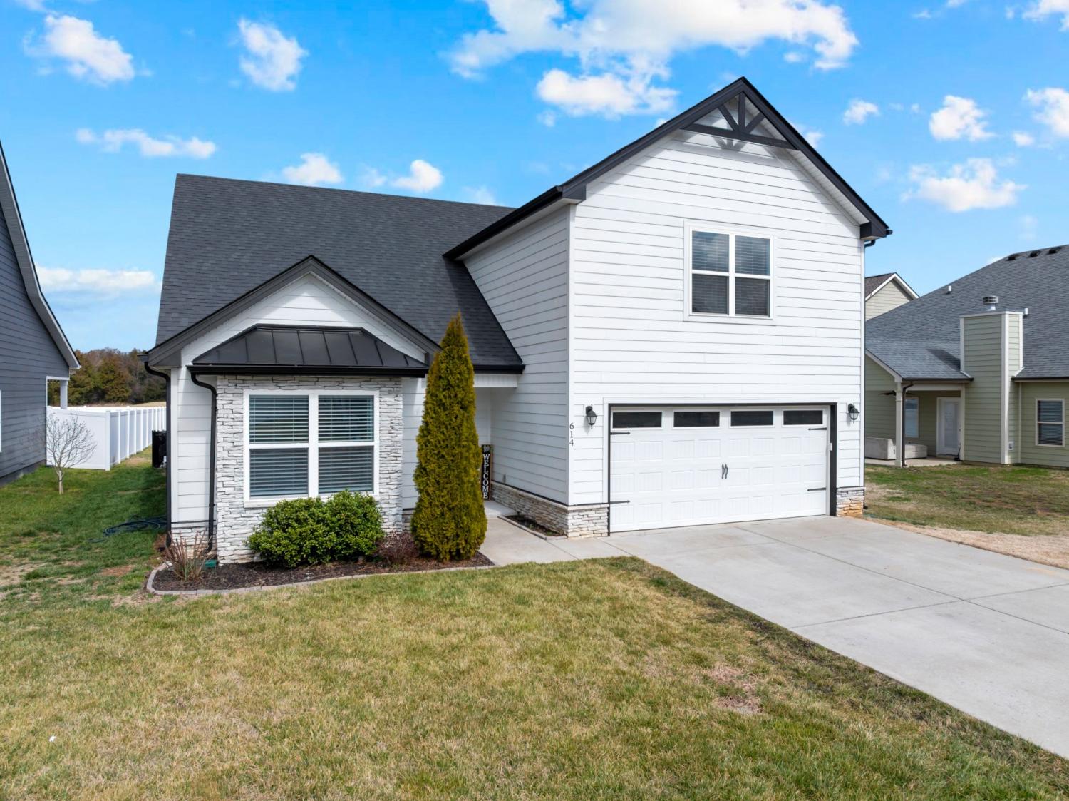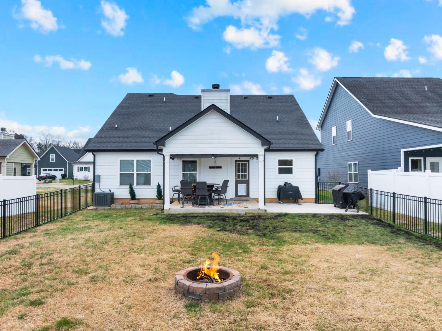 Beautifully maintained and move-in ready, this 3-bedroom, 3-bath home offers 2,121 square feet of thoughtfully designed living space in a quiet, family-friendly subdivision across from the Richard Siegel Soccer Complex. All three bedrooms are conveniently located on the main floor, providing easy, functional living. The primary suite features a tiled walk-in shower, double vanity, linen closet, and spacious walk-in closet. Upstairs, the large bonus room with its own full bath offers flexible space for a fourth bedroom, guest suite, office, or media room, complete with built-ins, an electric fireplace, and new carpet. The vaulted living room with a wood-burning fireplace flows into the open dining area and kitchen, showcasing stainless steel appliances, granite countertops, white subway tile backsplash, and a pantry. Fresh interior paint and wainscoting in the bathrooms and bedrooms add charm throughout. Additional storage includes a walk-in attic and a generous under-stair garage closet. With added upgrades like whole-home blinds, the fully fenced backyard with black aluminum fencing, a covered patio, and expanded concrete patio --- perfect for entertaining, this home offers conveniences not typically found in new construction! Ideally located on the desirable side of Murfreesboro, it’s truly move-in ready—even for your fur babies!