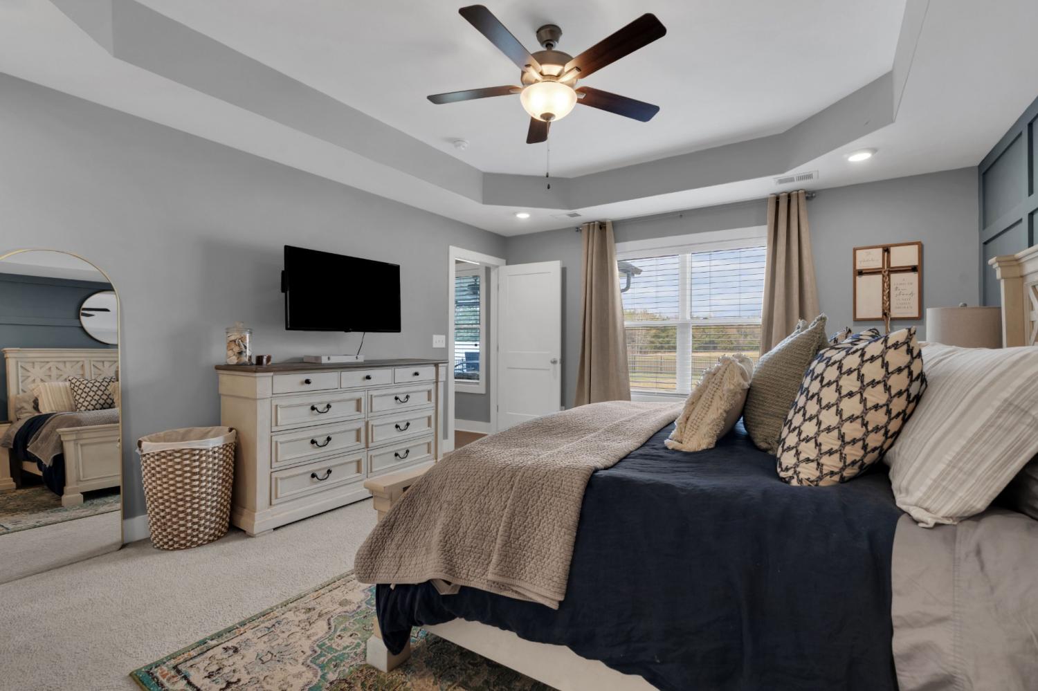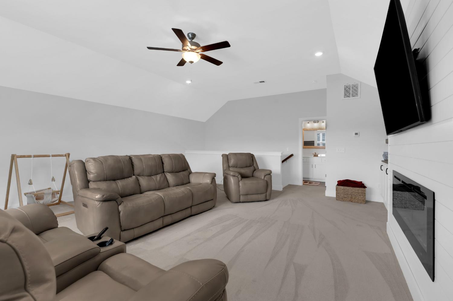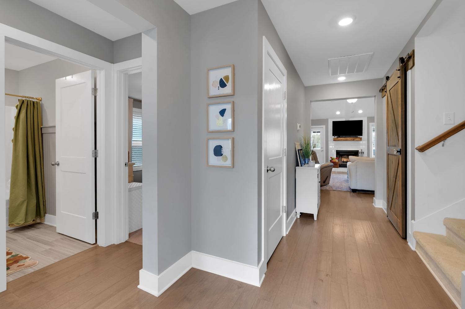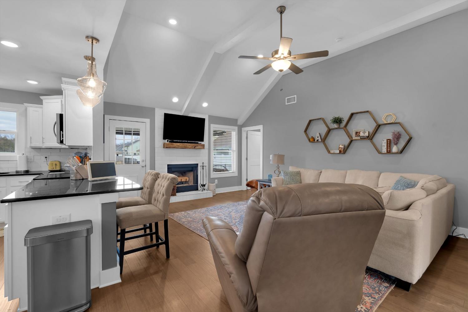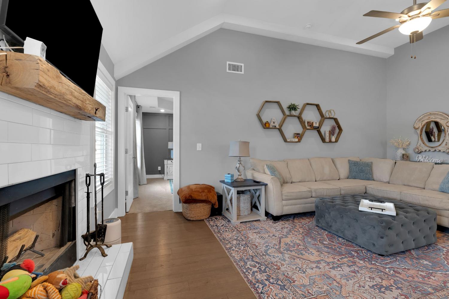 Beautifully maintained and move-in ready, this 3-bedroom, 3-bath home offers 2,121 square feet of thoughtfully designed living space in a quiet, family-friendly subdivision across from the Richard Siegel Soccer Complex. All three bedrooms are conveniently located on the main floor, providing easy, functional living. The primary suite features a tiled walk-in shower, double vanity, linen closet, and spacious walk-in closet. Upstairs, the large bonus room with its own full bath offers flexible space for a fourth bedroom, guest suite, office, or media room, complete with built-ins, an electric fireplace, and new carpet. The vaulted living room with a wood-burning fireplace flows into the open dining area and kitchen, showcasing stainless steel appliances, granite countertops, white subway tile backsplash, and a pantry. Fresh interior paint and wainscoting in the bathrooms and bedrooms add charm throughout. Additional storage includes a walk-in attic and a generous under-stair garage closet. With added upgrades like whole-home blinds, the fully fenced backyard with black aluminum fencing, a covered patio, and expanded concrete patio --- perfect for entertaining, this home offers conveniences not typically found in new construction! Ideally located on the desirable side of Murfreesboro, it’s truly move-in ready—even for your fur babies!