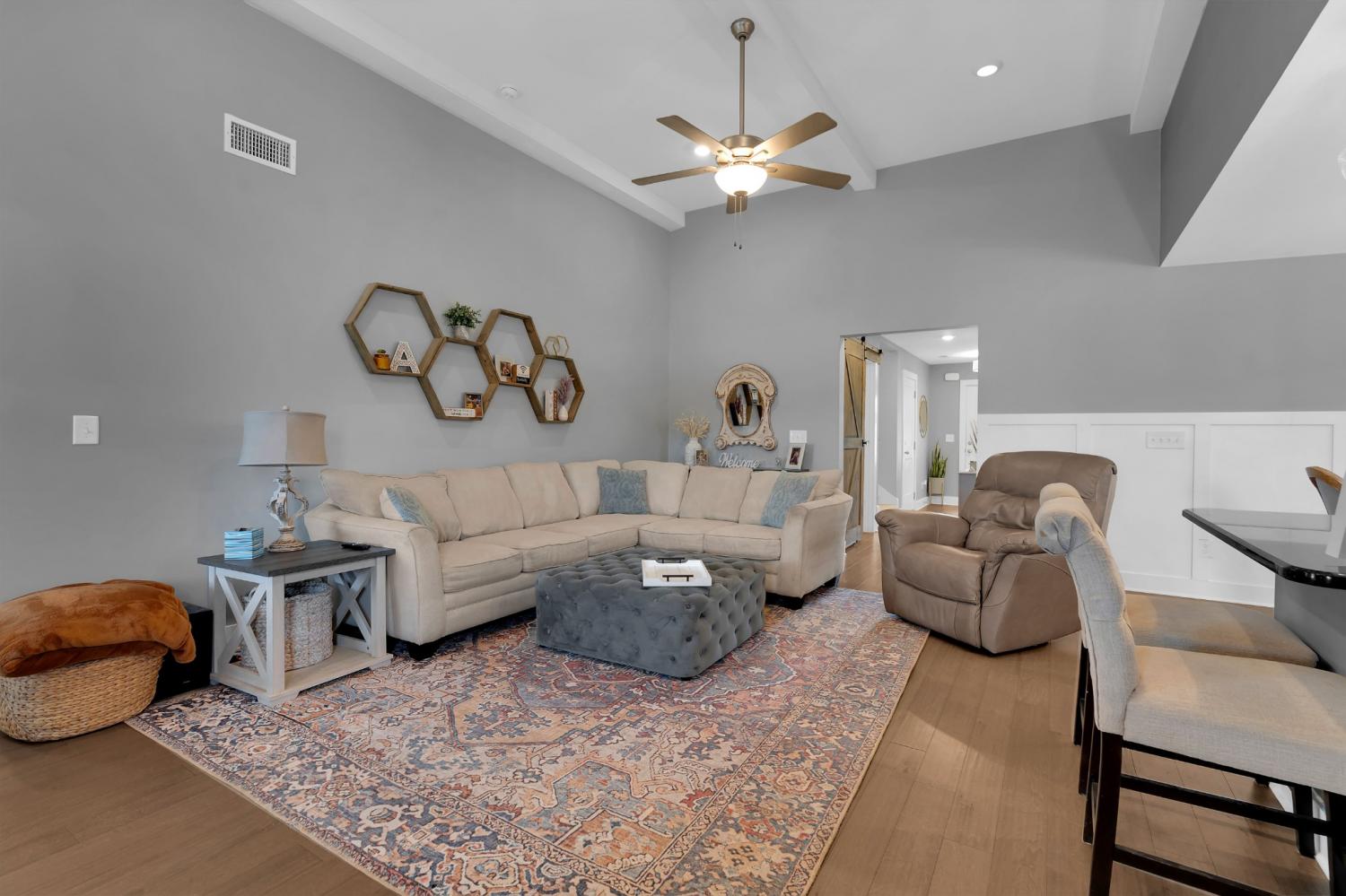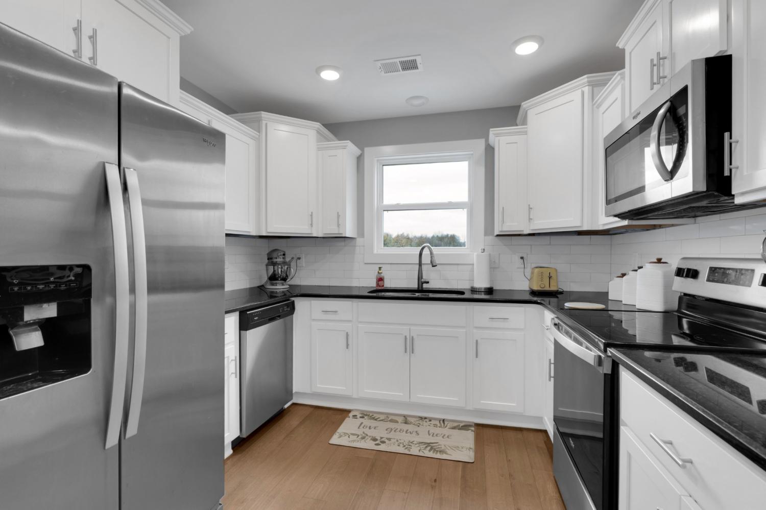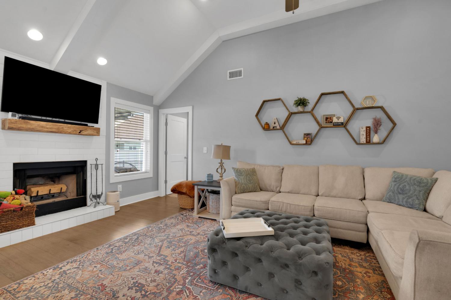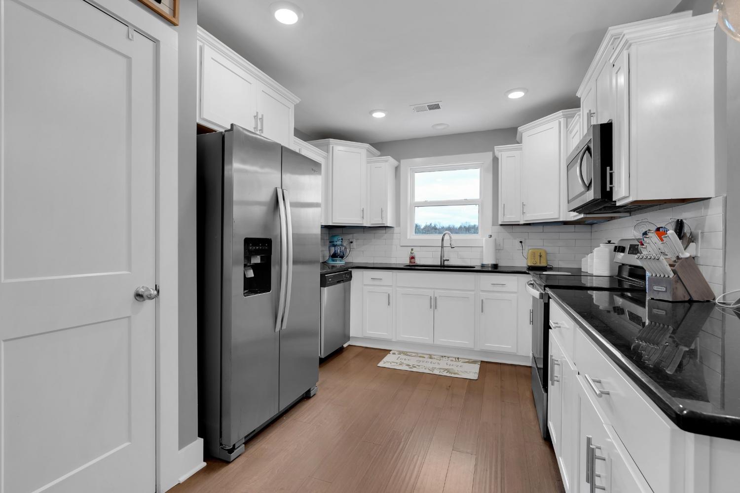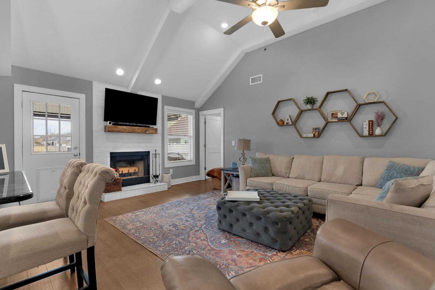 Beautifully maintained and move-in ready, this 3-bedroom, 3-bath home offers 2,121 square feet of thoughtfully designed living space in a quiet, family-friendly subdivision across from the Richard Siegel Soccer Complex. All three bedrooms are conveniently located on the main floor, providing easy, functional living. The primary suite features a tiled walk-in shower, double vanity, linen closet, and spacious walk-in closet. Upstairs, the large bonus room with its own full bath offers flexible space for a fourth bedroom, guest suite, office, or media room, complete with built-ins, an electric fireplace, and new carpet. The vaulted living room with a wood-burning fireplace flows into the open dining area and kitchen, showcasing stainless steel appliances, granite countertops, white subway tile backsplash, and a pantry. Fresh interior paint and wainscoting in the bathrooms and bedrooms add charm throughout. Additional storage includes a walk-in attic and a generous under-stair garage closet. With added upgrades like whole-home blinds, the fully fenced backyard with black aluminum fencing, a covered patio, and expanded concrete patio --- perfect for entertaining, this home offers conveniences not typically found in new construction! Ideally located on the desirable side of Murfreesboro, it’s truly move-in ready—even for your fur babies!