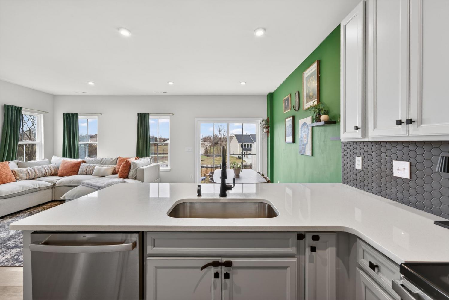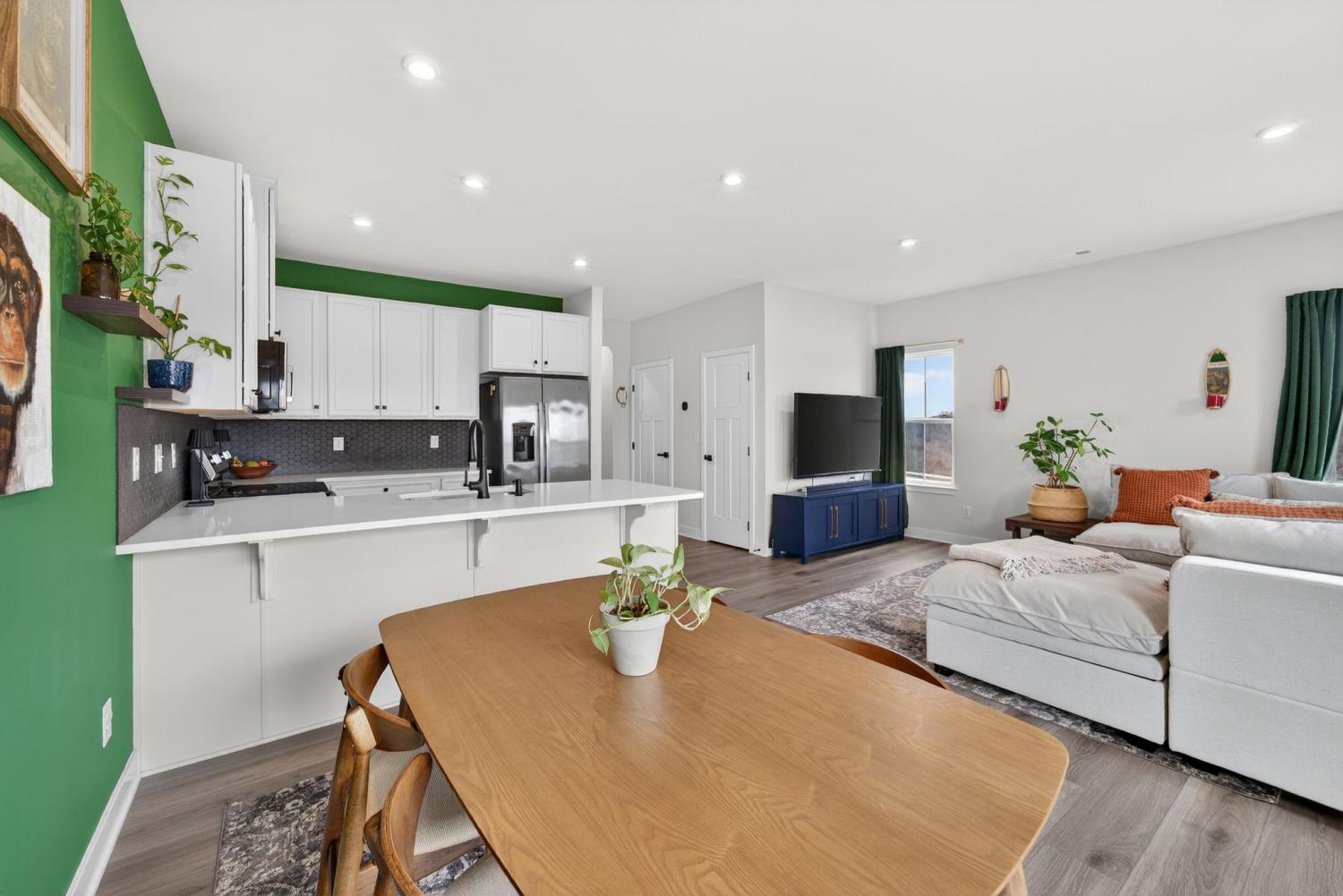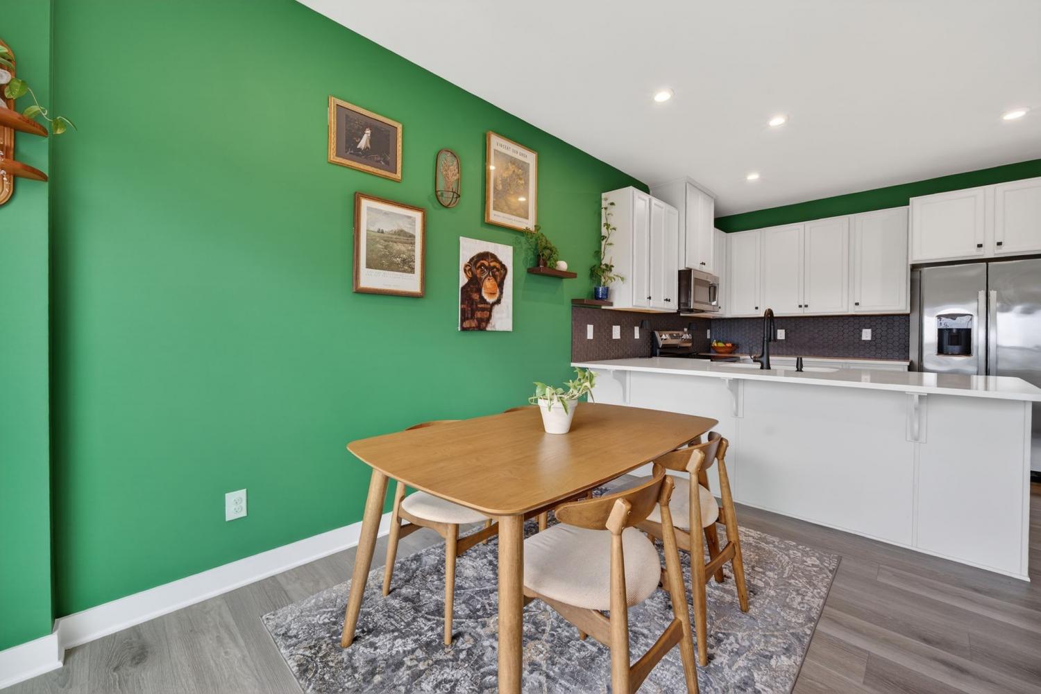Like New beautiful end-unit townhome with attached garage! Situated on a highly desirable, corner lot, filled with abundant natural light from its many windows! The open-concept main level features upgraded luxury vinyl plank flooring and a functional kitchen equipped with stainless steel appliances, quartz countertops, and a stunning designer backsplash. Walk out to the charming, private patio- perfect for evening fires or morning coffee. Upper level offers a very spacious primary suite with a trey ceiling and two generous closets. Primary bath includes an upgraded, large walk-in shower. Two additional bedrooms, hall full bath and upper laundry complete this smart design. Ideally located just minutes from Downtown Columbia Square, this home combines style, comfort, and location perfectly.