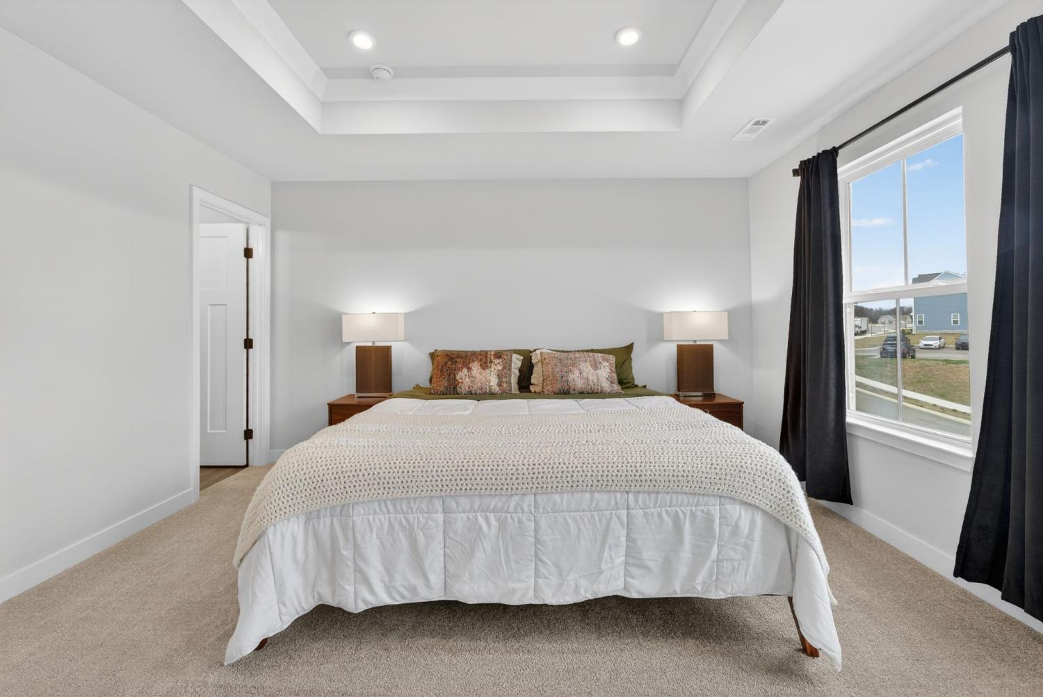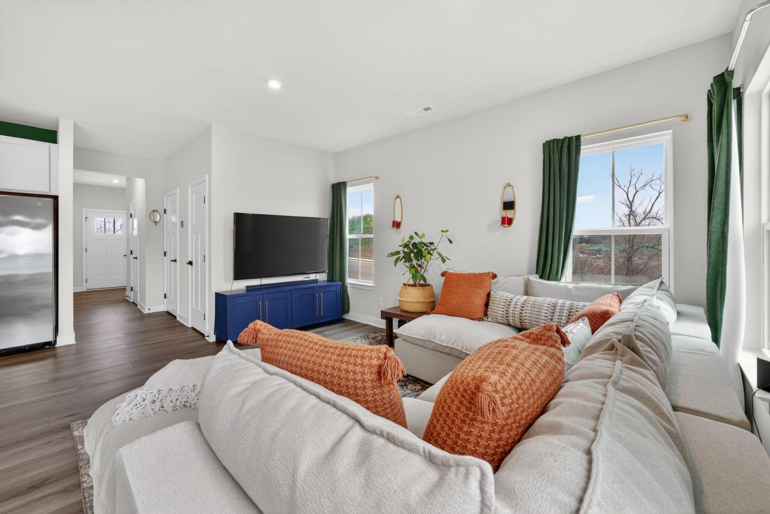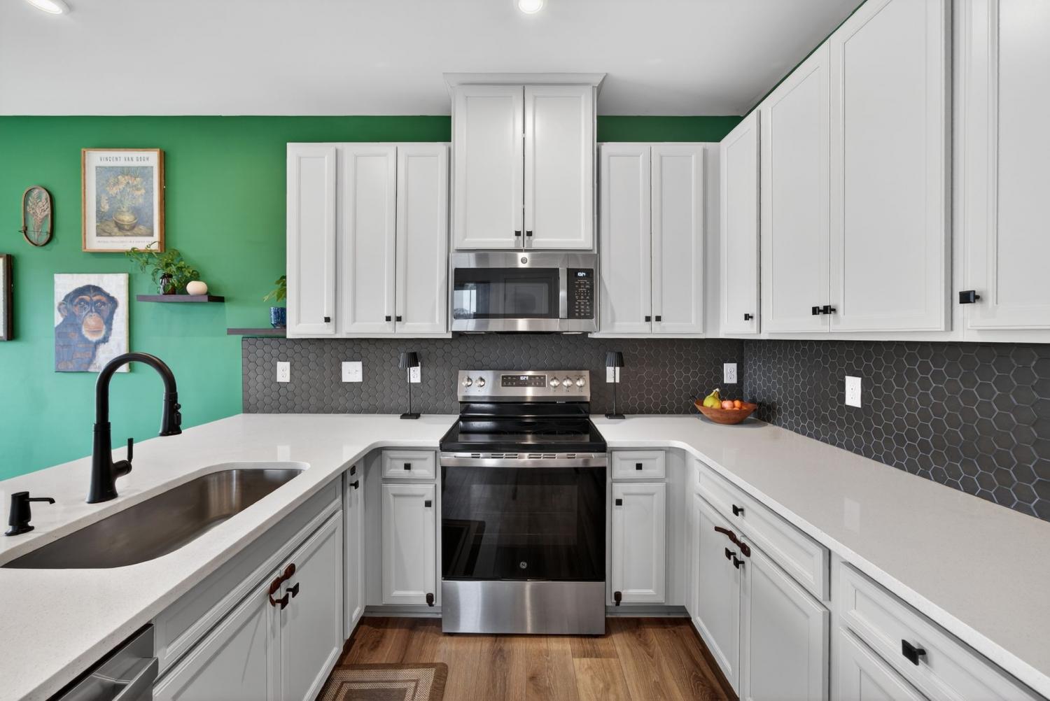 Like New beautiful end-unit townhome with attached garage! Situated on a highly desirable, corner lot, filled with abundant natural light from its many windows! The open-concept main level features upgraded luxury vinyl plank flooring and a functional kitchen equipped with stainless steel appliances, quartz countertops, and a stunning designer backsplash. Walk out to the charming, private patio- perfect for evening fires or morning coffee. Upper level offers a very spacious primary suite with a trey ceiling and two generous closets. Primary bath includes an upgraded, large walk-in shower. Two additional bedrooms, hall full bath and upper laundry complete this smart design. Ideally located just minutes from Downtown Columbia Square, this home combines style, comfort, and location perfectly.