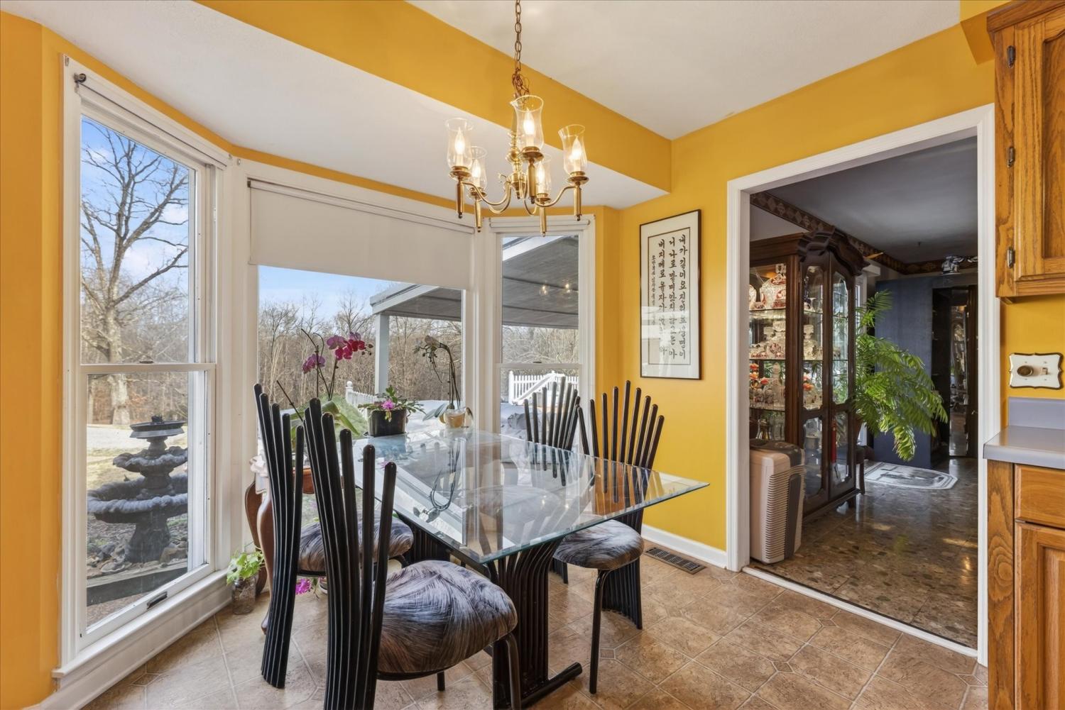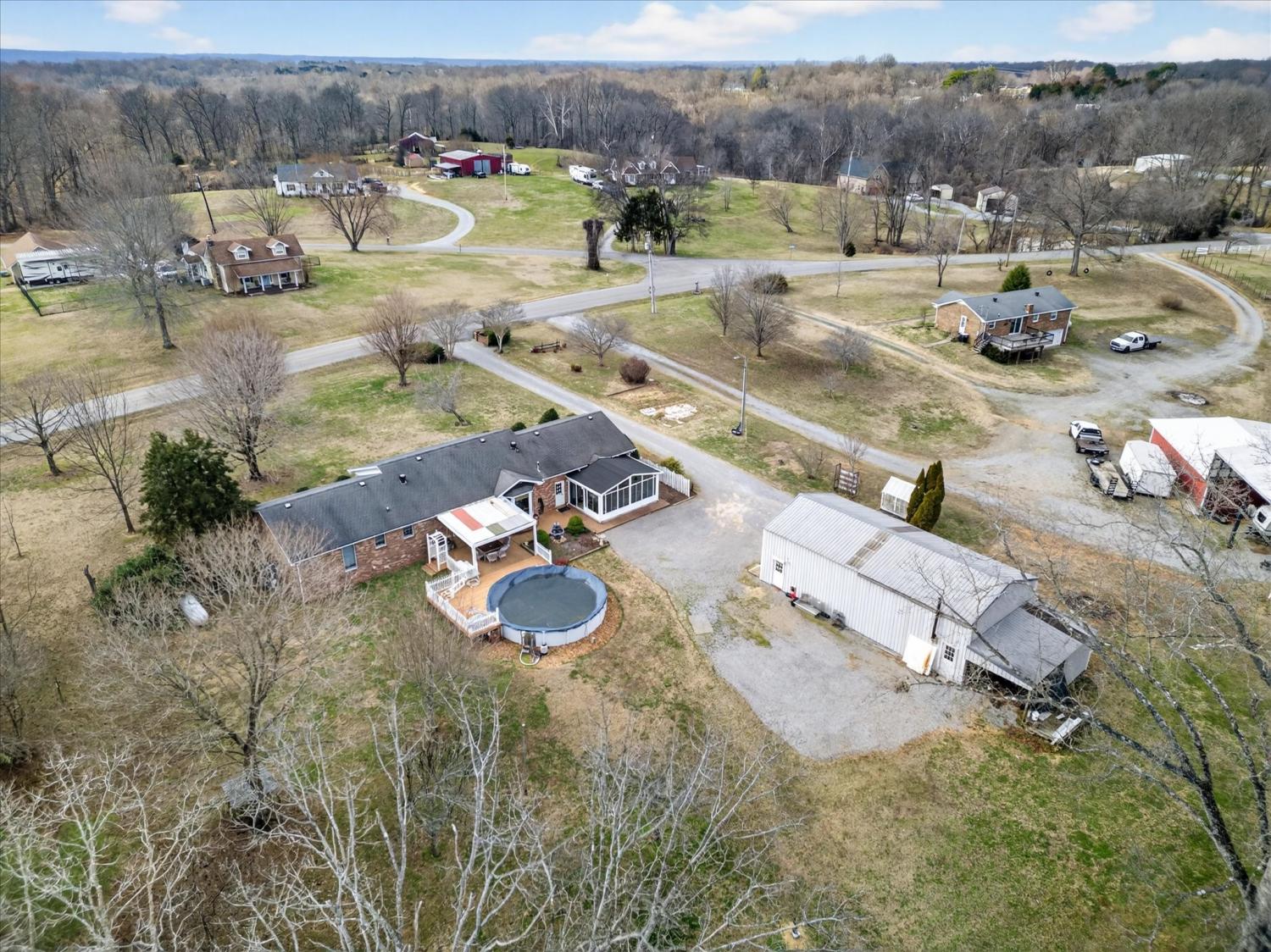 Spacious one-level home situated on over 6 acres offering room to spread out both inside and out! This property includes an additional 4.80-acre tract located directly behind the home, creating a rare opportunity for added privacy, expansion, or future use. Inside, the home features a large open living area, formal dining space, and a bright kitchen with breakfast nook overlooking the backyard. Enjoy year-round natural light in the sunroom and relax or entertain on the covered patio. Outdoor highlights include an above-ground pool, storage shed, and chicken coop—all remaining. With acreage, functionality, and flexibility, this property offers a unique combination of space and potential.
