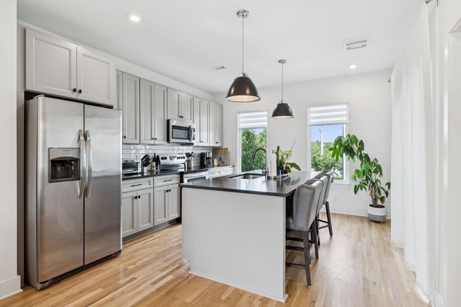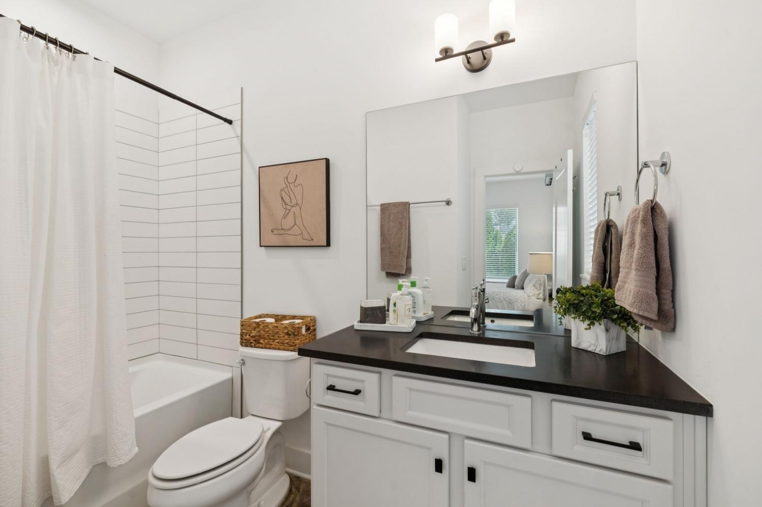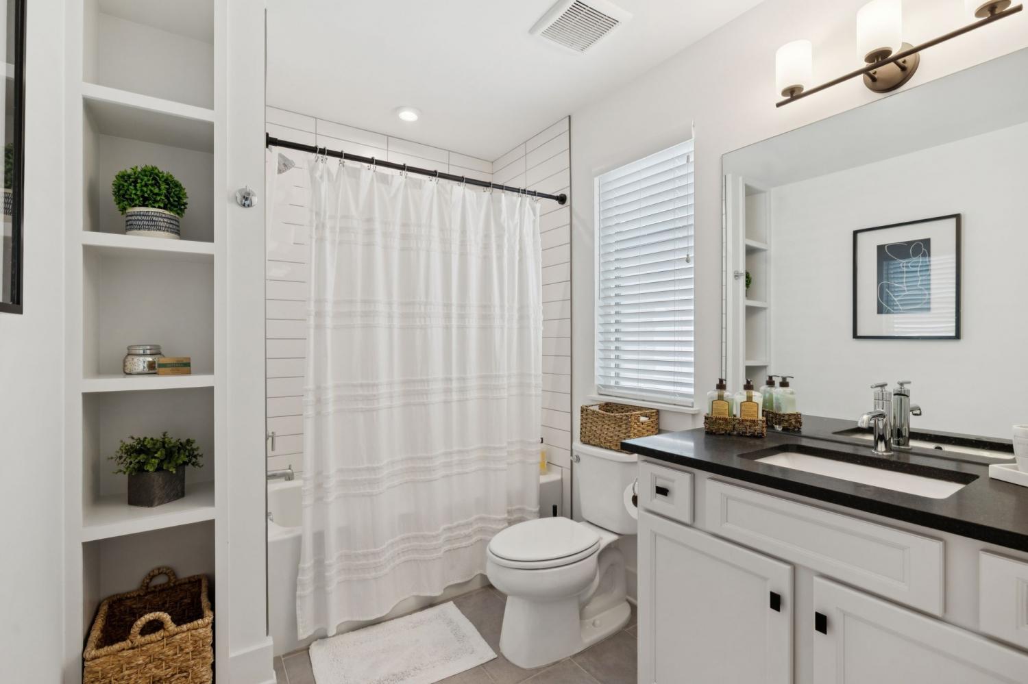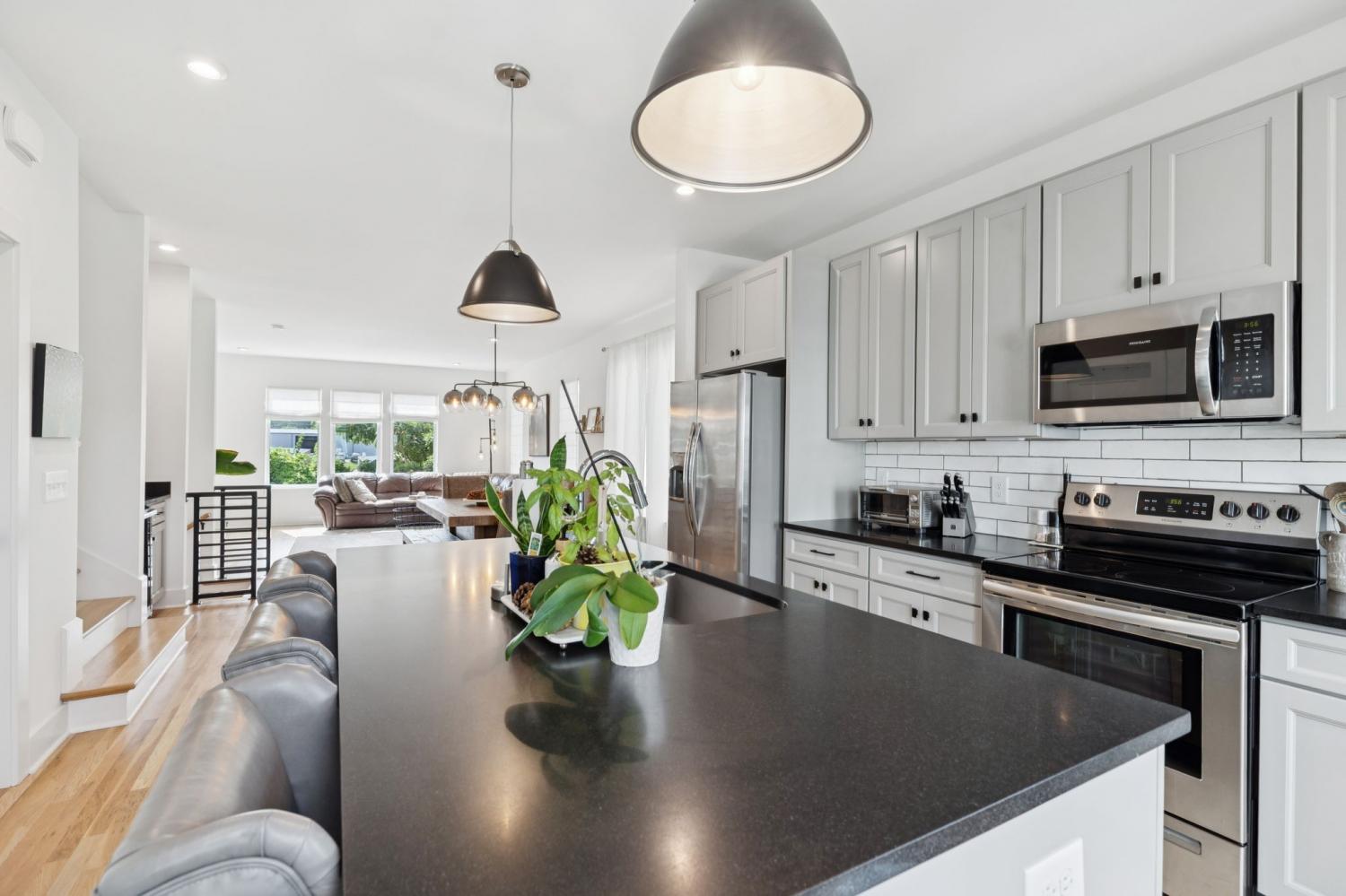 Elegant 3-Level 3 Bedroom 3 1/2 bath home with Additional room that could be used as a 4th bedroom with access to bath. Home Built by Award-Winning Paragon Builders. Experience the perfect blend of comfort and sophistication in this meticulously maintained, move-in-ready residence offering the convenience of single-family living without the extensive upkeep.This stunning three-level home features a thoughtfully designed floor plan ideal for modern living. Upon entry, the first level welcomes you with a spacious private guest suite complete with a full bathroom and direct access to the attached two-car garage—ideal for guests or multigenerational living. The second floor showcases an expansive open-concept layout, where the gourmet kitchen seamlessly flows into the dining and family rooms. The kitchen is a chef’s dream, featuring stainless steel appliances, a large center island with seating, a walk-in pantry, and a custom-designed bar perfect for entertaining. Step outside to a Large private patio, offering a peaceful retreat just off the kitchen. The third level includes a luxurious primary suite with vaulted ceilings, a second generously sized bedroom with its own full bath, and a versatile office or optional fourth bedroom with stylish barn doors. A convenient Jack-and-Jill bathroom connects the additional bedrooms, and the laundry area is thoughtfully positioned on this level for added convenience.Designer finishes and upgrades are found throughout the home. Located in a well-maintained community with beautifully landscaped green spaces, designated pet relief areas, and close proximity to top-rated schools, shopping, dining, and major highways—this home truly has it all.HOA covers trash, water, exterior maintenance, grounds maintenance, and exterior pest control