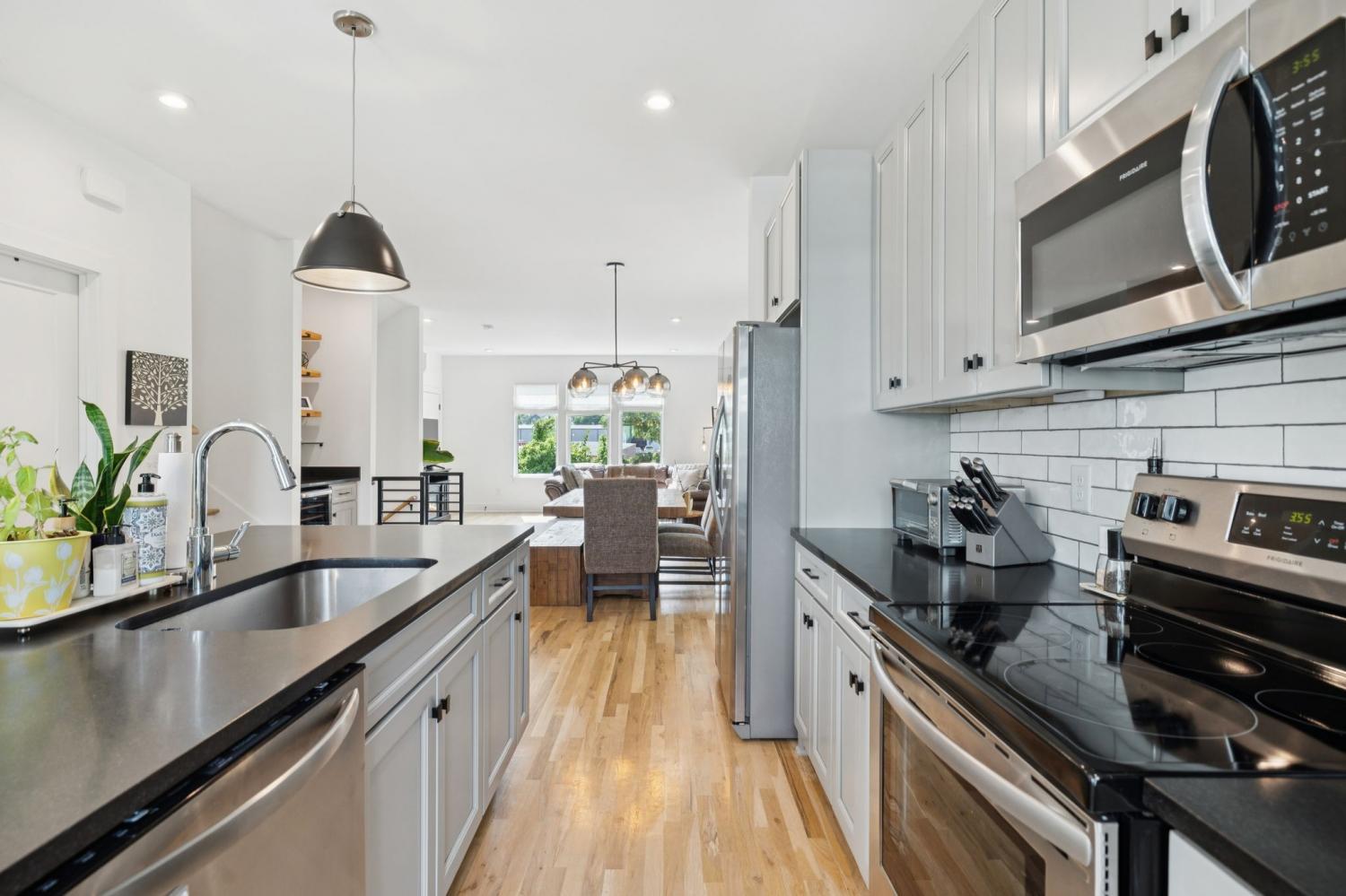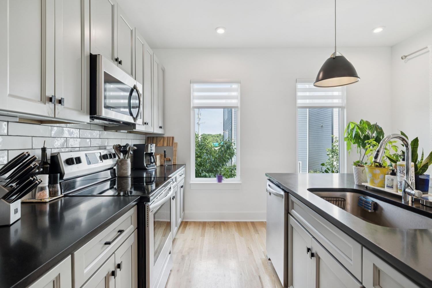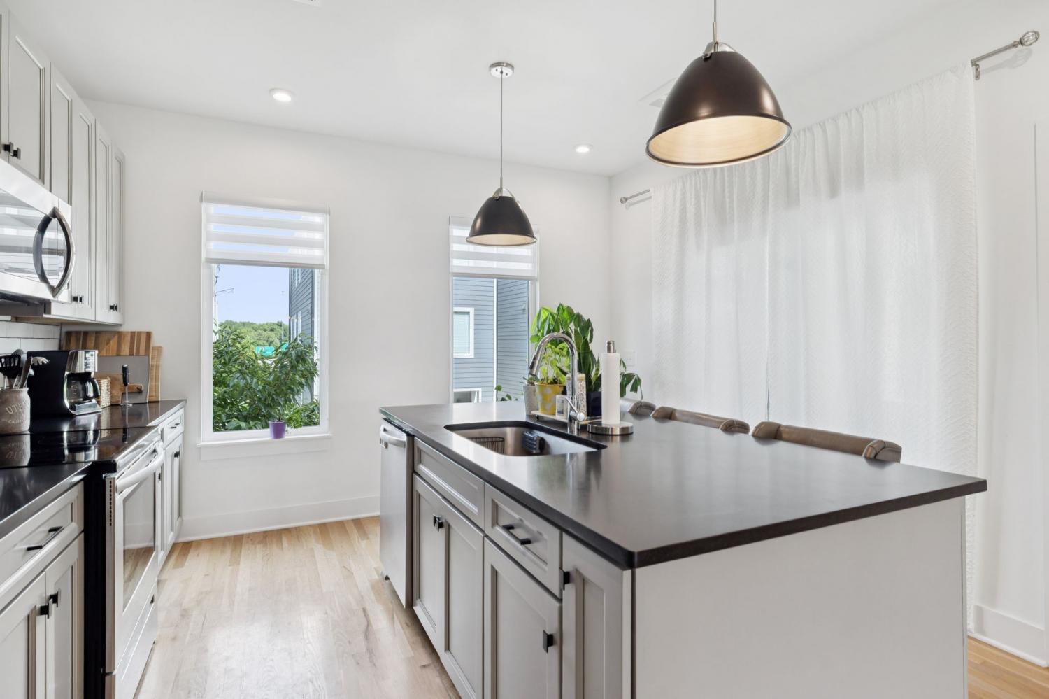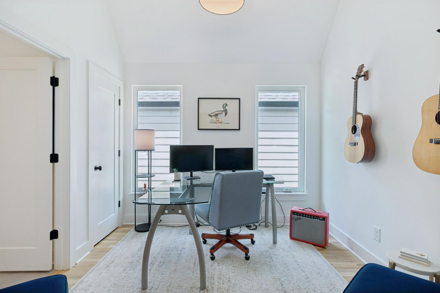 Elegant 3-Level 3 Bedroom 3 1/2 bath home with Additional room that could be used as a 4th bedroom with access to bath. Home Built by Award-Winning Paragon Builders. Experience the perfect blend of comfort and sophistication in this meticulously maintained, move-in-ready residence offering the convenience of single-family living without the extensive upkeep.This stunning three-level home features a thoughtfully designed floor plan ideal for modern living. Upon entry, the first level welcomes you with a spacious private guest suite complete with a full bathroom and direct access to the attached two-car garage—ideal for guests or multigenerational living. The second floor showcases an expansive open-concept layout, where the gourmet kitchen seamlessly flows into the dining and family rooms. The kitchen is a chef’s dream, featuring stainless steel appliances, a large center island with seating, a walk-in pantry, and a custom-designed bar perfect for entertaining. Step outside to a Large private patio, offering a peaceful retreat just off the kitchen. The third level includes a luxurious primary suite with vaulted ceilings, a second generously sized bedroom with its own full bath, and a versatile office or optional fourth bedroom with stylish barn doors. A convenient Jack-and-Jill bathroom connects the additional bedrooms, and the laundry area is thoughtfully positioned on this level for added convenience.Designer finishes and upgrades are found throughout the home. Located in a well-maintained community with beautifully landscaped green spaces, designated pet relief areas, and close proximity to top-rated schools, shopping, dining, and major highways—this home truly has it all.HOA covers trash, water, exterior maintenance, grounds maintenance, and exterior pest control