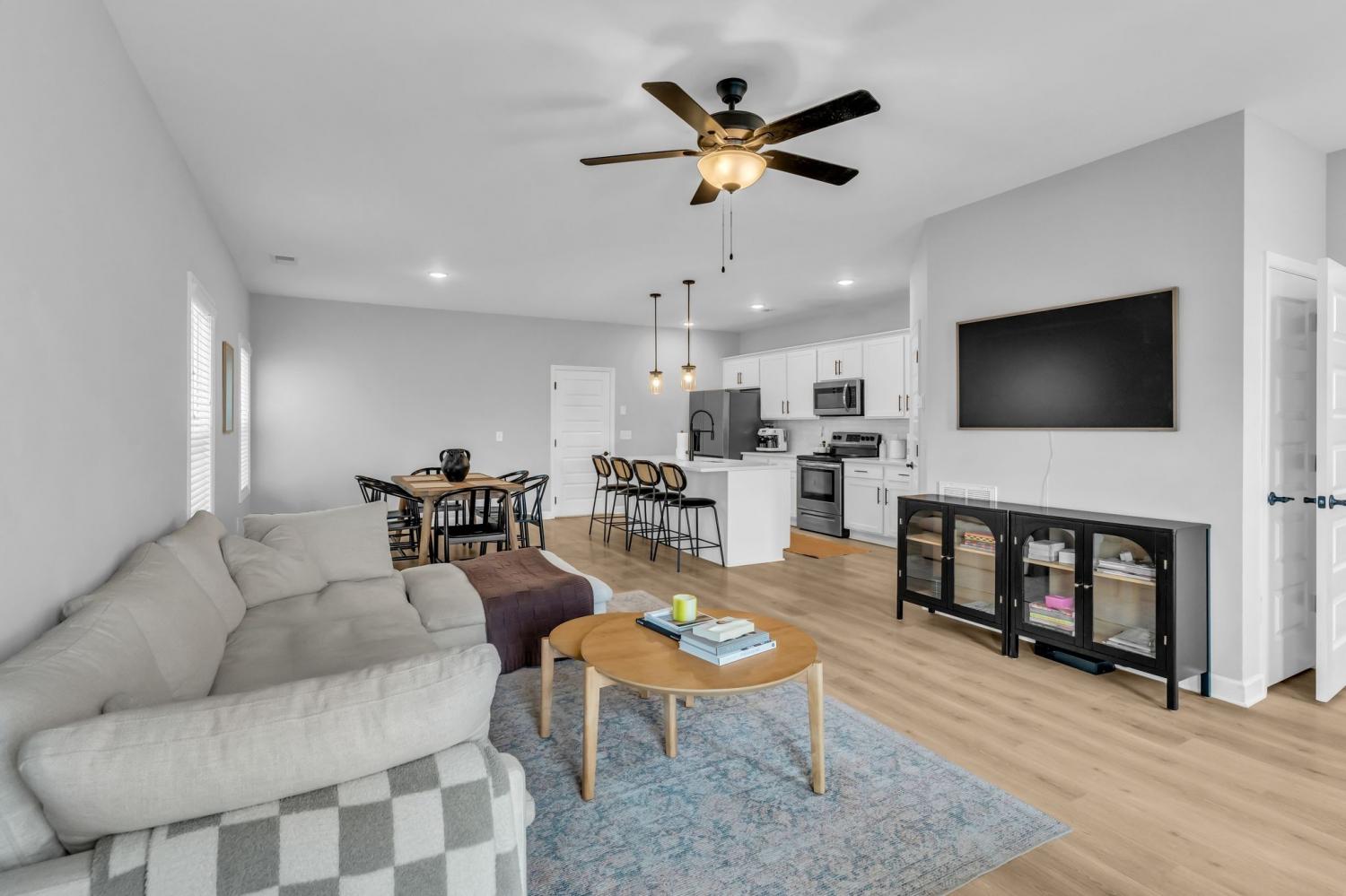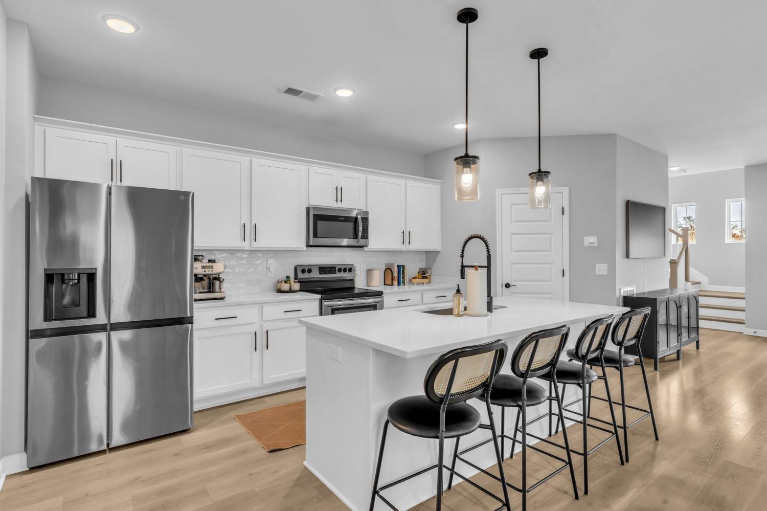 Featuring upgraded hardwood floors throughout and custom lime-wash walls in the primary suite, this home blends style and comfort. The open-concept layout includes a spacious kitchen with stainless steel appliances, a large island, and neutral paint tones throughout. Enjoy outdoor living on the covered porch and upstairs balcony overlooking the community pond. Generous walk-in closets provide ample storage. The community offers exceptional amenities, including a playground, dog park, walking trails, and sidewalks. Up to 1% lender credit on the loan amount when buyer uses Seller's Preferred Lender.