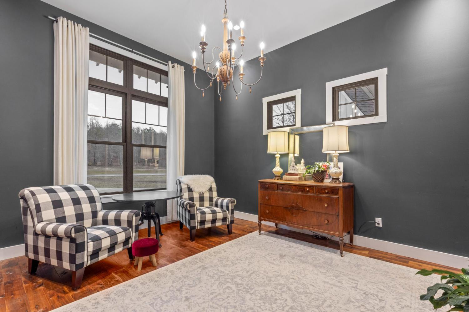Welcome to 2070 River Bluffs Drive, a truly one-of-a-kind custom estate offering 5 bedrooms, 4.5 baths, and approximately 4,350 square feet of thoughtfully designed living space on 1.25 acres in the highly sought-after Jasper Highlands community. With no other home like it in Jasper Highlands, this extraordinary residence showcases timeless architecture, impeccable craftsmanship, and unforgettable curb appeal highlighted by 17 gables and custom-built awnings. The quality and design of this build have been featured in magazines and Jasper Highlands marketing. Inside, rich black walnut floors flow throughout, creating warmth and elegance in every space. The spacious living room is centered around a striking brick fireplace and flows seamlessly into a beautifully appointed kitchen featuring quartz countertops, a gas stovetop with double ovens, generous prep space, and a walk-in pantry with built-in cabinetry. The primary suite is a private retreat with hardwood ceilings and a luxurious en-suite bath complete with a soaking tub, oversized walk-in shower, and separate his and hers walk-in closets. A main-level laundry room with a sink adds convenience, while the covered porch with hardwood ceilings offers the perfect place to relax and enjoy the peaceful setting. The home also features a fully encapsulated crawlspace for enhanced energy efficiency and long-term durability. Located within Jasper Highlands, residents enjoy scenic overlooks, miles of walking and hiking trails, parks, waterfalls, a fitness center, pool, tennis and pickleball courts, a putting green, on-site dining, and frequent social events, creating a vibrant and welcoming mountain lifestyle.