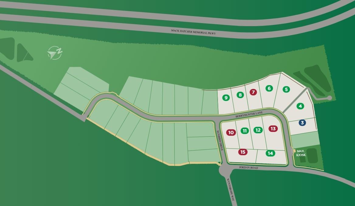 Exit 65 onto W McEwin. Turn left onto Jordan and community will be up the hill on the right.
