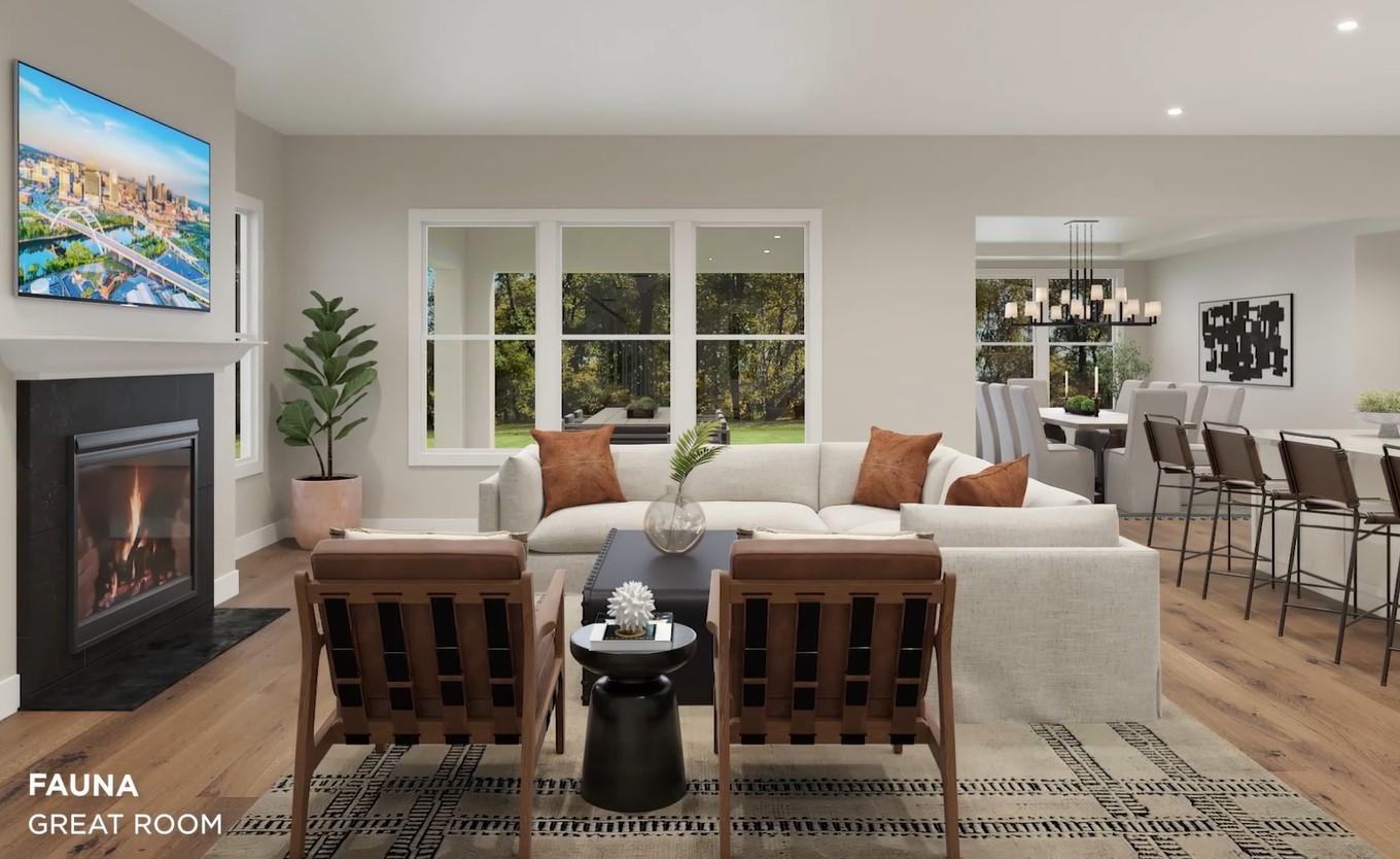 The Fauna blends comfort and versatility across two thoughtfully designed levels. Off the foyer, an open layout connects the great room with a cozy fireplace, the casual dining area, and a kitchen with a large center island, L-shaped counter space, and a walk-in pantry. Steps away, a spacious covered patio invites outdoor entertaining. The first floor primary bedroom suite features a vaulted ceiling, a generous walk-in closet, and a luxe bath with a dual-sink vanity, soaking tub, separate shower with seat, and private water closet. A secondary bedroom with a private bath and walk-in closet offers ideal space for guests or family. Upstairs, a versatile loft provides room to gather or unwind, with easy access to unfinished storage and attic space. Three secondary bedrooms—two with private baths and all with walk-in closets—offer comfort and privacy. Additional highlights include a first-floor laundry space, flex room, powder room, everyday entry, and thoughtful storage throughout. Located just minutes from everything vibrant Franklin has to offer, Franklin Ridge is a beautiful community of new construction homes in Franklin, TN, offering sophisticated personalization options and assignment to top Williamson County schools.