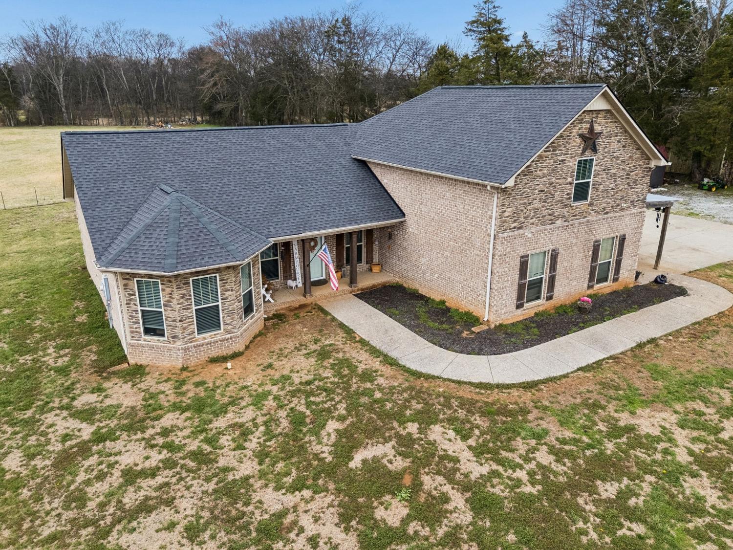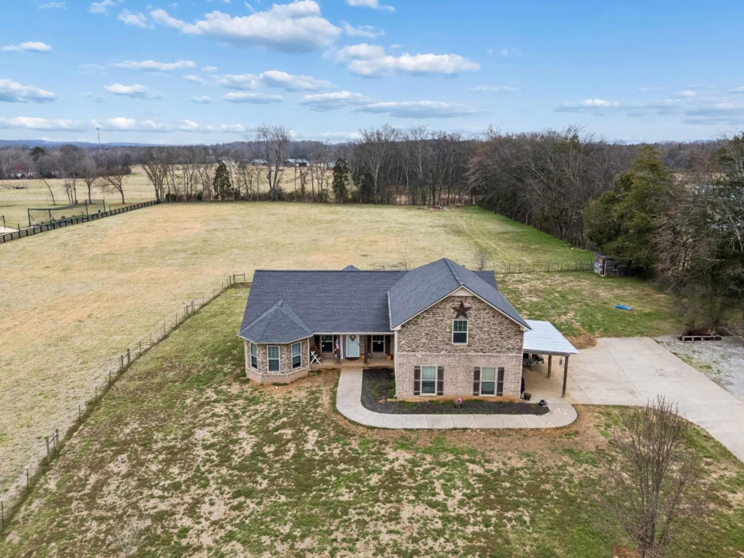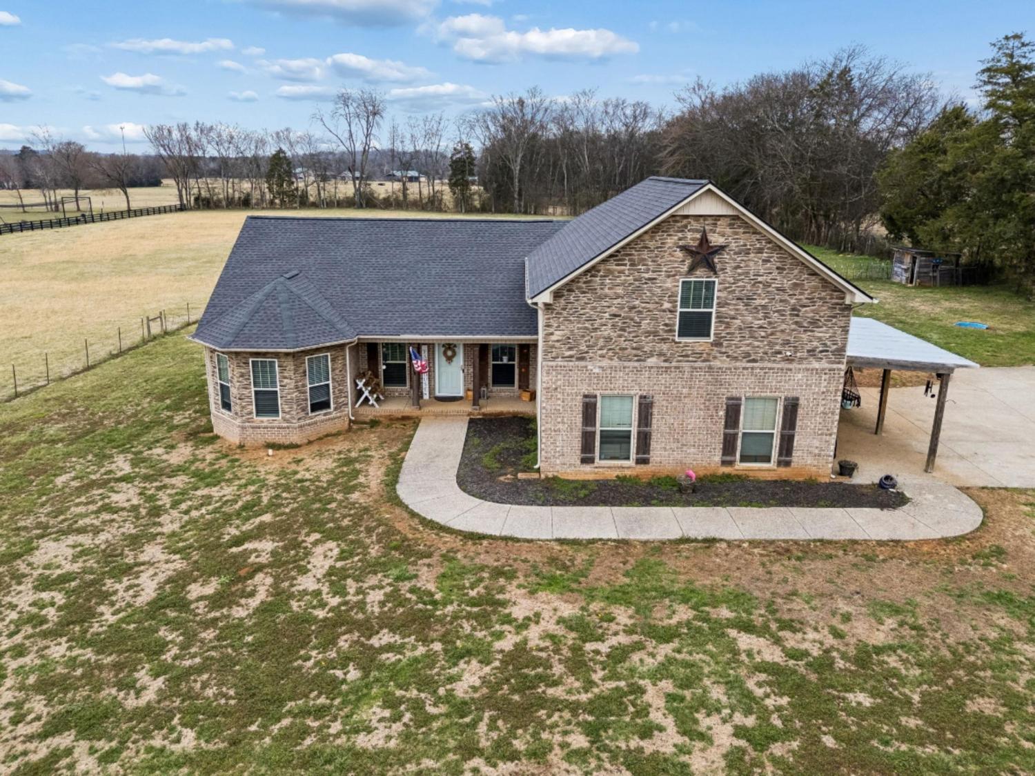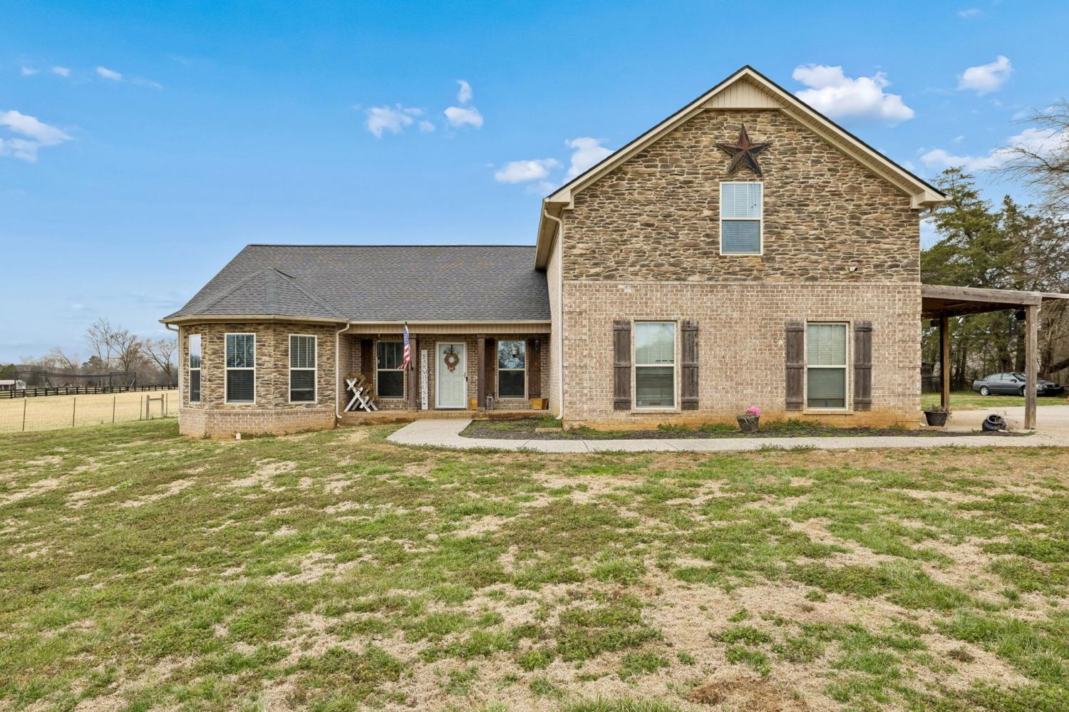 Peaceful Country Living or Mini-farm perfectly located on 5.03 Level Acres! Enjoy the quiet beauty and serenity of country living in this well-maintained 1.5-story brick home built in 2015. Ideal for anyone seeking privacy and open space. The main level features 3 bedrooms and 2 full baths, hardwood and carpet flooring throughout, arched doorways, tray ceilings in bedrooms, and vaulted ceilings in the living room and separate dining room. Master BR has bay windows/sitting area. The kitchen includes granite countertops and stainless steel appliances that remain. Upstairs offers a spacious den/media room with a full bath, perfect for guests, a home office, or bonus space. Recent roof (2 years old). Vivant security cameras and doorbell system remain. Electronic security gate with touchpad at driveway entrance. Attached 2-car garage is currently screened in and used as a workshop but can easily be converted back. Level acreage with farm fencing provides endless possibilities while maintaining the peaceful setting you’ve been looking for. This home sits near the borders of Columbia, Spring Hill and Lewisburg and Franklin, all within 10-15 min drive. This property is essentially considered a "Best of Both Worlds" location. Schedule your showing today!