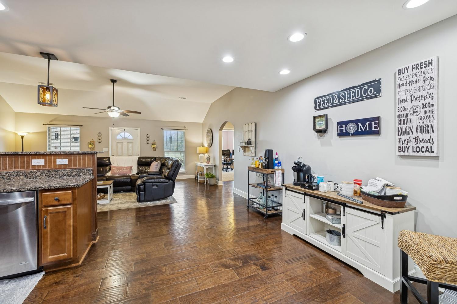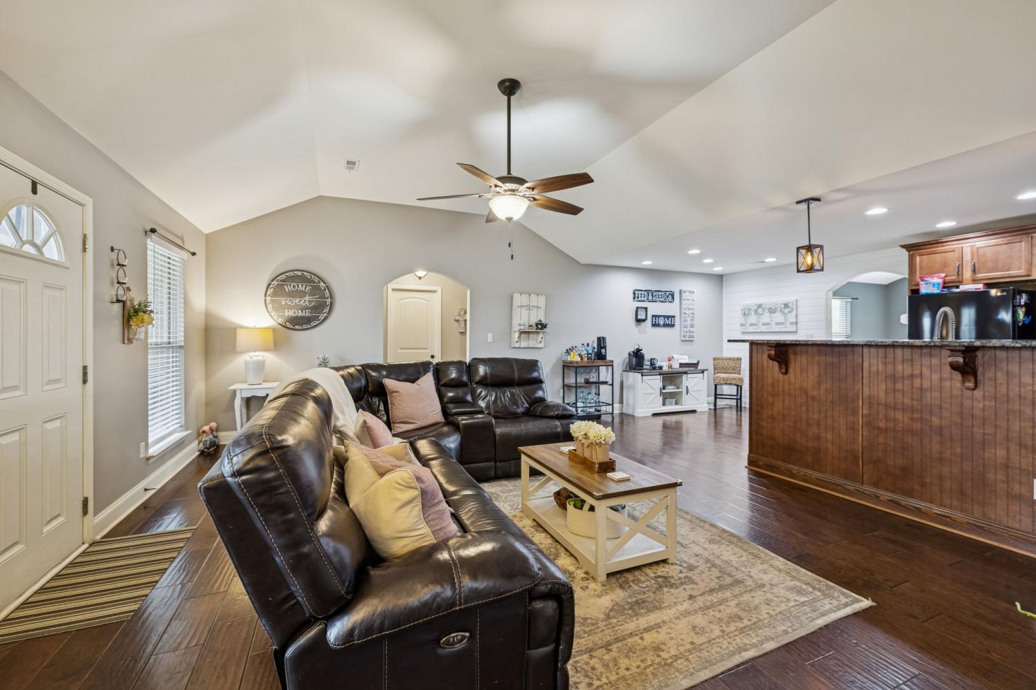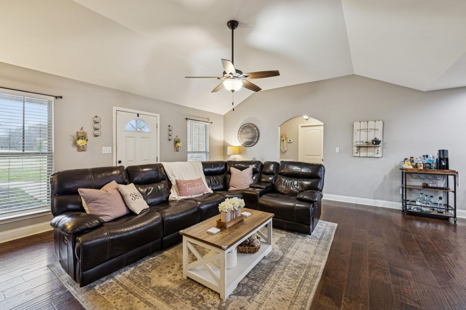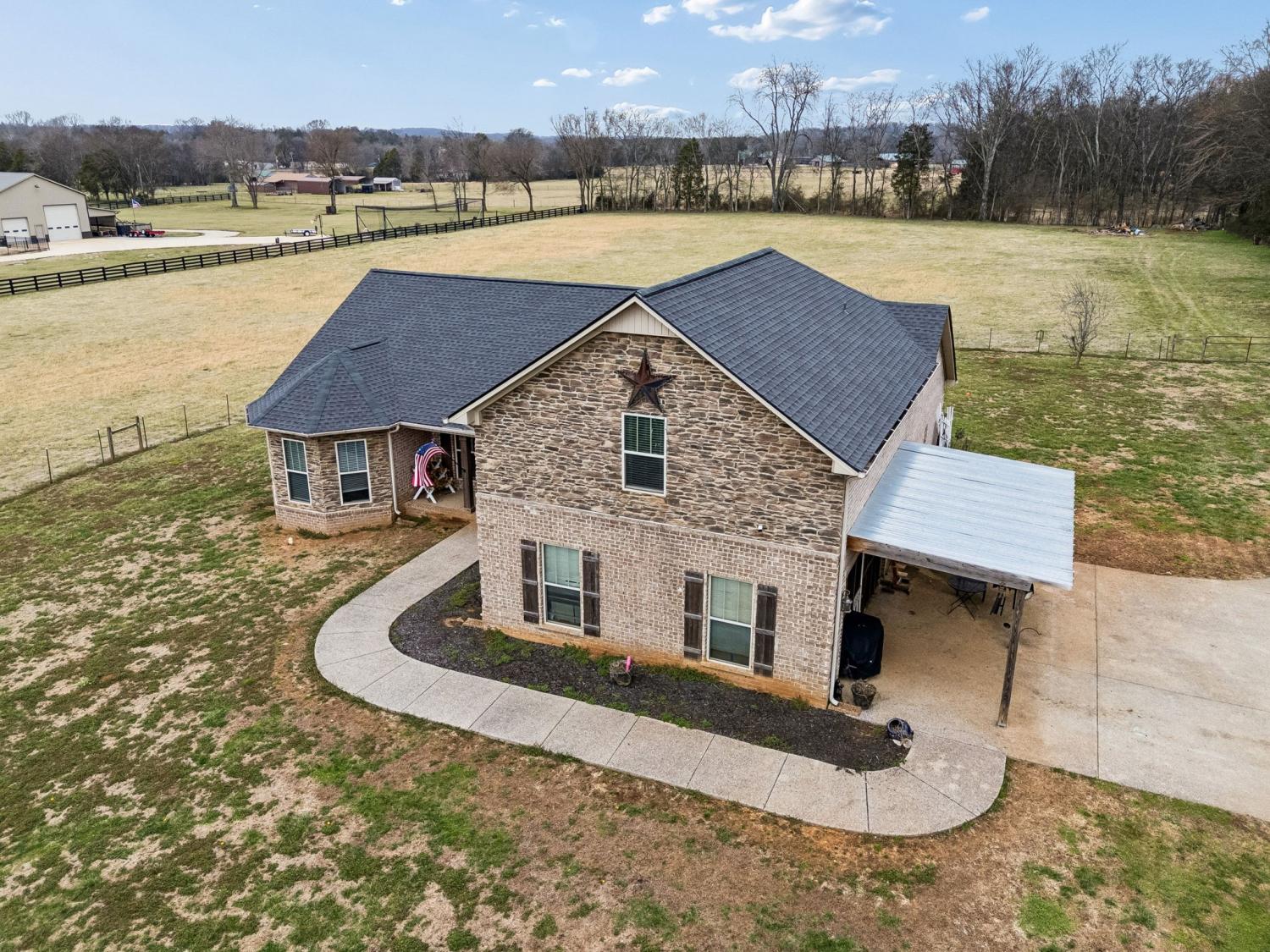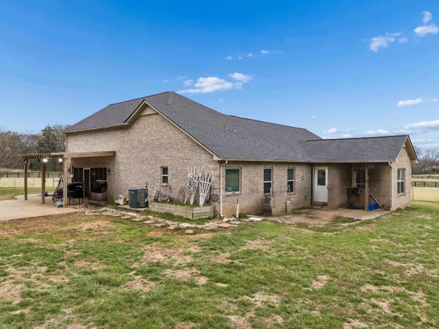 Peaceful Country Living or Mini-farm perfectly located on 5.03 Level Acres! Enjoy the quiet beauty and serenity of country living in this well-maintained 1.5-story brick home built in 2015. Ideal for anyone seeking privacy and open space. The main level features 3 bedrooms and 2 full baths, hardwood and carpet flooring throughout, arched doorways, tray ceilings in bedrooms, and vaulted ceilings in the living room and separate dining room. Master BR has bay windows/sitting area. The kitchen includes granite countertops and stainless steel appliances that remain. Upstairs offers a spacious den/media room with a full bath, perfect for guests, a home office, or bonus space. Recent roof (2 years old). Vivant security cameras and doorbell system remain. Electronic security gate with touchpad at driveway entrance. Attached 2-car garage is currently screened in and used as a workshop but can easily be converted back. Level acreage with farm fencing provides endless possibilities while maintaining the peaceful setting you’ve been looking for. This home sits near the borders of Columbia, Spring Hill and Lewisburg and Franklin, all within 10-15 min drive. This property is essentially considered a "Best of Both Worlds" location. Schedule your showing today!