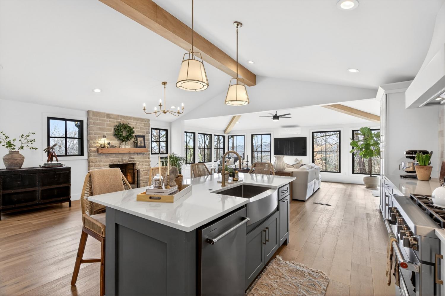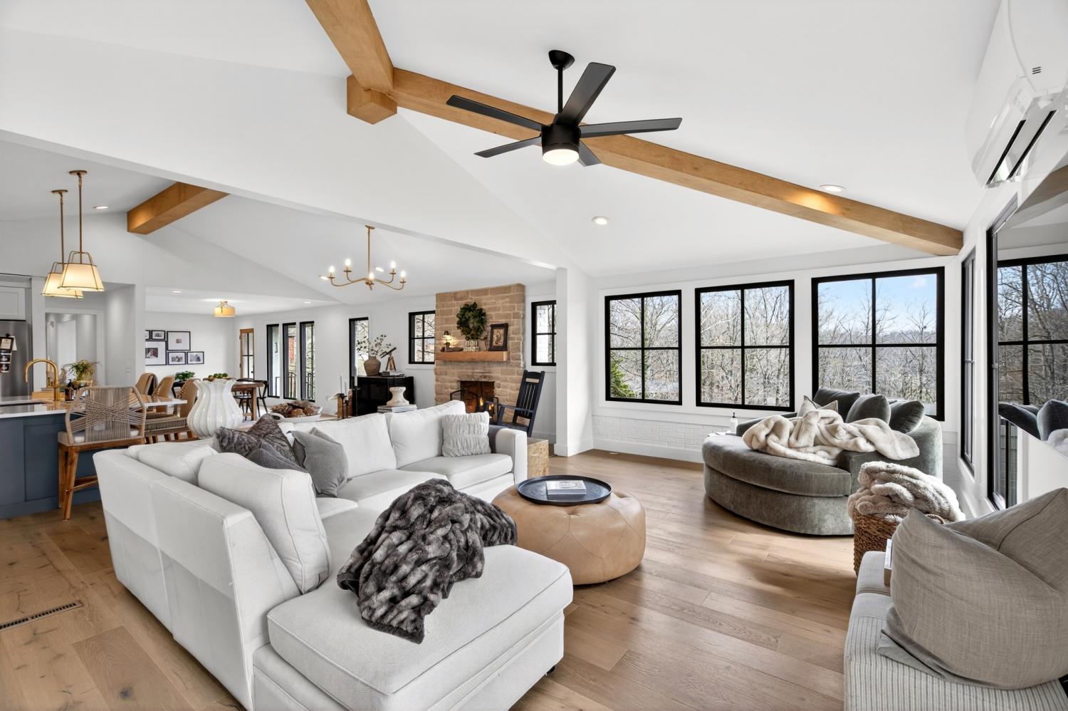 Gutted & reimagined down to the studs in 2022, this retreat is a true reinvention — bright, airy, and styled with the kind of editorial flair that stops scrollers in their tracks. The completely reconfigured open floorplan is anchored by a stunning kitchen featuring custom cabinetry, quartz countertops & a full KitchenAid Professional suite including a 6-burner industrial gas range. A vaulted den with exposed wood beams is surrounded by near floor to ceiling windows, creating an incredible, light-filled space. The primary suite is a true sanctuary with brand-new shower hardware and finishes that are reminiscent of a boutique hotel. Set on 2.4 acres along a quiet dead-end street, the property offers the kind of unhurried privacy that is increasingly rare this close to Nashville. Mature trees frame the lot on all sides, creating a natural buffer that makes the outside world feel genuinely far away — even though Bellevue’s dining and shopping are under 10 minutes down the road and downtown Nashville is under 30 minutes. Sophisticated, move-in ready, and nestled on one of Pegram’s most coveted pockets of land, this is a home where the setting is as rare and curated as the interior.