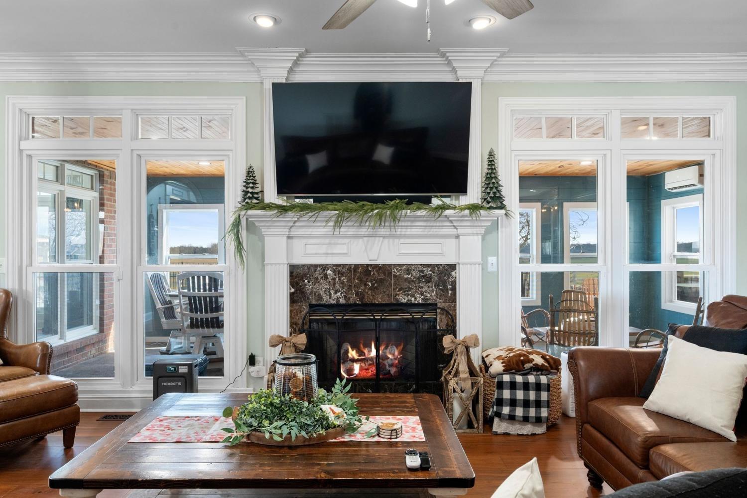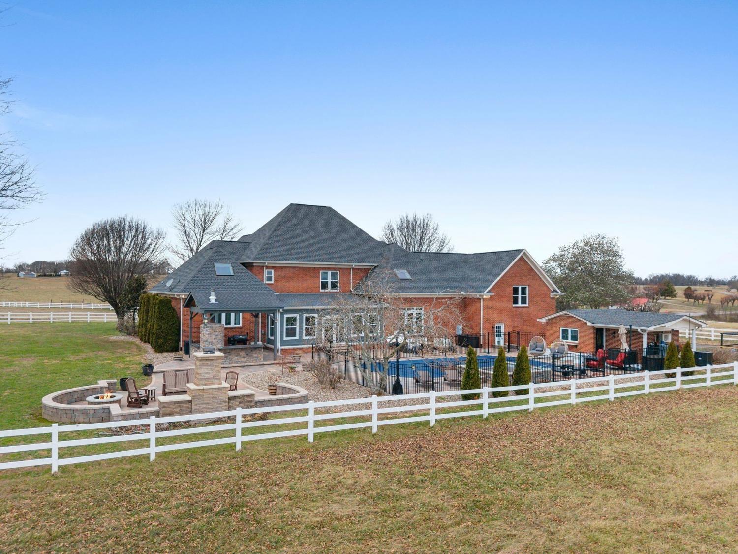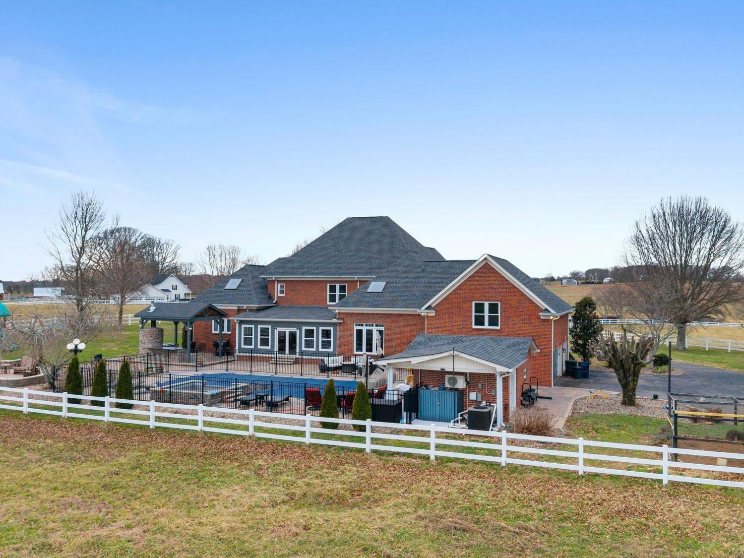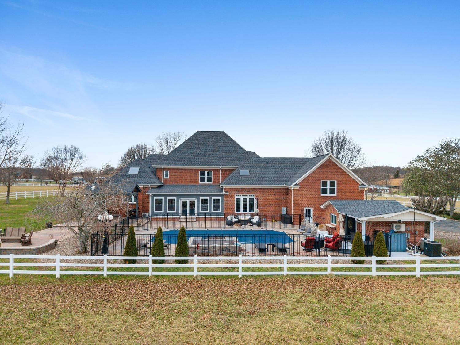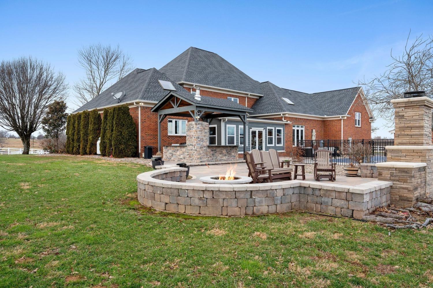 Beautifully renovated 4-bedroom, 3.5-bath solid brick home located on the west side of Macon County, set on a private 1.38-acre lot w/ automatic security gate at the entry. This property offers a blend of classic construction and extensive modern updates, with tall ceilings, elegant crown molding, and detailed trim work throughout. All bedrooms are generously sized and feature large closets, complemented by abundant additional storage across the home. A spacious laundry room with cabinetry adds everyday functionality. The backyard has been transformed with over $300,000 in upgrades, creating an exceptional outdoor living and entertaining space. A new Florida room overlooks the upgraded heated saltwater pool, complete with new sun deck and spa. The fully renovated pool house includes an additional full bathroom with shower, offering added convenience. Custom pavers, a new outdoor fireplace, and a fully equipped outdoor kitchen—featuring a grill, wine refrigerator, and custom pizza oven—complete this impressive outdoor retreat. Additional improvements include all new windows (2021), a new roof (2020), and three HVAC systems replaced this year, all geothermal ready. The front porch was renovated this summer and finished with matching pavers that tie seamlessly into the backyard design. This thoughtfully updated home offers spacious interiors, extensive upgrades, and exceptional indoor-outdoor living on a private, well-appointed setting.