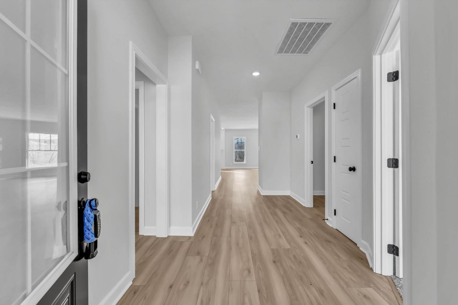 Four bedrooms all on the main floor make this stunning ranch-style home as functional as it is beautiful! Step through the front door and you’ll immediately feel the airy openness of the expansive open-concept floor plan. The heart of the home is the large, inviting kitchen featuring a generous island that’s perfect for entertaining or casual meals. Overlooking the spacious great room with its cozy shiplap fireplace, this layout ensures you’ll always be part of the conversation. Your kitchen is a chef’s dream, boasting stainless steel appliances, high-quality cabinetry, and gorgeous granite countertops that elevate the entire space. The seamless flow between the living room, dining area, and kitchen creates a warm and welcoming atmosphere ideal for gatherings both large and small. Retreat to your private primary suite where relaxation awaits. The ensuite bath offers a beautifully tiled shower, a luxurious soaking tub, and dual sinks—designed to be your own personal spa-like escape. Three additional bedrooms on the main floor provide flexibility for guests, a home office, or hobbies. Step outside to a large covered back patio—the perfect spot to enjoy morning coffee, unwind after a long day, or host weekend barbecues. The fenced yard offers plenty of space for play, pets, and gardening. Located close to everything you need, this home offers easy access to 101st and Fort Campbell, shopping, dining, and parks. A harmonious blend of style, comfort, and convenience—this home truly checks all the boxes!