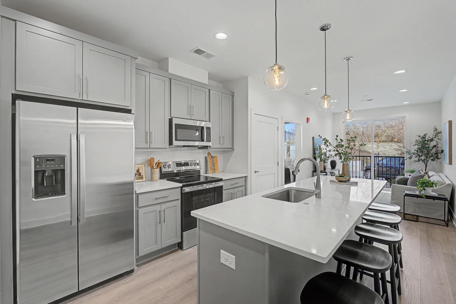 Get ready to fall in love with city living at 44Tenn Condos, This community is located in the heart of the Nations. Offering stylish one and two bedroom floor plans, condo #103 delivers the perfect mix of modern flair and everyday comfort in a chic 1 bed / 1 bath layout. You’ll enjoy a private retreat with a desired location just 15 minutes to Downtown, 10 minutes to the Hospital District, and a quick walk to the dining, boutiques, and local favorites along 51st Avenue and throughout the Nations. Step inside to a bright, open-concept living space designed for both relaxing and entertaining, with sunlight pouring in through expansive windows. The sleek, contemporary kitchen features stainless steel appliances, quartz countertops, and plenty of storage. As an added bonus, all kitchen appliances including a refrigerator and a washer/dryer are included. The primary suite feels like your own private escape, complete with a spacious closet and a beautifully appointed en-suite bath featuring upscale fixtures and finishes. Outside, enjoy the rare luxury of both a private garden space and a balcony, perfect for morning coffee, an evening cocktail, or a quiet moment away from the city buzz. This condo is only a few feet away from a grilling station and fire pit. This is your opportunity to own a new, stylish home in one of Nashville’s most walk-able and vibrant neighborhoods. Ask about the "no money down/no mortgage insurance/discounted rate 30 year fixed mortgage."