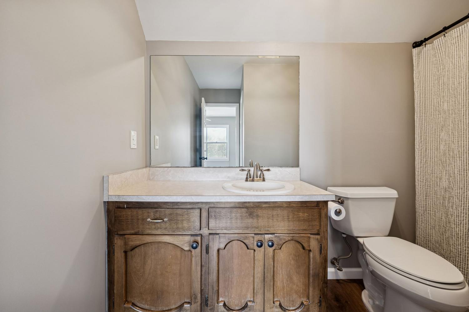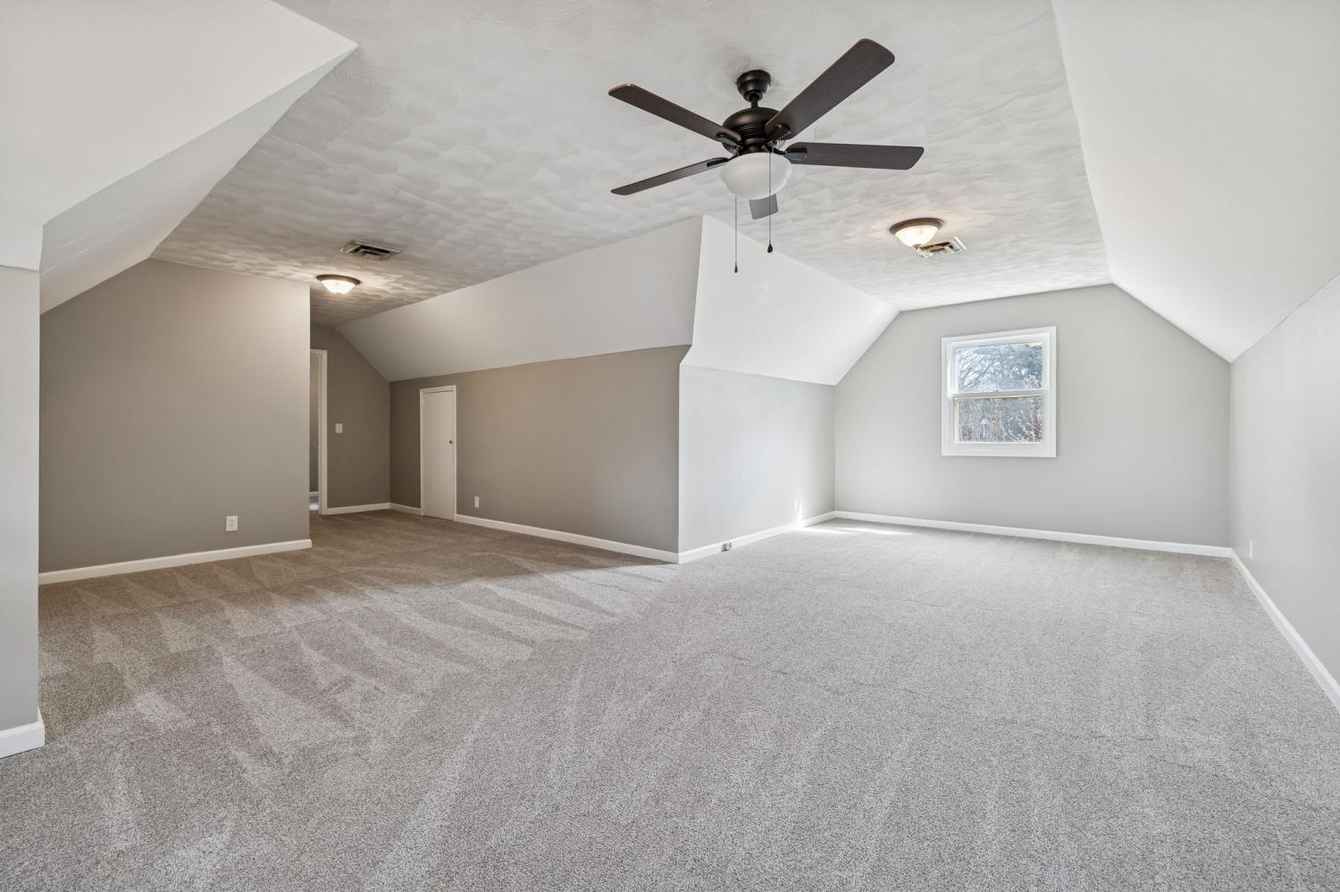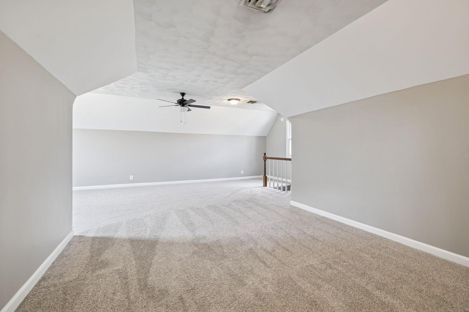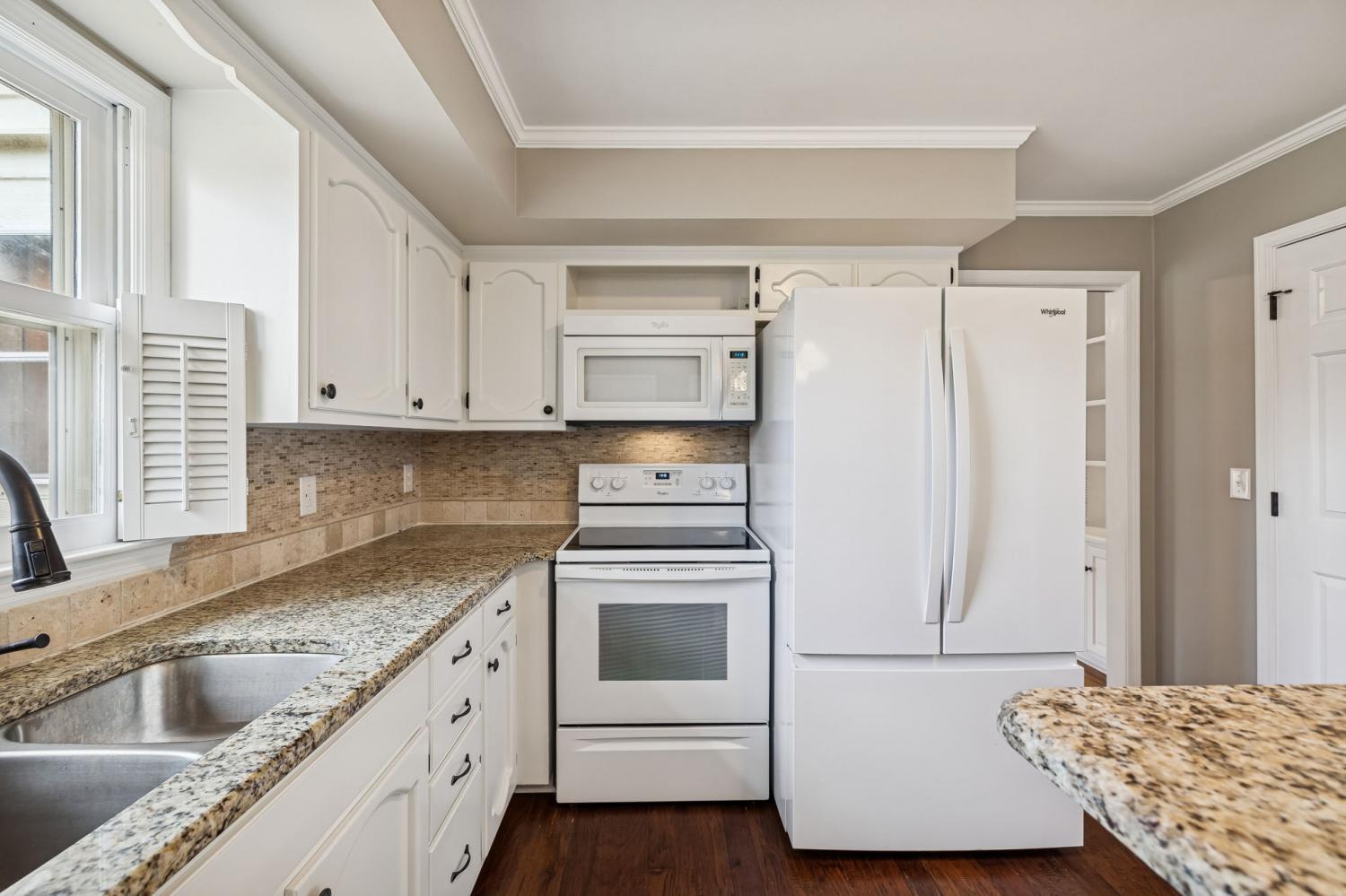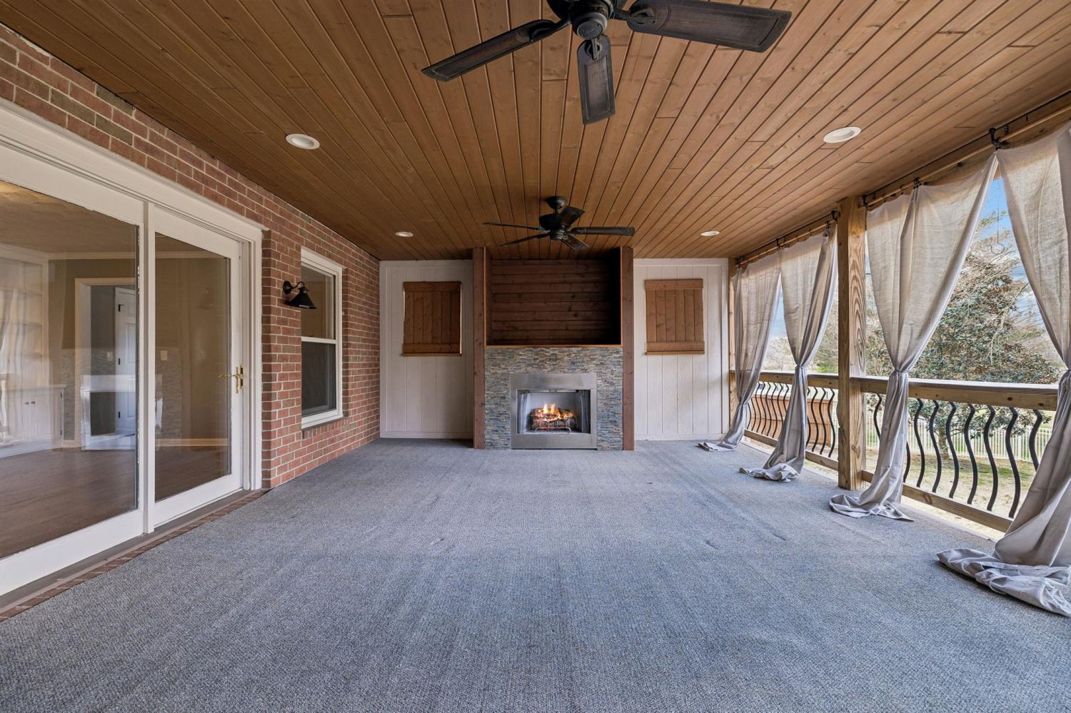 Escape to this expansive family retreat where timeless elegance meets modern refreshment. Freshly painted and featuring brand-new carpet, this home welcomes you with an oak staircase and arched doorways that lead into formal living and dining spaces. At the heart of the home, a cozy den features a fireplace flanked by custom built-in bookcases—perfect for quiet evenings. The chef-ready kitchen shines with white cabinetry, granite countertops, and a classic tile backsplash. The main-floor primary suite offers a private sanctuary with two spacious walk-in closets. Upstairs, versatility reigns with two additional bedrooms, an office, a large L-shaped bonus room, and a flexible "flex" space. The true showstopper is the outdoor oasis: a massive 23x16 covered deck overlooking a lush, sloping backyard that leads down to a tranquil creek. Whether you're enjoying morning coffee or weekend entertaining by the outdoor gas fireplace, this backyard provides an unmatched level of privacy and relaxation.