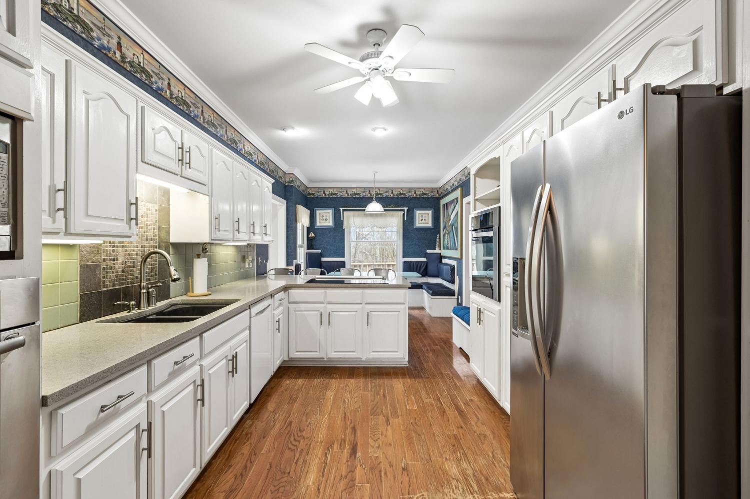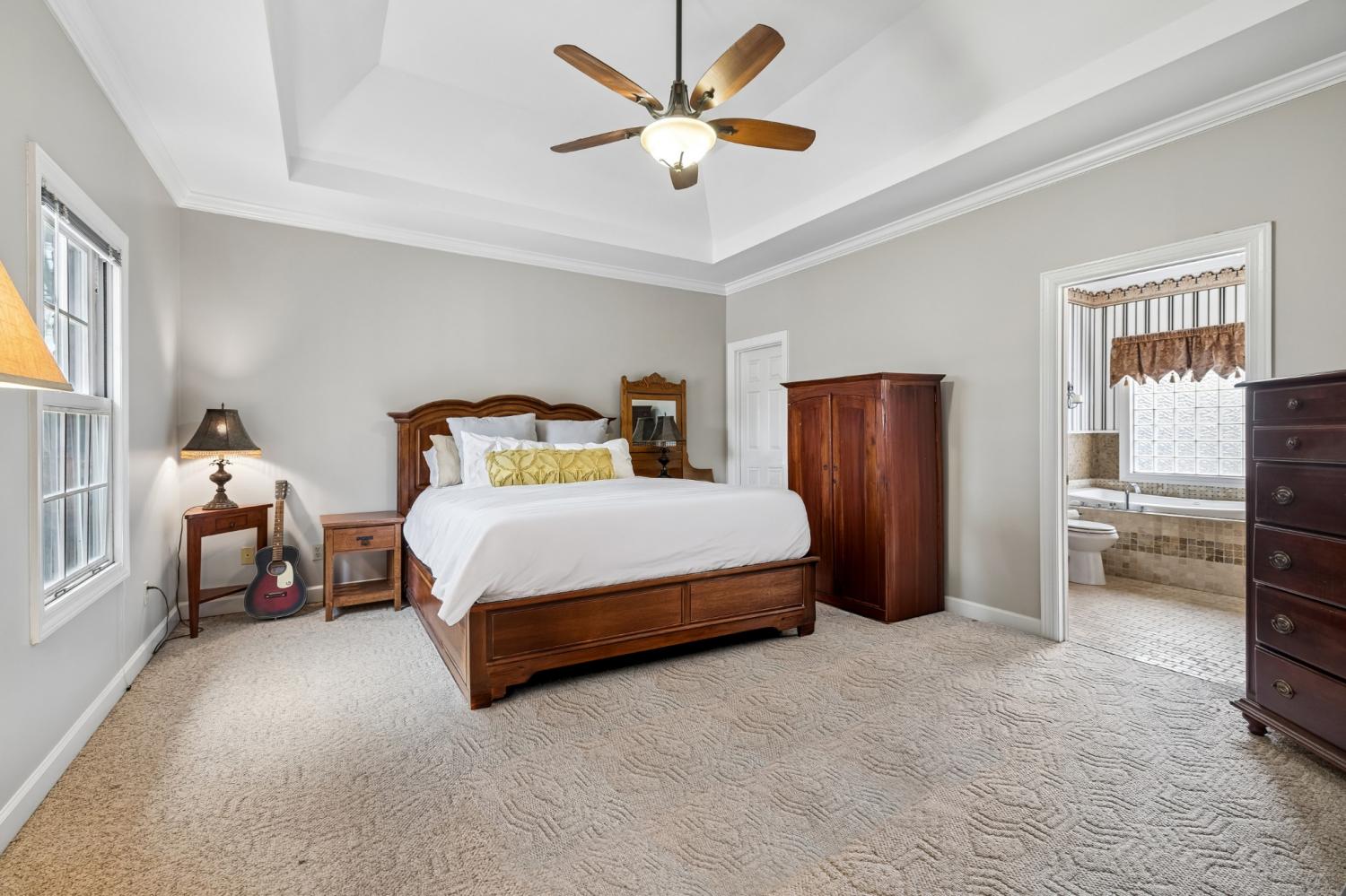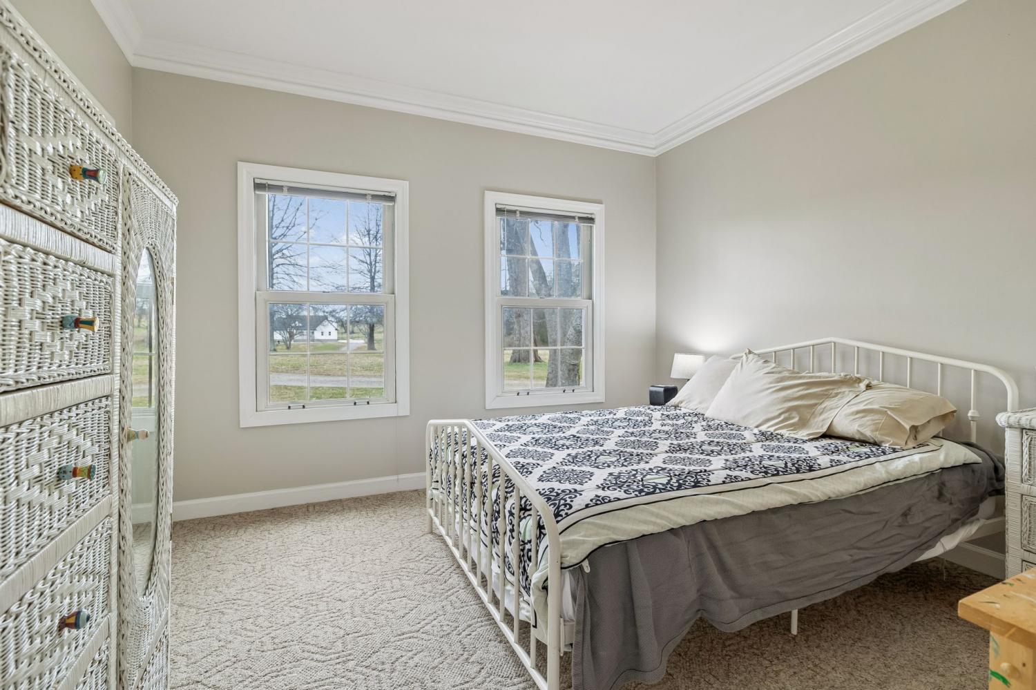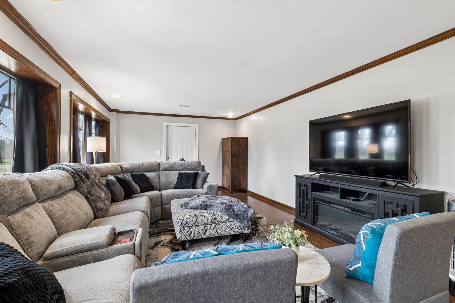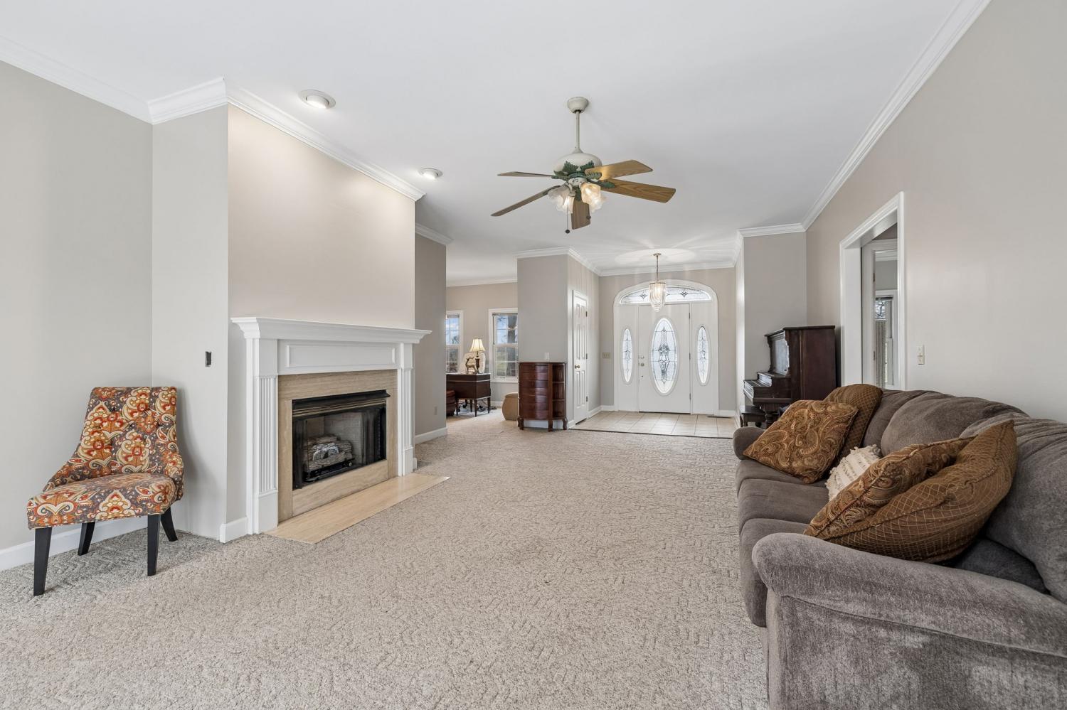 Spacious all-brick family home offering over 3,700 sq ft of living space, privately situated on a park-like lot set off the road with a long driveway for added privacy and curb appeal. This property features 3 bedrooms, 3.5 baths, a large bonus room, plus an upstairs flex room with two walk-in closets, ideal for a 4th bedroom, home office, or additional living space. A brand-new HVAC system has just been installed, and the interior has been professionally painted throughout most of the home. The kitchen is designed for both everyday living and entertaining with an abundance of cabinetry, bar seating, and built-in booth/bench seating. The living room showcases floor-to-ceiling windows that fill the space with natural light, along with a fireplace, crown molding, and quality finishes throughout. A desirable split-floor plan offers privacy along with generous storage space throughout the home. The oversized utility room is exceptionally functional, featuring space large enough for multiple hampers, a utility sink, a built-in ironing board for added convenience, and an additional storage closet with deep freezer. Situated on 5.01 acres with room to roam, this property offers privacy, space, and flexibility in a peaceful setting—perfect for buyers seeking tranquility.
