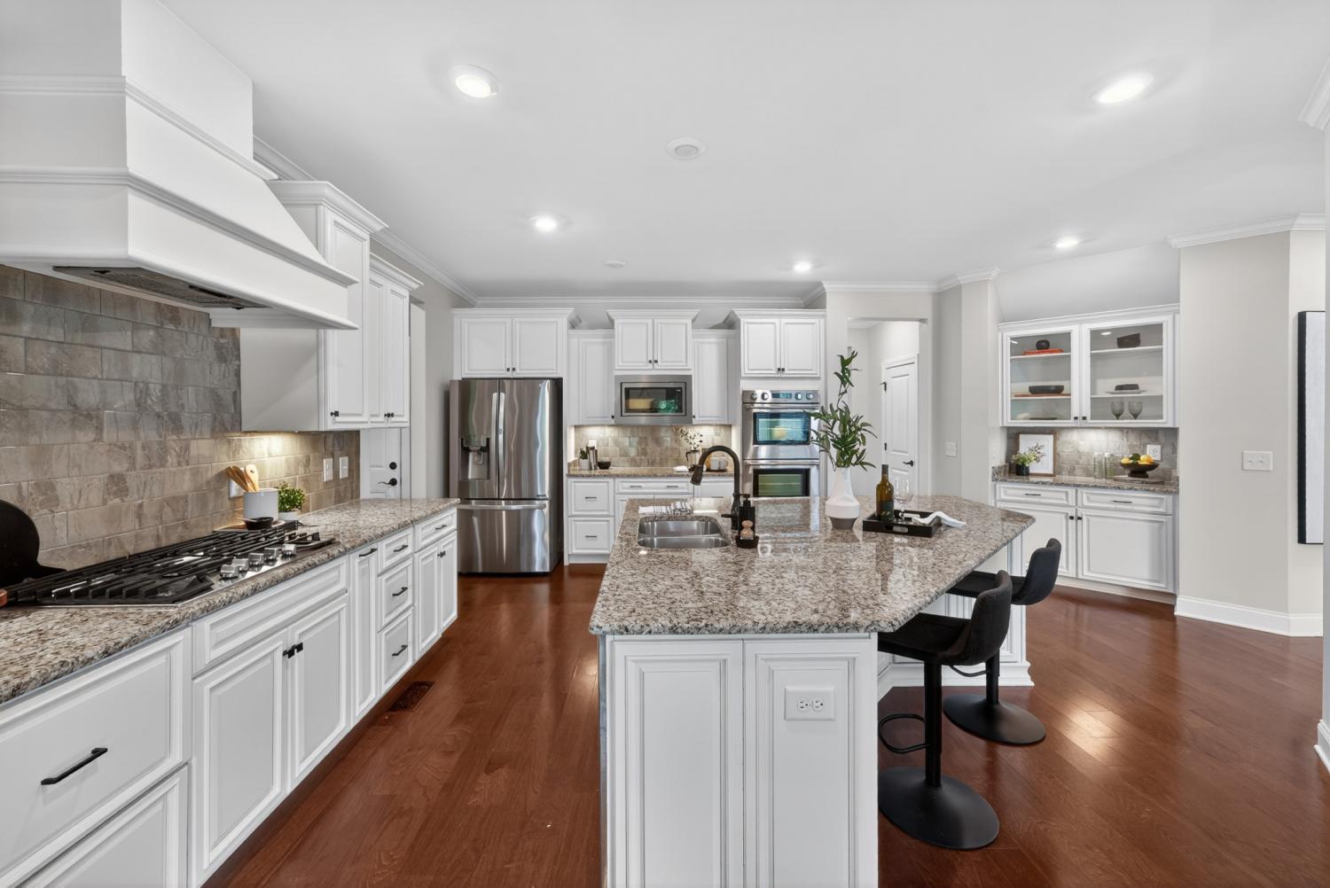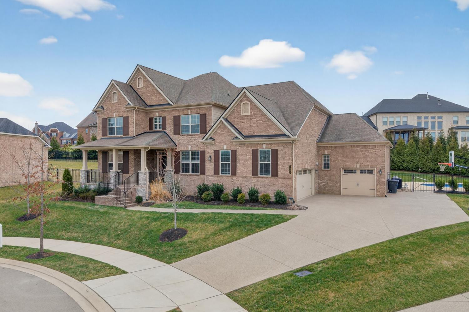 Welcome to 1007 Blaine Court, an exceptional residence set on a quiet cul-de-sac in the prestigious Crest at Ladd Park. Built in 2020 by the renowned Jones Company, this expansive 5-bedroom, 4.5-bath Claybrooke plan is distinguished by its grand scale, architectural presence, and thoughtfully curated spaces designed for both elevated living and effortless entertaining. From the moment you enter, the home makes a statement. A gracious foyer is anchored by a dedicated executive office, while formal and informal dining spaces provide versatility for intimate gatherings and elegant hosting alike. The open-concept living area flows seamlessly into a chef’s kitchen—creating a refined yet welcoming atmosphere ideal for both everyday living and large-scale entertaining. The home offers an impressive array of lifestyle spaces, including both a media room and a bonus room, allowing for a private theater experience, recreation, fitness, or additional living quarters. The primary suite is a true retreat, filled with natural light from beautiful bay windows and complemented by a spacious, spa-inspired en-suite bath. Four additional bedrooms are generously sized and thoughtfully positioned to provide privacy and comfort throughout. Step outside and experience resort-style living at its finest. The backyard is a showpiece, featuring a luxury pool with breathtaking views, a hot tub, and a covered patio designed for year-round enjoyment. The expansive yard offers rare versatility, with ample space for a playset blending refined luxury with functional outdoor living. A extended driveway makes for a great bball court and three-car garage completes the estate-like feel of the property. Located within one of Franklin’s most sought-after communities, Ladd Park offers scenic walking trails, two pools, two playgrounds, and an active calendar of neighborhood events—creating a lifestyle defined by connection and exclusivity. Just minutes from historic downtown Franklin and Cool Springs.