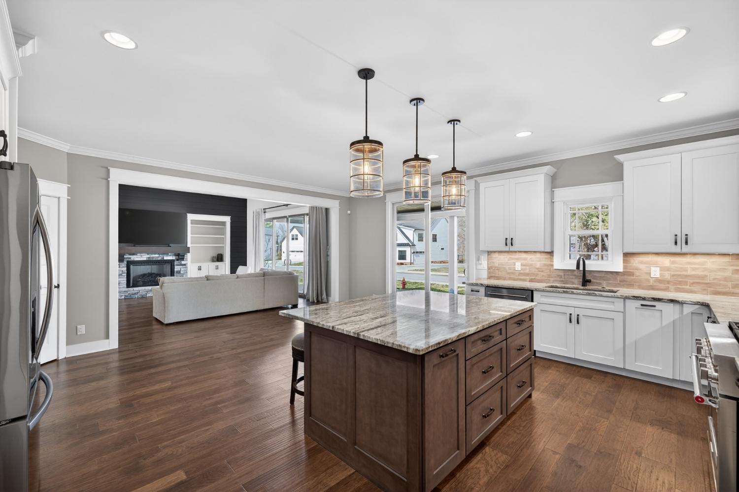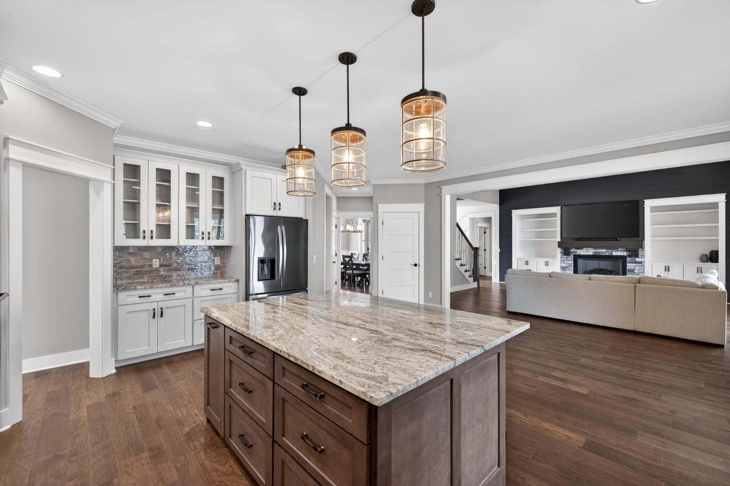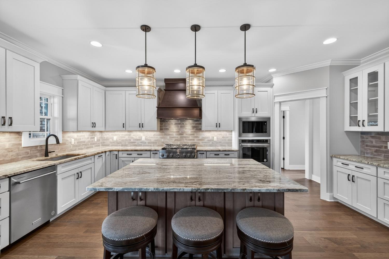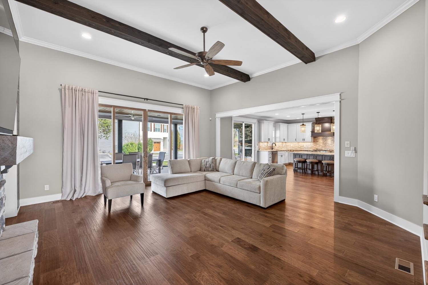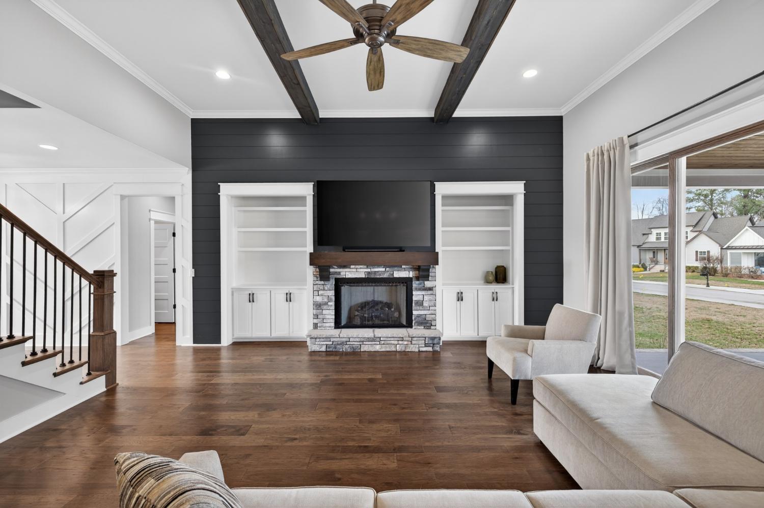 Lake life meets living space in this standout Twin Creeks home inside a Tims Ford Lake gated, marina community. Uniquely positioned, the front entry opens to a quiet cul-de-sac while the rear of the home sits just across from a marina walking path, creating an ideal blend of privacy and walkability. From the back covered porch and upstairs covered balcony, you’ll enjoy partial lake views. With over 3,800 square feet, this is one of the larger homes in the neighborhood and fits entertainers, large families, or buyers who want room for everyone to gather. The layout offers six bedrooms, four and a half baths, a bonus room, a covered front porch, and an impressive 40x13 covered rear porch with outdoor fireplace made for game days, long evenings, and memorable weekends. There is also a patio with a natural gas stub ready for your grill. Inside, the main level features wood flooring throughout the living areas, trim detail, and wainscoting. The vaulted Great Room is anchored by a gas fireplace with built-in bookcases on both sides, while double sliding glass doors open to the covered porch. The kitchen features granite surfaces, a large island, stainless appliances, double ovens, gas range, and a walk-in pantry. Also on the main level are a formal dining room, a drop zone with cubbies, and two bedroom suites—including the primary and a secondary bedroom—each with a bath and walk-in closet. Upstairs, four additional bedrooms and a large bonus room provide flexibility, and one bedroom opens directly to the covered balcony with a sight line toward the water. The epoxy-finished garage adds another polished detail. Beyond the home itself, Twin Creeks offers neighborhood pools, a clubhouse, and easy access to Twin Creeks Marina and Drafts & Watercrafts. Boat rentals, paddlesports, lakeside dining, downtown Winchester, Tims Ford Lake, Tims Ford State Park, and Bear Trace golf help make this a place where weekends feel bigger, summers feel longer, and memories come easy.