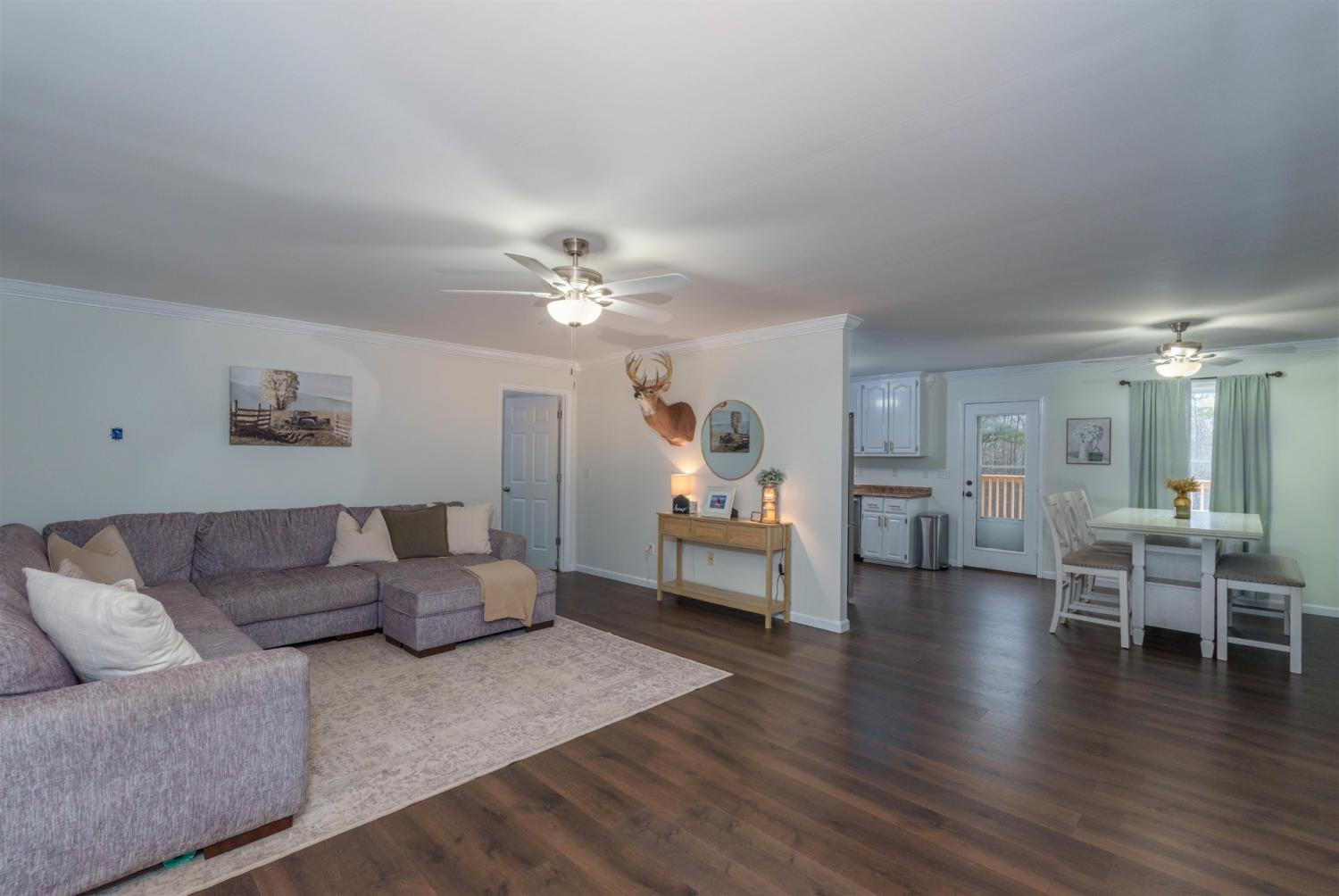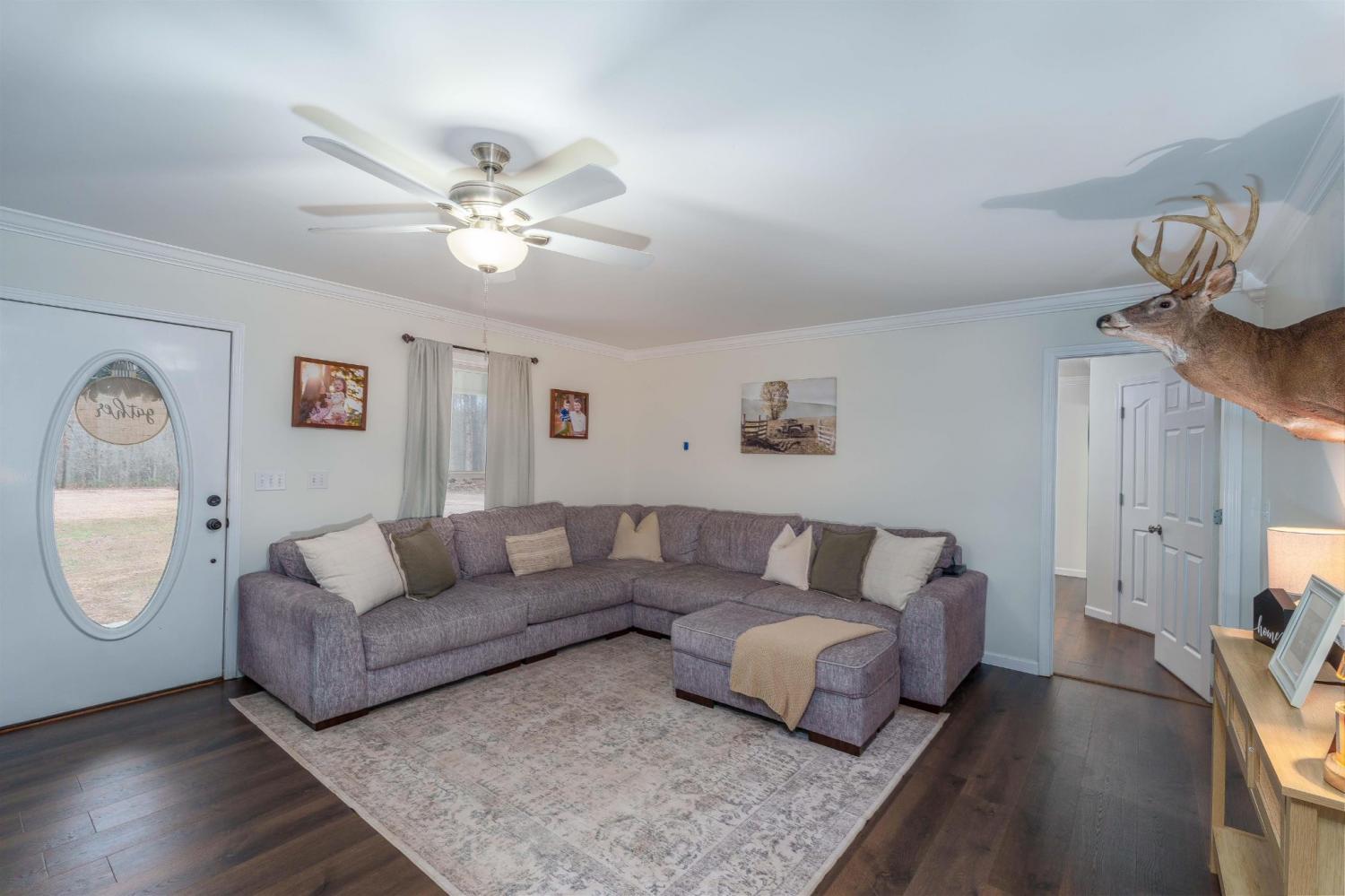 Beautiful move-in ready well maintained home with guest house on 10+/- acres. The guest house if perfect for family and friends or mother-in-law suite, mancave, she shed, or business office. The 10 acres are a hunters paradise. Enjoy watching the wildlife on your new 12x24 back deck. The interior boast new flooring and fresh paint throughout. The large living room with fireplace opens onto the dining room and the kitchen with lots of cabinets and a pantry. Each bedroom features its own walk-in closet. The 20x27 double attached garage is ready for vehicles, ATV toys and tools. Enjoy peace of mind with a durable and low maintenance new metal roof. The property has a Storm Shelter