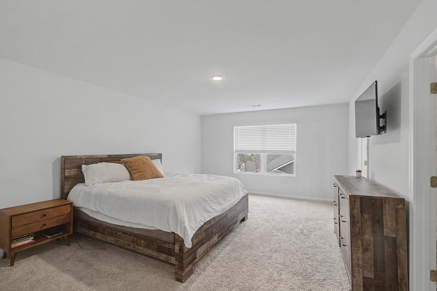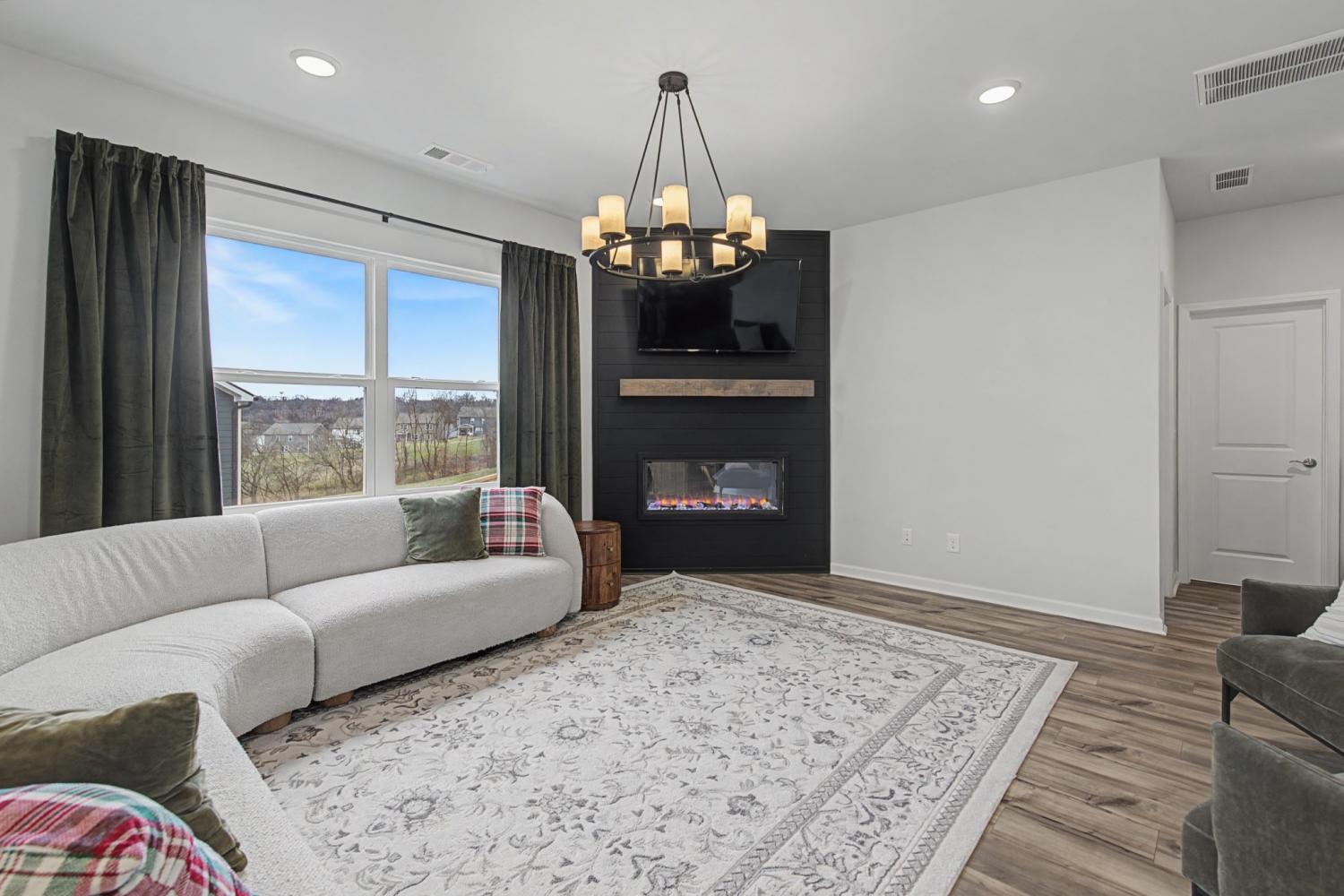 Welcome to this stunning 5-bedroom, 3-bathroom home in the Hamlet at Carothers Crossing. The home offers a modern living space situated on a prime corner lot at the highest vantage point in the neighborhood, offering magnificent views. The main level features a bright, open-concept floor plan centered around a chef-inspired kitchen with a large island, quartz countertops, herringbone backsplash, and stainless steel appliances that flow directly into a spacious gathering room. A main-floor guest suite and dedicated study provide incredible flexibility for work, guests, or extended family members. Upstairs, the home continues to impress with a massive bonus loft and a luxurious owner’s suite designed for relaxation with a soaker tub and separate shower. Three additional well-appointed bedrooms ensure plenty of space for everyone. The home has upgraded lighting, feature walls in most rooms, and a privacy fence around the entire backyard. Located just minutes from I-24, this home offers an easy commute to both Nashville and Murfreesboro, while keeping you close to community walking trails and Cane Ridge Park. Zoned for the highly-regarded Stewarts Creek school cluster, this home perfectly combines convenience, luxury, and style.
