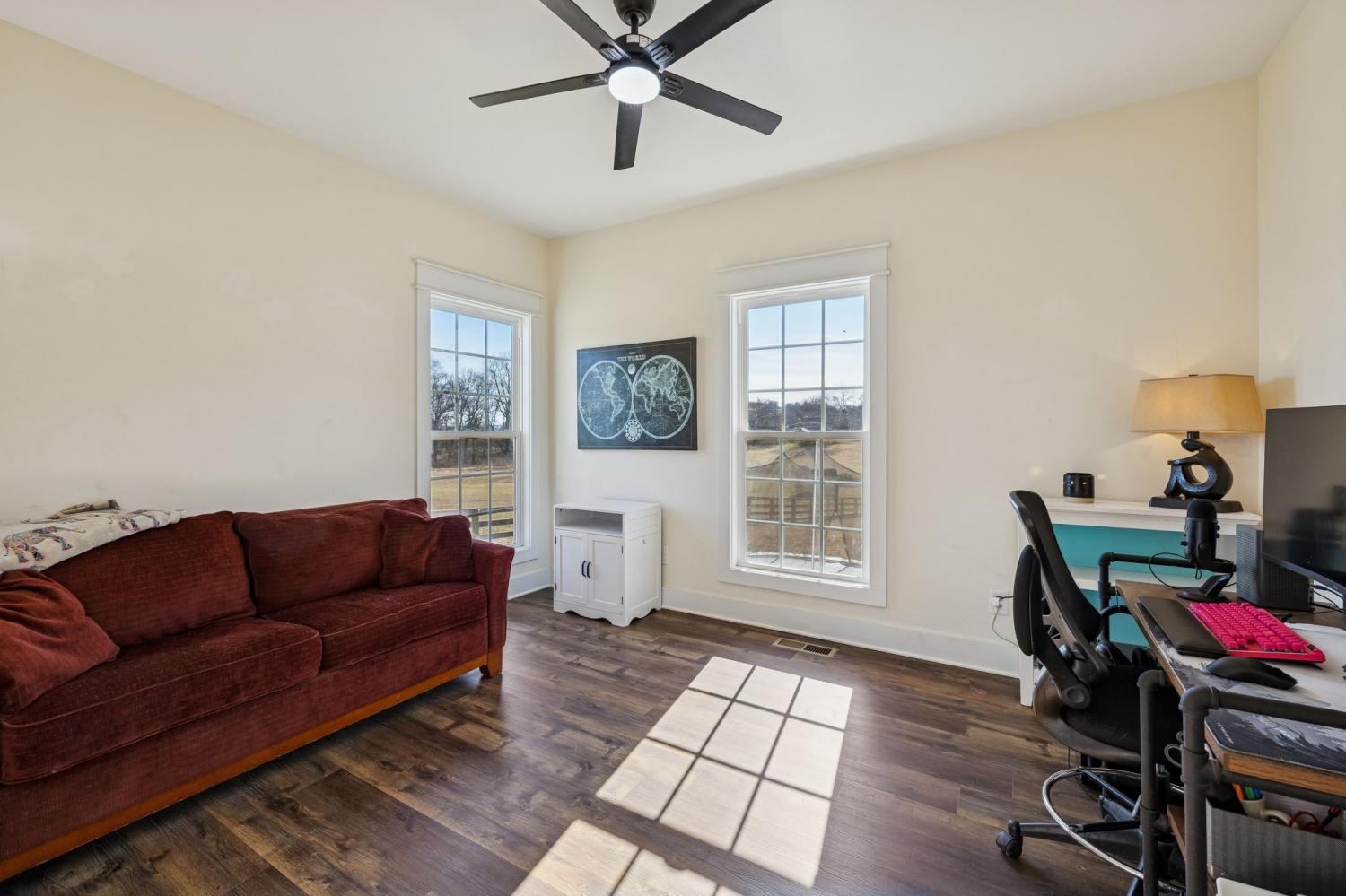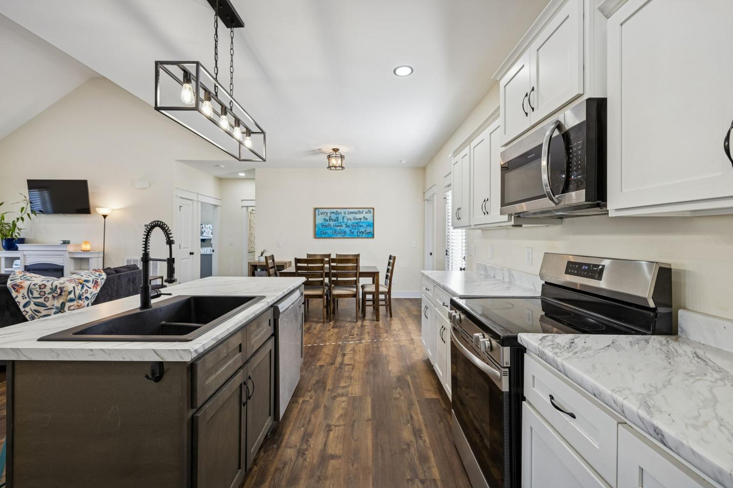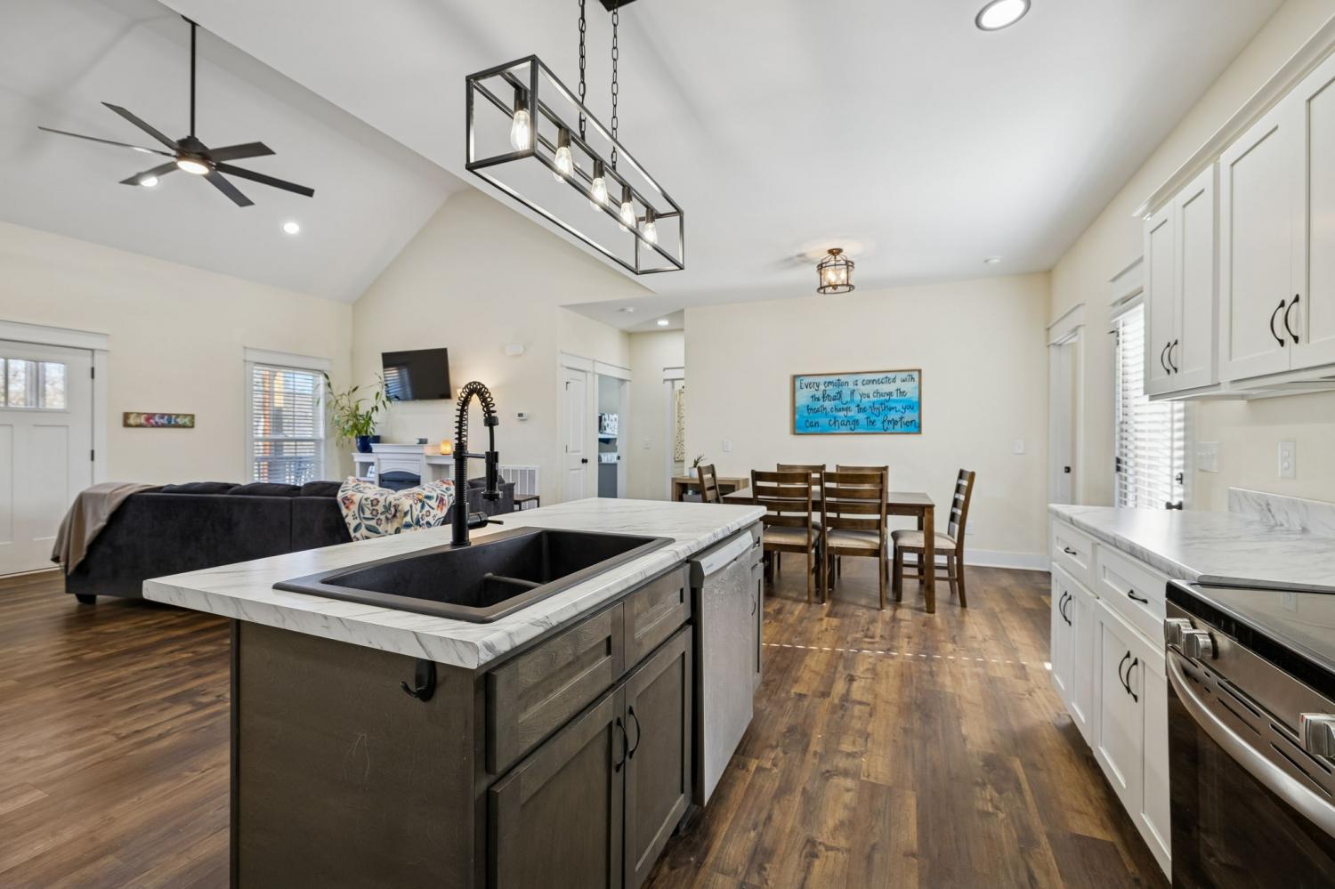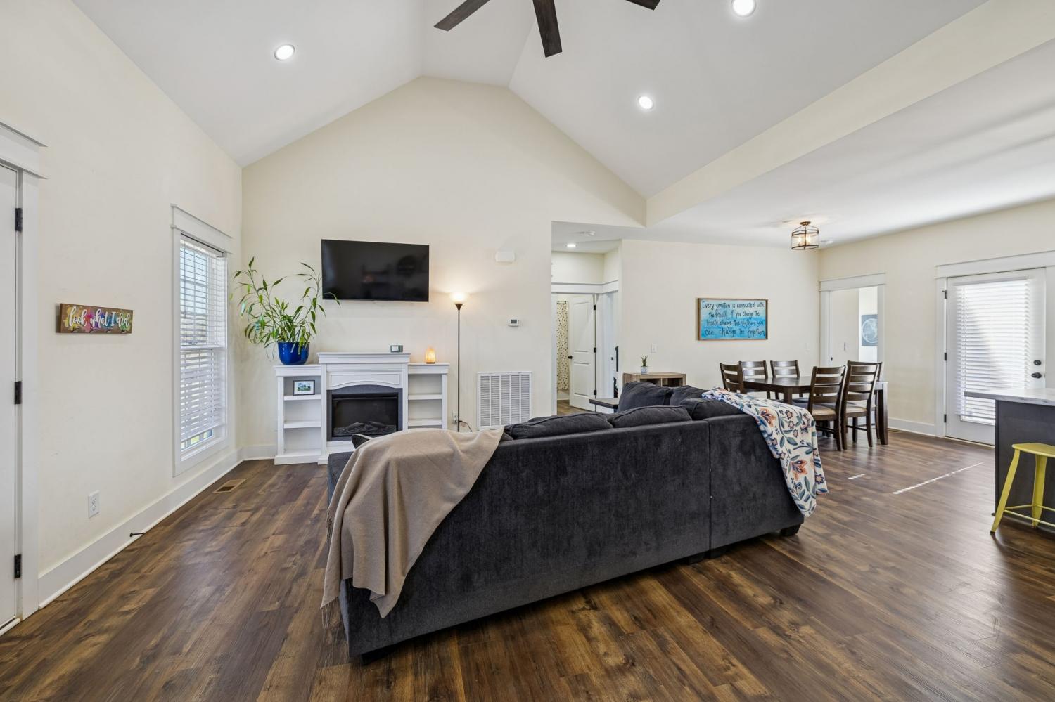Welcome home to this beautiful 4 bedroom, 2 bath home situated on a spacious acre lot in Cornersville, Tennessee. Offering an open split floor plan, this true four bedroom layout provides flexibility for a home office, workout room, or guest space. Step inside to vaulted ceilings and an inviting open living area filled with natural light. The kitchen features granite countertops, stainless steel appliances, ample cabinetry, and a functional island perfect for entertaining or everyday living. Luxury vinyl plank flooring runs throughout, combining durability with style. Enjoy peaceful mornings on the covered front porch or relax on the back deck overlooking the fully fenced backyard, ideal for kids, pets, or gatherings. A convenient carport provides covered parking and additional storage. With no HOA and located less than 3 miles from interstate access, this home offers the perfect balance of quiet country living with quick access to town, schools, and everyday conveniences.