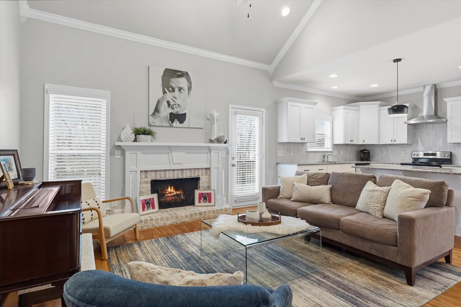 Welcome home to this contemporary remodeled, single-level residence in Wade’s Grove. This newer home offers excellent updated finishes with a convenient floor plan. All bedrooms are conveniently located on the main level, while the spacious upstairs bonus/TV room is tucked away—perfect for enjoying movies or recreational activities without disturbing those resting below. A dry bar upstairs adds an ideal touch for entertaining. From the moment you arrive, you’ll appreciate the flat driveway and inviting Southern-style front porch—perfect for great conversation and memories made. The all-brick exterior not only enhances curb appeal but also provides excellent insulation and energy efficiency. Inside, you’ll find soaring vaulted ceilings and an open-concept layout that connects modern design with function. The contemporary kitchen features updated lighting and stylish fixtures that carry throughout the home. Every closet is outfitted with a custom Container Store organization system, maximizing storage, organization and cleanliness. The primary suite offers a completely remodeled bathroom highlighted by a spacious walk-in shower, creating a retreat atmosphere. Step out back to enjoy a entertaining deck—especially as there is a green space behind the home with plenty of tree cover and privacy. Don’t miss this one-of-a-kind, fully renovated home in Wade’s Grove—where modern collides with timeless Southern charm.