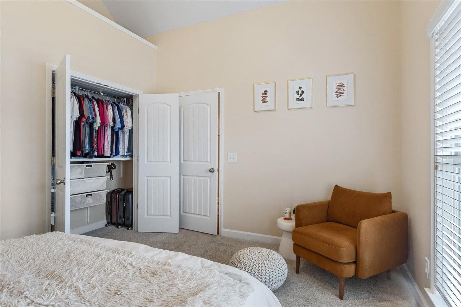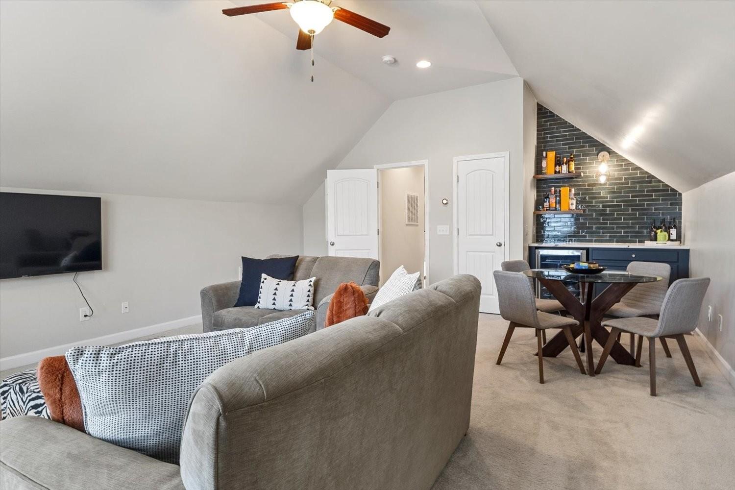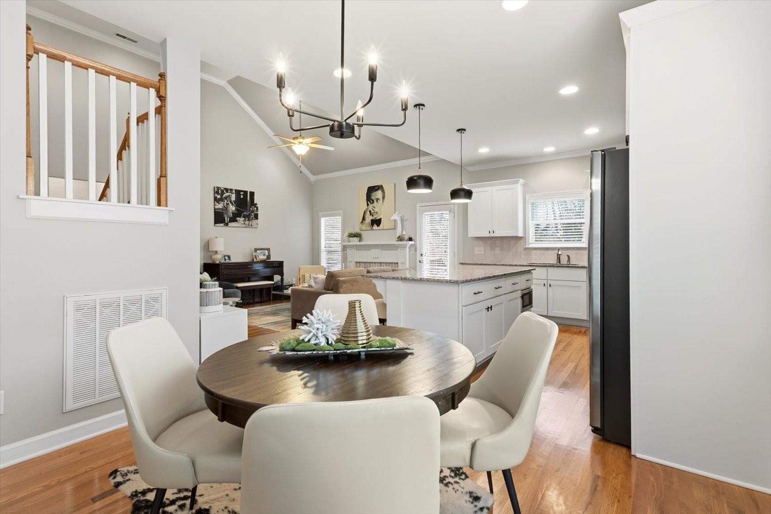 Welcome home to this contemporary remodeled, single-level residence in Wade’s Grove. This newer home offers excellent updated finishes with a convenient floor plan. All bedrooms are conveniently located on the main level, while the spacious upstairs bonus/TV room is tucked away—perfect for enjoying movies or recreational activities without disturbing those resting below. A dry bar upstairs adds an ideal touch for entertaining. From the moment you arrive, you’ll appreciate the flat driveway and inviting Southern-style front porch—perfect for great conversation and memories made. The all-brick exterior not only enhances curb appeal but also provides excellent insulation and energy efficiency. Inside, you’ll find soaring vaulted ceilings and an open-concept layout that connects modern design with function. The contemporary kitchen features updated lighting and stylish fixtures that carry throughout the home. Every closet is outfitted with a custom Container Store organization system, maximizing storage, organization and cleanliness. The primary suite offers a completely remodeled bathroom highlighted by a spacious walk-in shower, creating a retreat atmosphere. Step out back to enjoy a entertaining deck—especially as there is a green space behind the home with plenty of tree cover and privacy. Don’t miss this one-of-a-kind, fully renovated home in Wade’s Grove—where modern collides with timeless Southern charm.