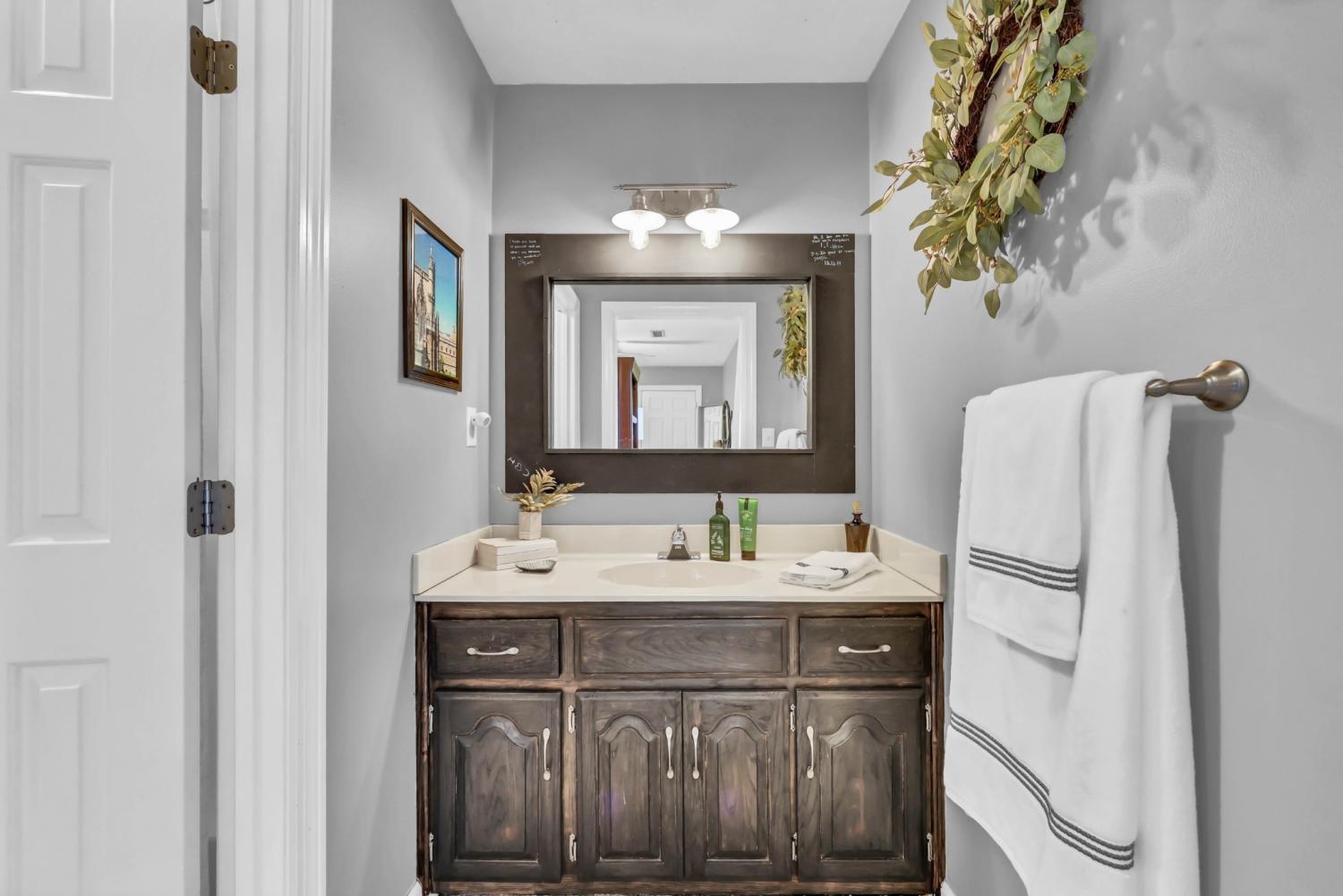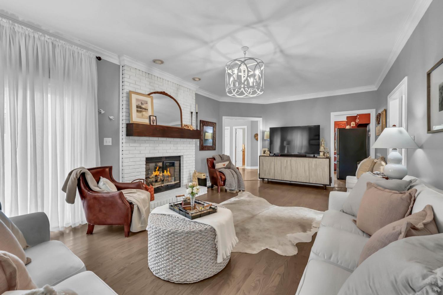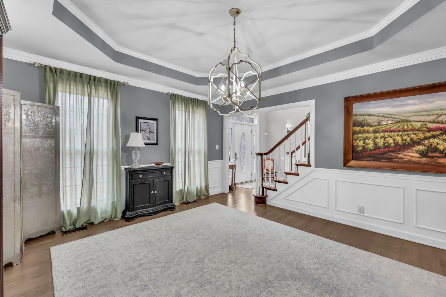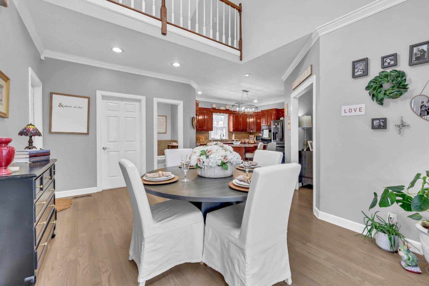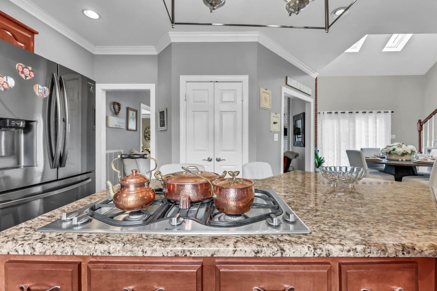Located in the heart of Sango on 1.39 acres, this impressive all-brick executive-style home offers the perfect balance of space, craftsmanship, and thoughtful design for both everyday living and elevated entertaining. Step into the foyer and you’re immediately greeted by a striking staircase & an abundance of natural light, setting the tone for the quality and scale found throughout. The dining room showcases a trey ceiling and refined architectural detailing, creating a sophisticated backdrop for holidays and formal gatherings. The living room is anchored by a gas-burning fireplace and flows seamlessly into the spacious eat-in kitchen, featuring granite countertops, a gas range, double wall ovens, French door refrigerator, island seating, pantry storage, & abundant cabinetry. The adjoining breakfast room is bright & inviting, enhanced by two skylights & an open-concept layout that fills the space with natural light. Sliding doors lead directly to the back deck, making indoor-outdoor entertaining effortless. A secondary staircase from this area adds both convenience and architectural interest. The main-level primary suite is a private retreat, highlighted by a trey ceiling and a well-appointed bath with dual vanities, soaking tub, tiled shower, and separate his-and-her walk-in closets. Upstairs, you’ll find generously sized secondary bedrooms, a Jack-and-Jill bath, an upper-level loft, and a large vaulted bedroom with built-in bookcases — offering exceptional flexibility for a bonus room, media space, office, or guest suite. Hardwood flooring extends through much of the main level, and a spacious laundry room adds everyday functionality. With a concrete drive, full basement, quality finishes throughout, and a prime Sango location just minutes to the interstate, shopping, and dining, this home combines timeless construction with modern livability. A rare opportunity to own a beautifully designed brick home on acreage in one of Clarksville’s most desirable areas.
