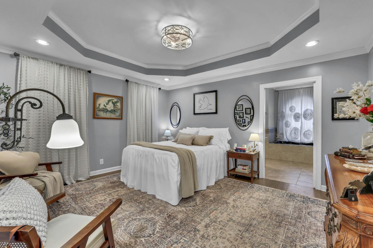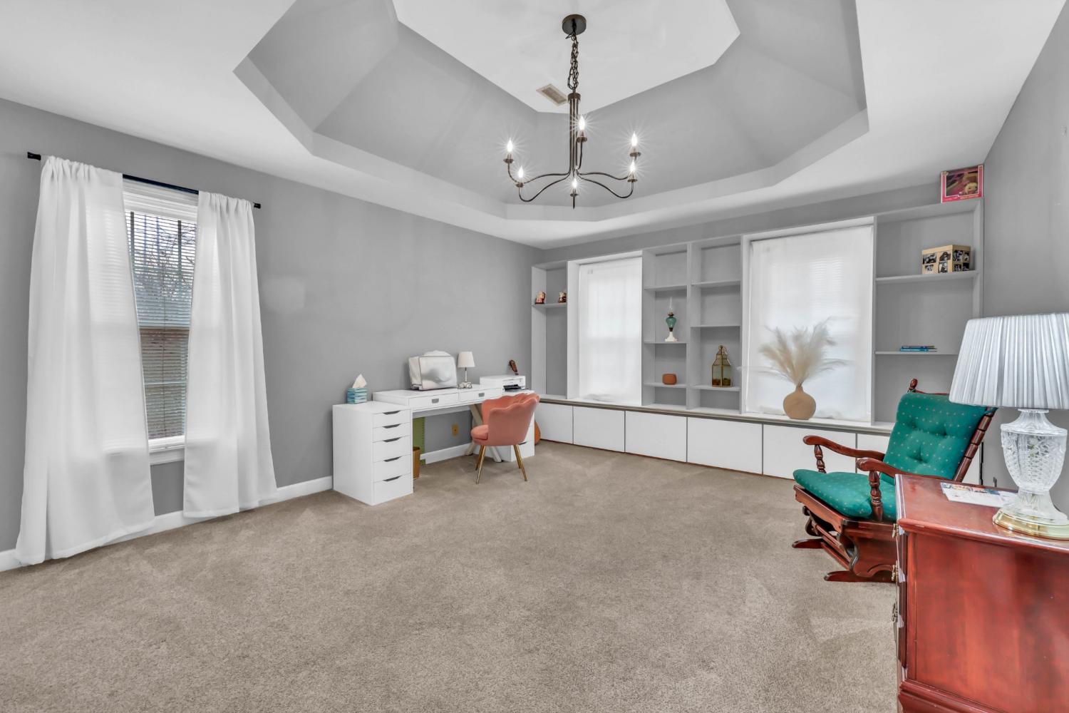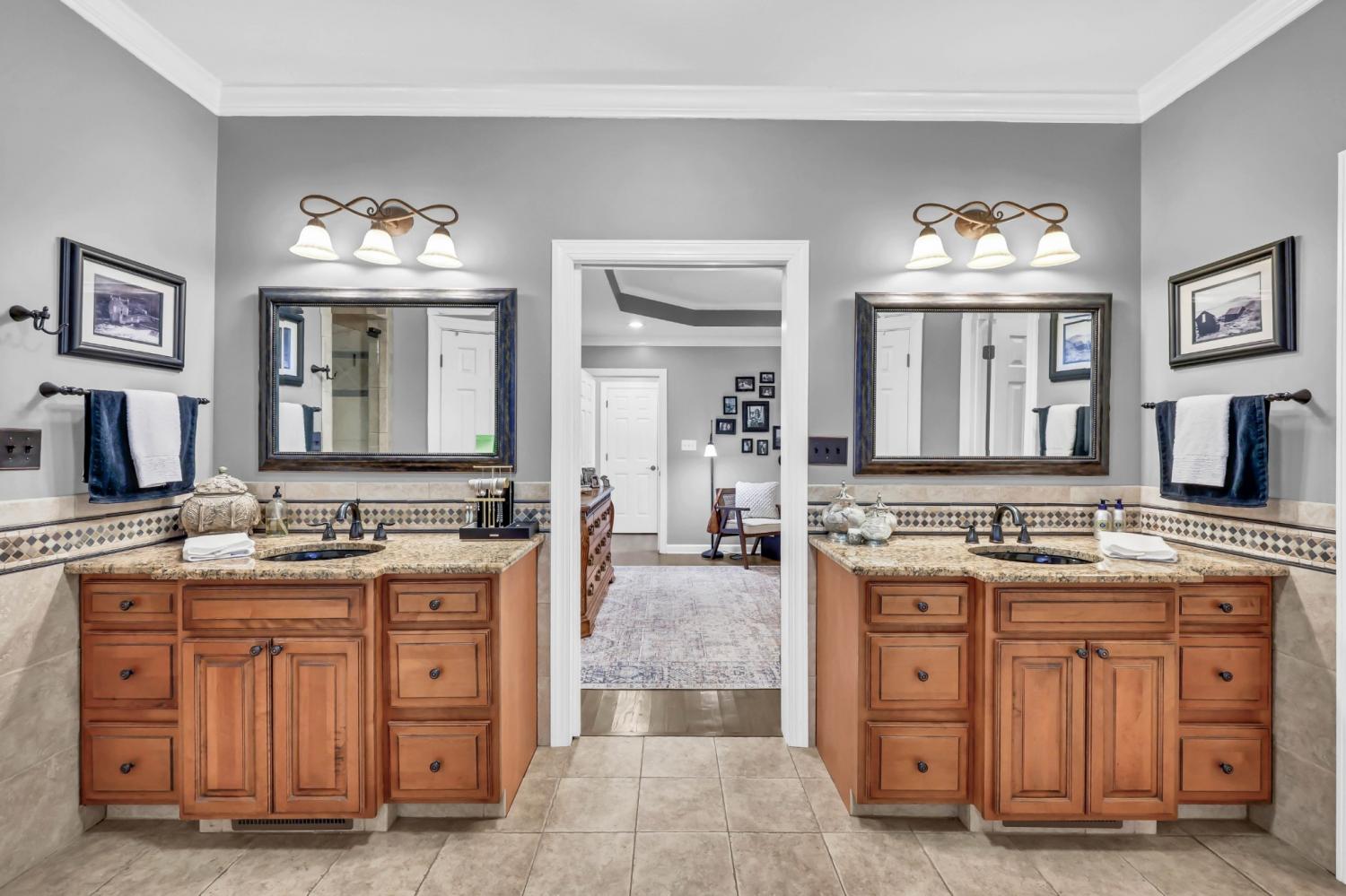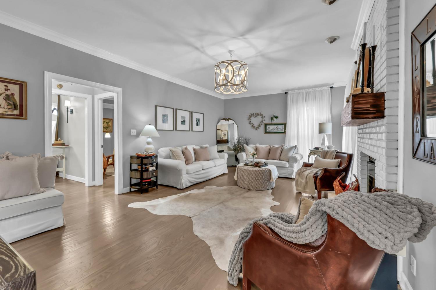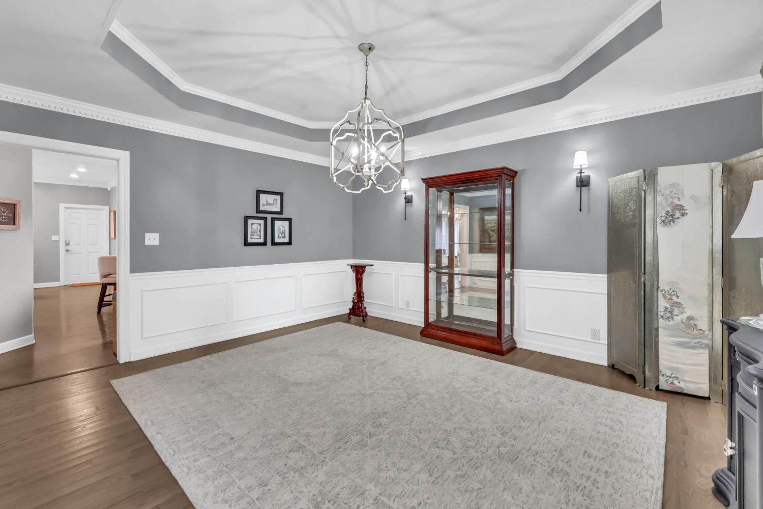 Located in the heart of Sango on 1.39 acres, this impressive all-brick executive-style home offers the perfect balance of space, craftsmanship, and thoughtful design for both everyday living and elevated entertaining. Step into the foyer and you’re immediately greeted by a striking staircase & an abundance of natural light, setting the tone for the quality and scale found throughout. The dining room showcases a trey ceiling and refined architectural detailing, creating a sophisticated backdrop for holidays and formal gatherings. The living room is anchored by a gas-burning fireplace and flows seamlessly into the spacious eat-in kitchen, featuring granite countertops, a gas range, double wall ovens, French door refrigerator, island seating, pantry storage, & abundant cabinetry. The adjoining breakfast room is bright & inviting, enhanced by two skylights & an open-concept layout that fills the space with natural light. Sliding doors lead directly to the back deck, making indoor-outdoor entertaining effortless. A secondary staircase from this area adds both convenience and architectural interest. The main-level primary suite is a private retreat, highlighted by a trey ceiling and a well-appointed bath with dual vanities, soaking tub, tiled shower, and separate his-and-her walk-in closets. Upstairs, you’ll find generously sized secondary bedrooms, a Jack-and-Jill bath, an upper-level loft, and a large vaulted bedroom with built-in bookcases — offering exceptional flexibility for a bonus room, media space, office, or guest suite. Hardwood flooring extends through much of the main level, and a spacious laundry room adds everyday functionality. With a concrete drive, full basement, quality finishes throughout, and a prime Sango location just minutes to the interstate, shopping, and dining, this home combines timeless construction with modern livability. A rare opportunity to own a beautifully designed brick home on acreage in one of Clarksville’s most desirable areas.