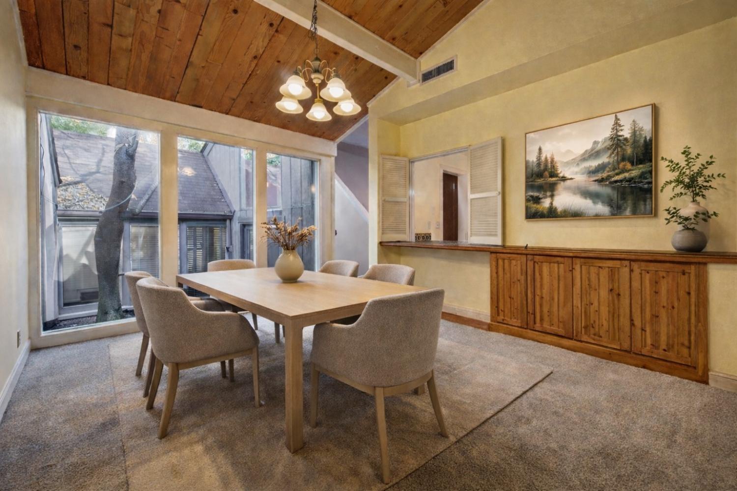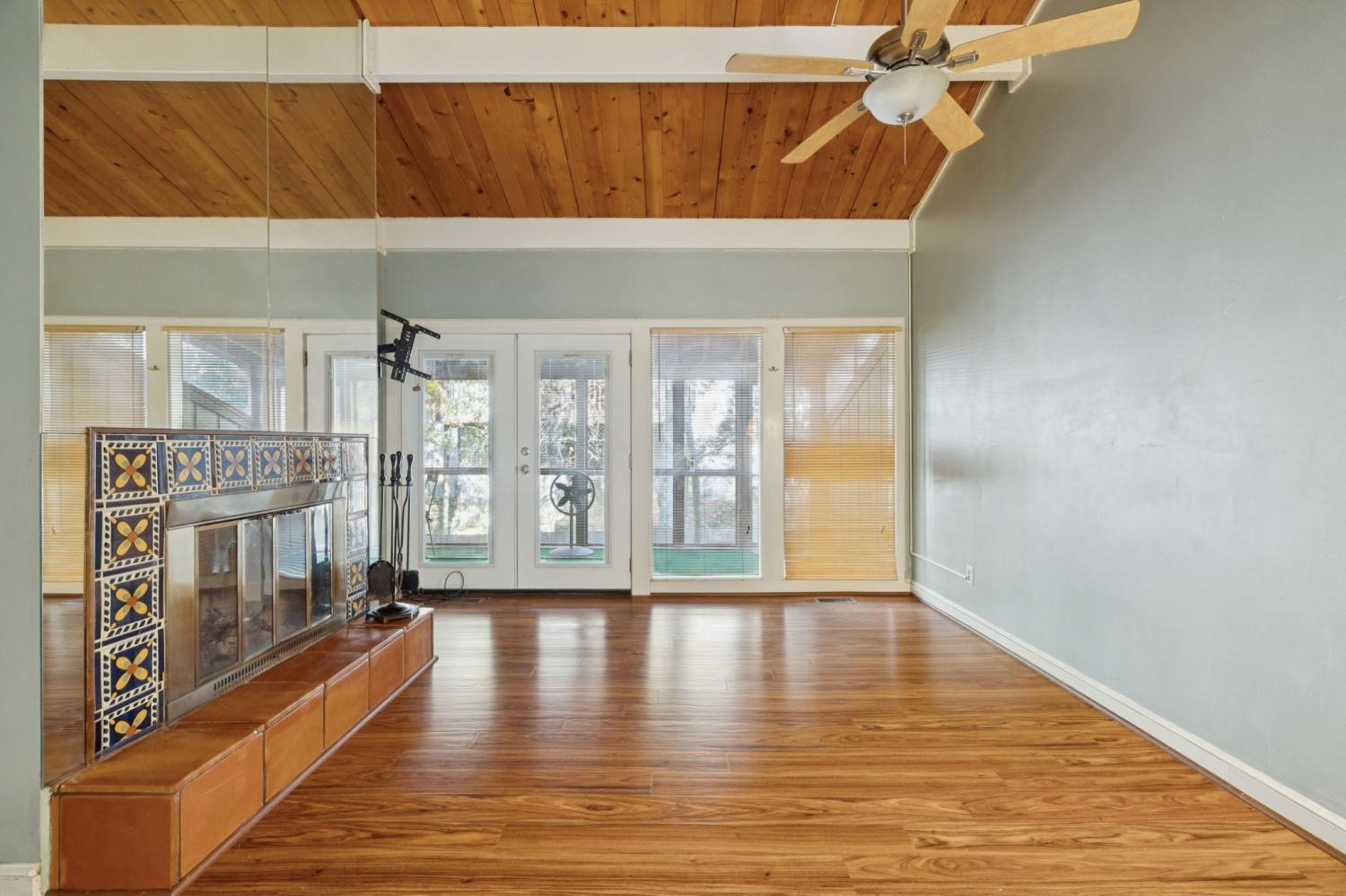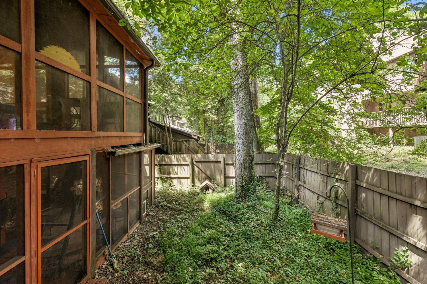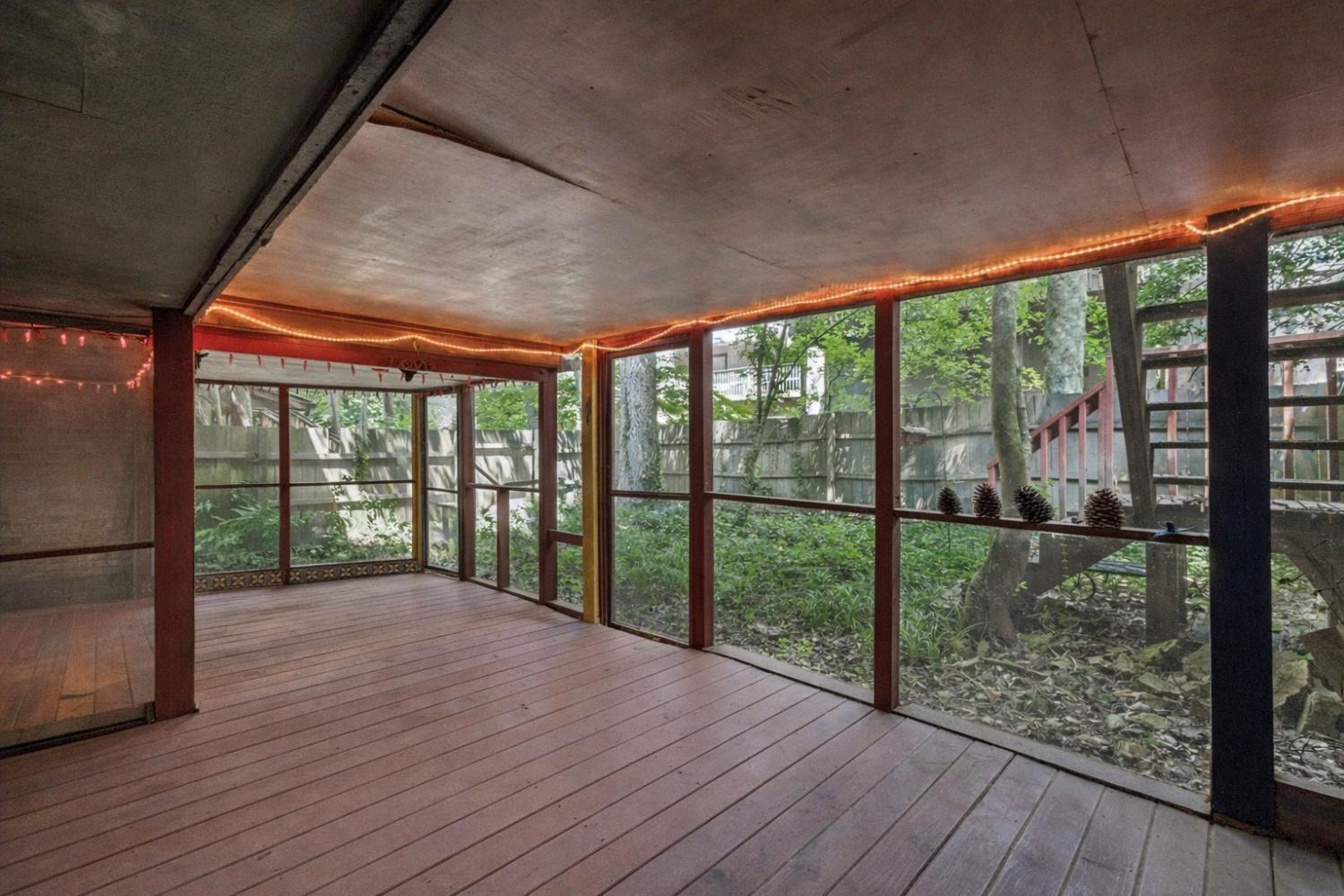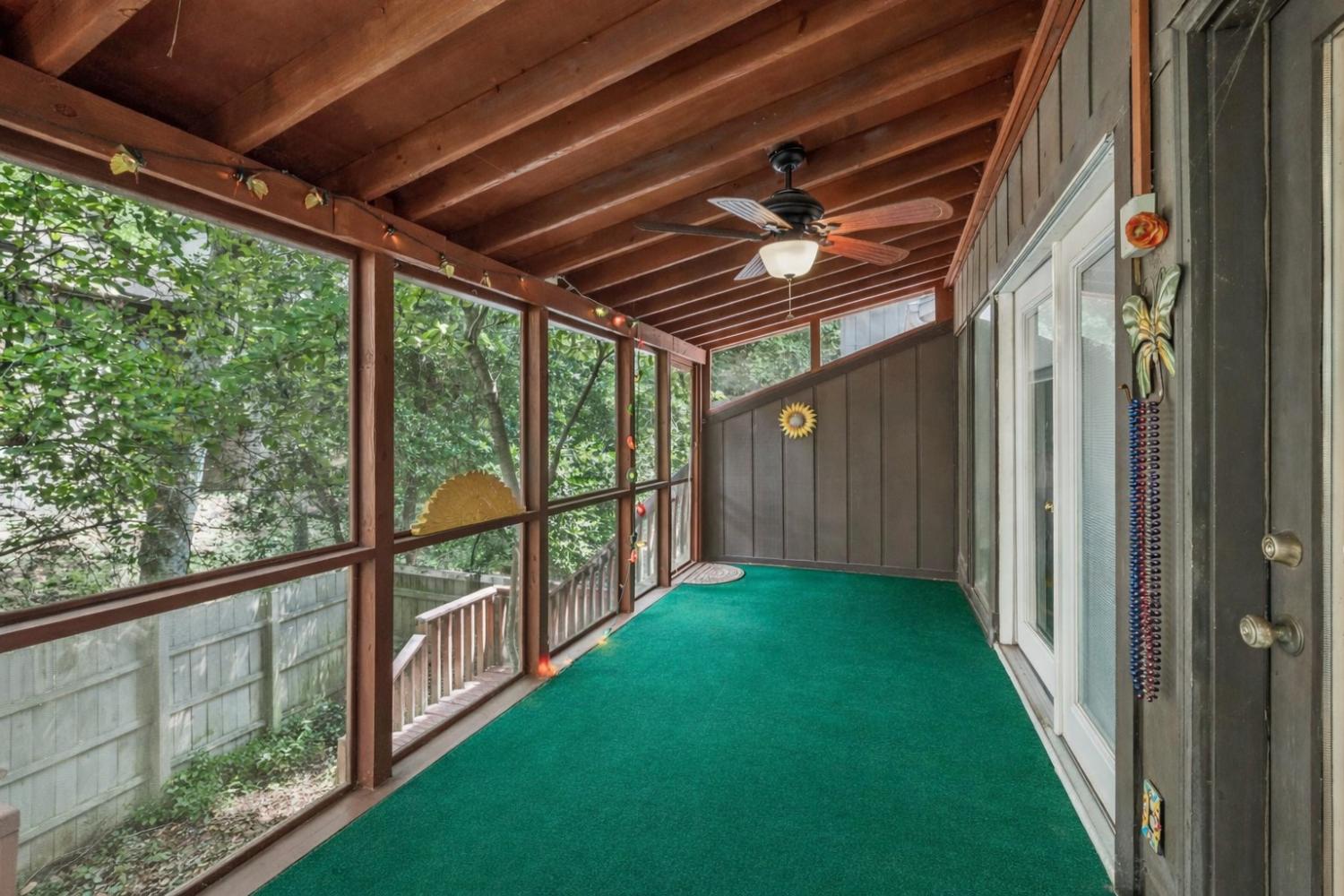 This secluded oasis invites inspiration at every turn. A mid century modern feel thoughtfully designed with an open living plan perfect for entertaining.Vaulted wood tongue and grove ceilings give it an air of of sophistication and a warm and welcome atmosphere. The primary bedrm en-suite is your private retreat with wood burning fireplace - boasting direct access to a serene screened porch - ideal for that morning coffee. Picture two cozy, ground-level bedrms each with cool, easy-care tile floors. One bedrm invites you straight out to a spacious, screened-in-porch - complete with doggy door, opening onto a quaint, fenced garden sanctuary. Delight in a two car garage complete with extra storage cabinets and attic space. Pool, tennis, community rm, walking trails. Scenic views include a flock of wild turkeys and a family of deer.