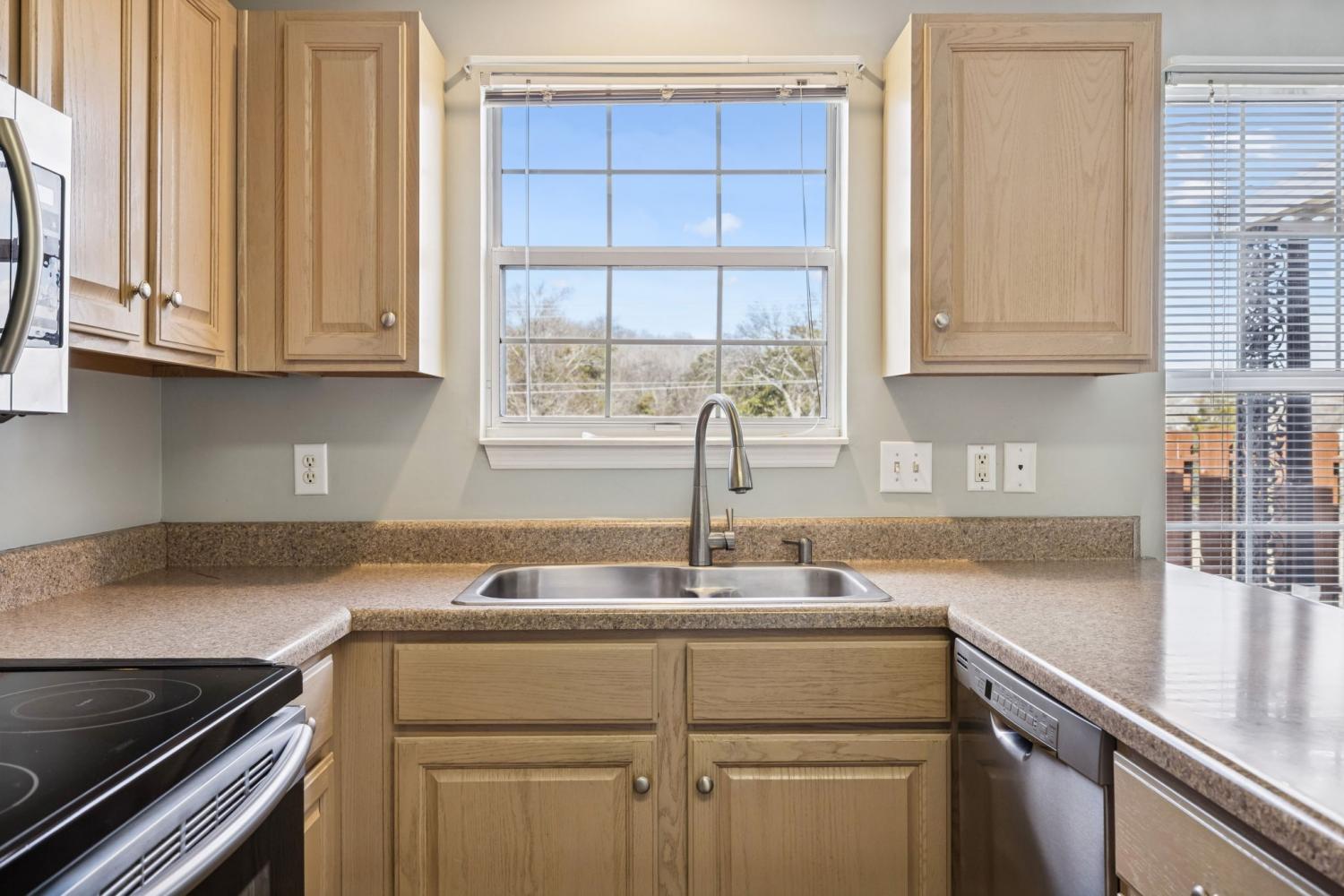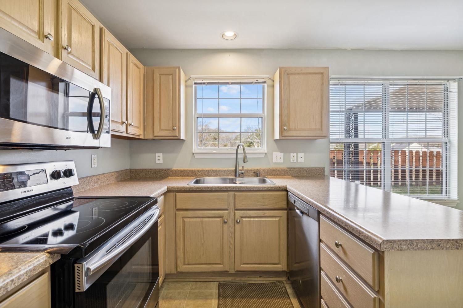Welcome to a move-in-ready gem in the highly coveted Ashley Green- a serene 55+ zero-lot-line home that combines comfort, style, & maintenance-free living. This charming single-story, 2BR/2BA home offers a wonderful flow: a separate dining area that leads into the bright living room anchored by a cozy gas fireplace, perfect for relaxing evenings. The open kitchen features stainless-steel appliances, plenty of counter space, and room for family-style meals. All appliances stay, including the fridge, and washer/dryer! Both bedrooms are generously sized. The primary bath boasts double vanities and a beautifully updated walk-in shower. Throughout the home you'll find new carpet in the bedrooms, tile in the kitchen and hardwood floors in the main living areas, alongside neutral paint that creates a warm, inviting atmosphere. Need extra storage? The one-car garage is deep—ideal for tools or seasonal items. Step outside to your covered back patio, a peaceful spot to unwind, sip your morning coffee, or watch the sunset. Ashley Green is more than just a home — it’s a lifestyle. As part of this welcoming community, you’ll enjoy easy access to the neighborhood pool and clubhouse, without the hassle of yardwork or exterior upkeep — the HOA covers landscape maintenance and exterior chores, giving you a stress-free lifestyle. Location couldn’t be better: you’re within walking distance to Red Caboose Park and the Bellevue Library. Daily convenience is right at your fingertips — Kroger and Publix are just minutes away, and One Bellevue Place, with its shops, restaurants, retail options, a movie theatre, and more, is just down the street. For nature lovers, Warner Parks is only about 10 minutes away and spans more than 3,100 acres. Need access to medical care? St. Thomas West Hospital is just 15 minutes away. This Ashley Green home truly offers a turnkey, low-maintenance lifestyle in a community designed for comfort and convenience. Come see for yourself! Virtual staging in photos.