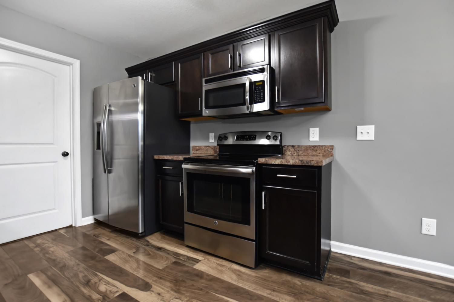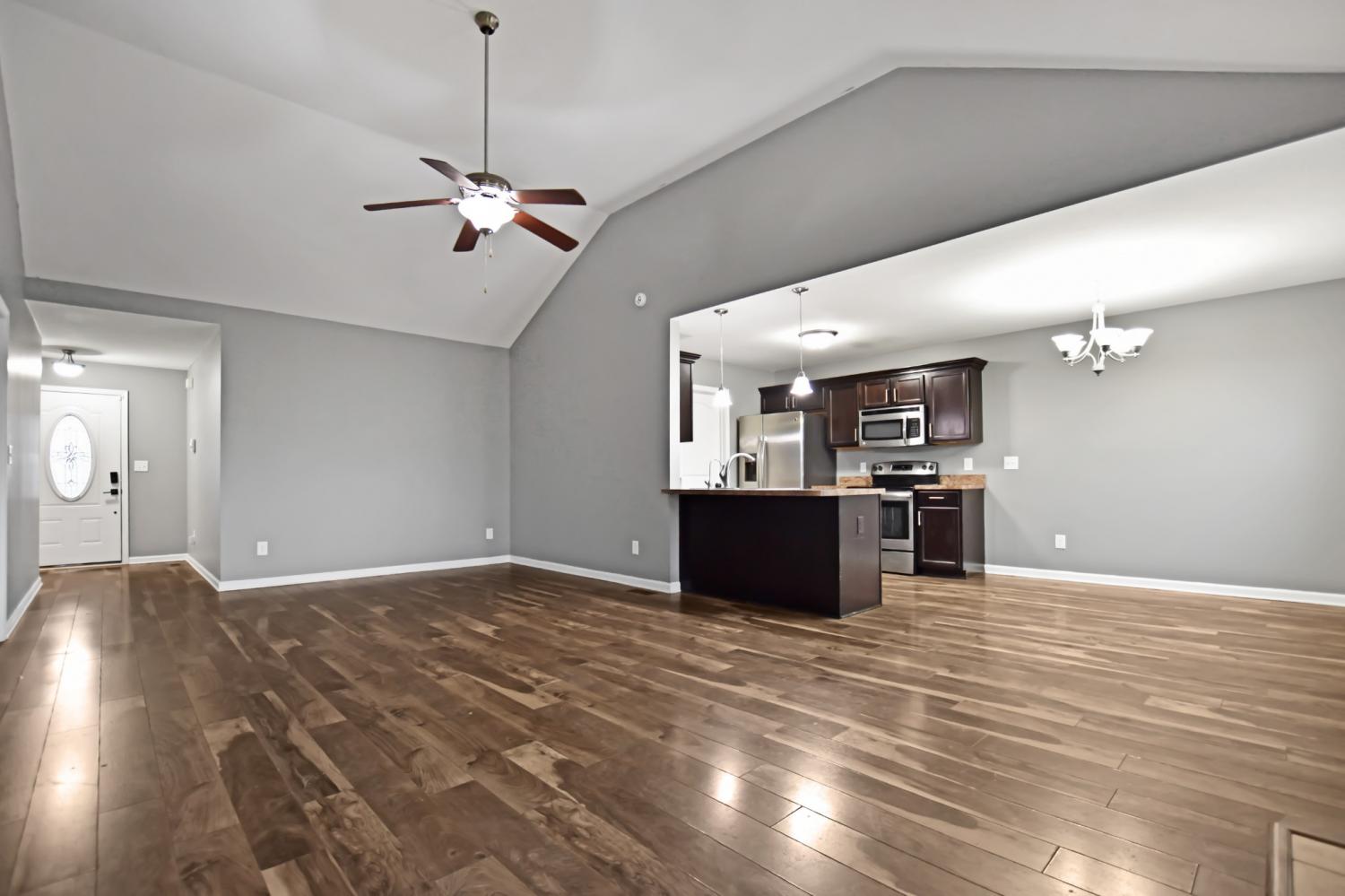 This beautiful three bedroom, two bath ranch home offers a perfect blend of style and convenience, located just minutes from restaurants, shopping, Fort Campbell, and more! Step into a spacious living room featuring vaulted ceilings and a cozy fireplace! The eat in kitchen is equipped with sleek stainless steel appliances and ample space for dining and entertaining! The primary suite is a private retreat, complete with a full bath featuring a double vanity, a soaking tub, and a separate shower! Both guest rooms are generously sized, providing plenty of comfort and versatility. Outside, enjoy a fantastic outdoor space with a deck and a fenced yard, perfect for relaxation or entertaining! Pet rent applicable.