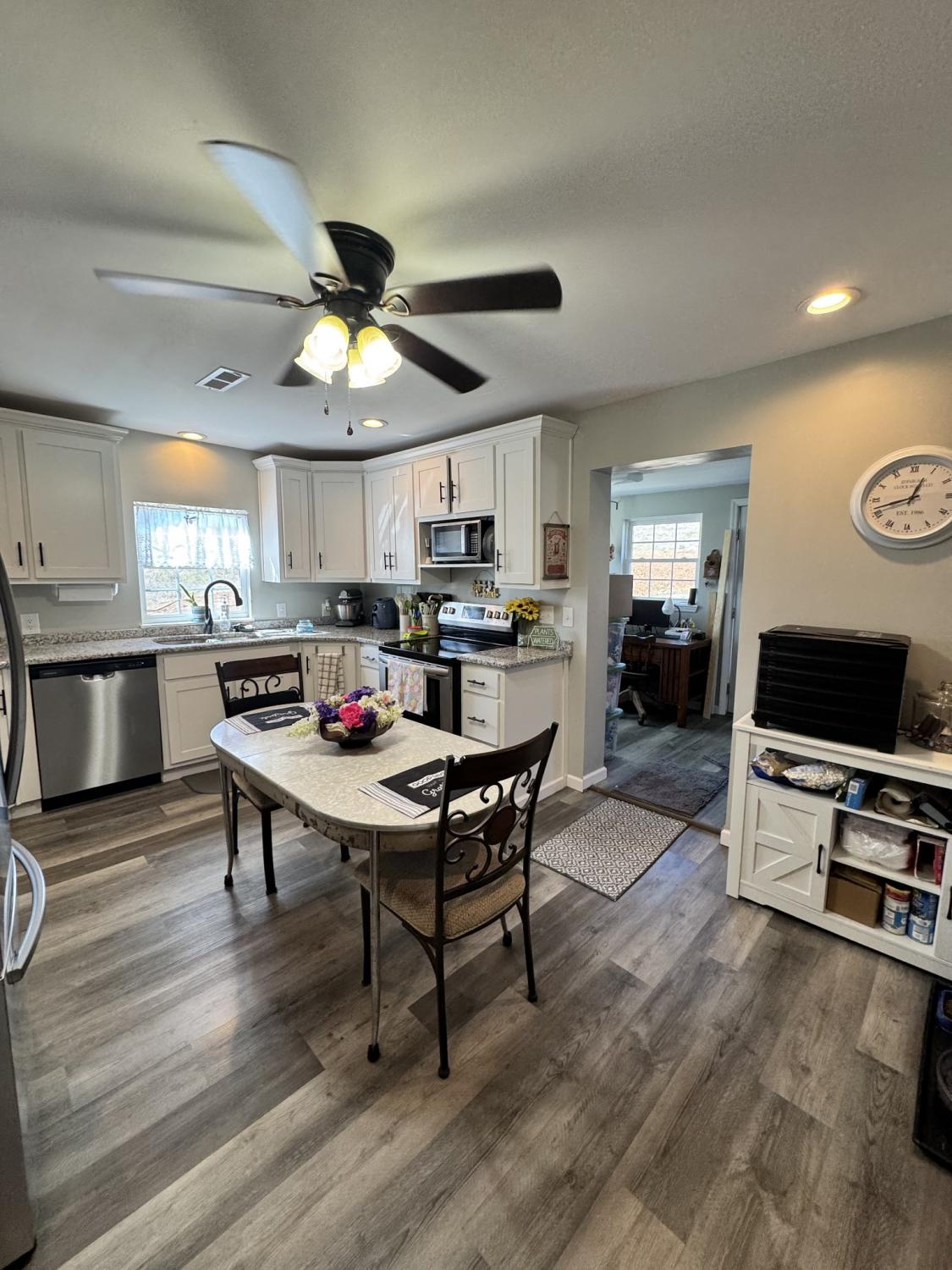Great home out in the country but not far from all the amenities of town. This gem sits on 1.5 acres of flat land with a small creek in front. The home was completely remodeled in 2021 all the way down to the studs. LPV flooring throughout the home, no carpet! Great sized rooms and a huge entry area large enough for a dining table, also has a closet. Bedrooms are large and have lots of closet space. All stainless and granite kitchen. Fabulous sunroom/laundry on rear of home with space for plenty of storage, office or crafts. Also has good little storage shed for lawn mowers and yard tools. Older barn in back corner is in poor condition please use caution when viewing. This is a great quiet community but so convenient. Porch swing does not convey.