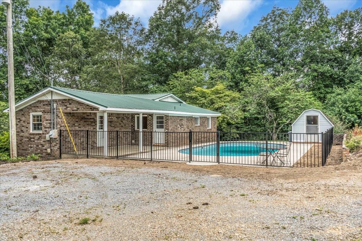 5.35 acres and a brick home with with a inground swimming pool. This is a fantastic opportunity to own a nice split level brick home with character, covered front porch and covered rear patioall located in a great location convenient to Manchester and Tullahoma and just outside Tullahoma City limits with no city taxes. Interior main level has kitchen with a dining space and living area, one of the bedrooms and 2 baths, upper level is a large bedroom with a nice closet and the lower level is a separate den area. This sits on approx 5.35 acres with a great outdoor space with covered patio and inground swimming pool with security fence all the way around it and featuring a small adorable cabin structure currently used as an outbuilding.