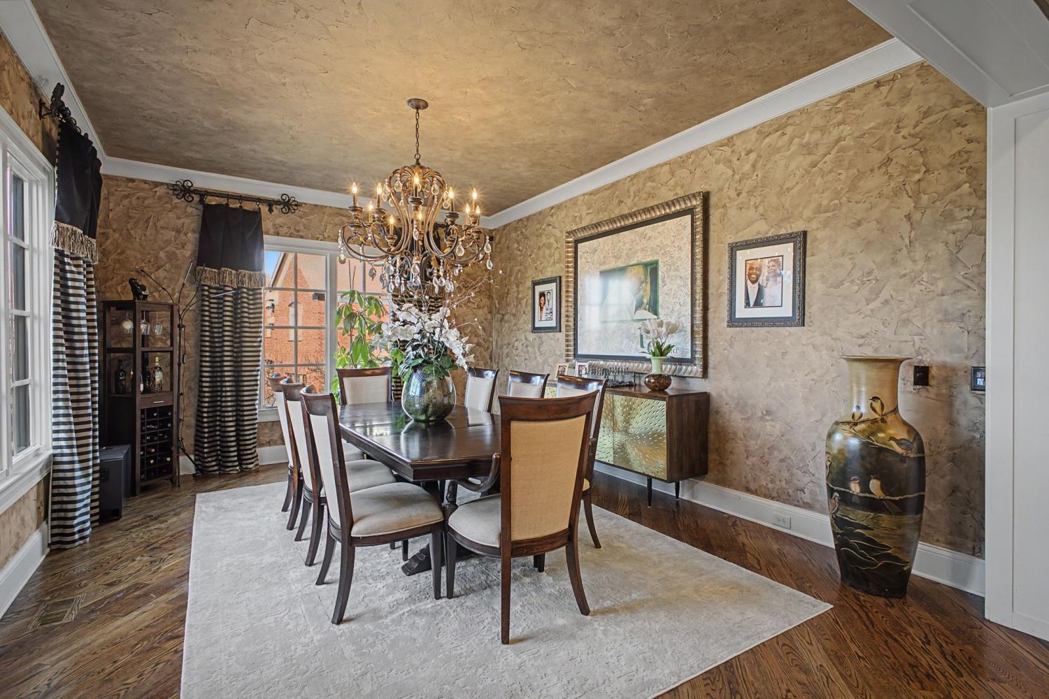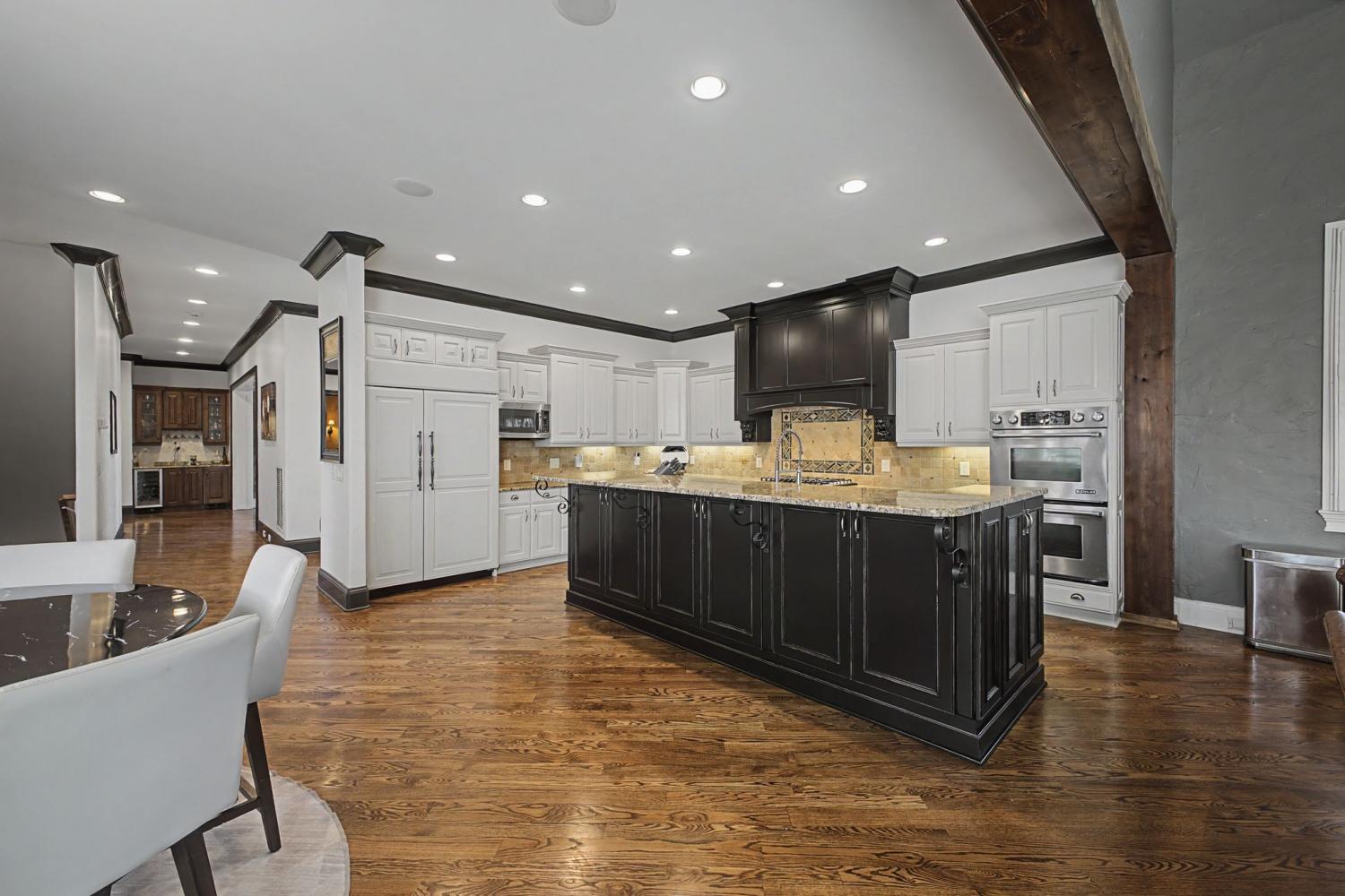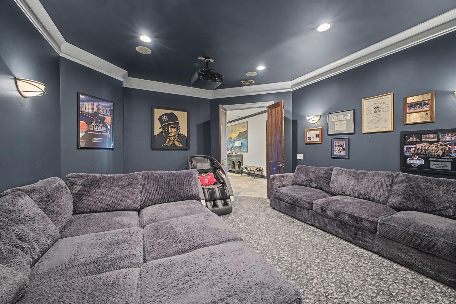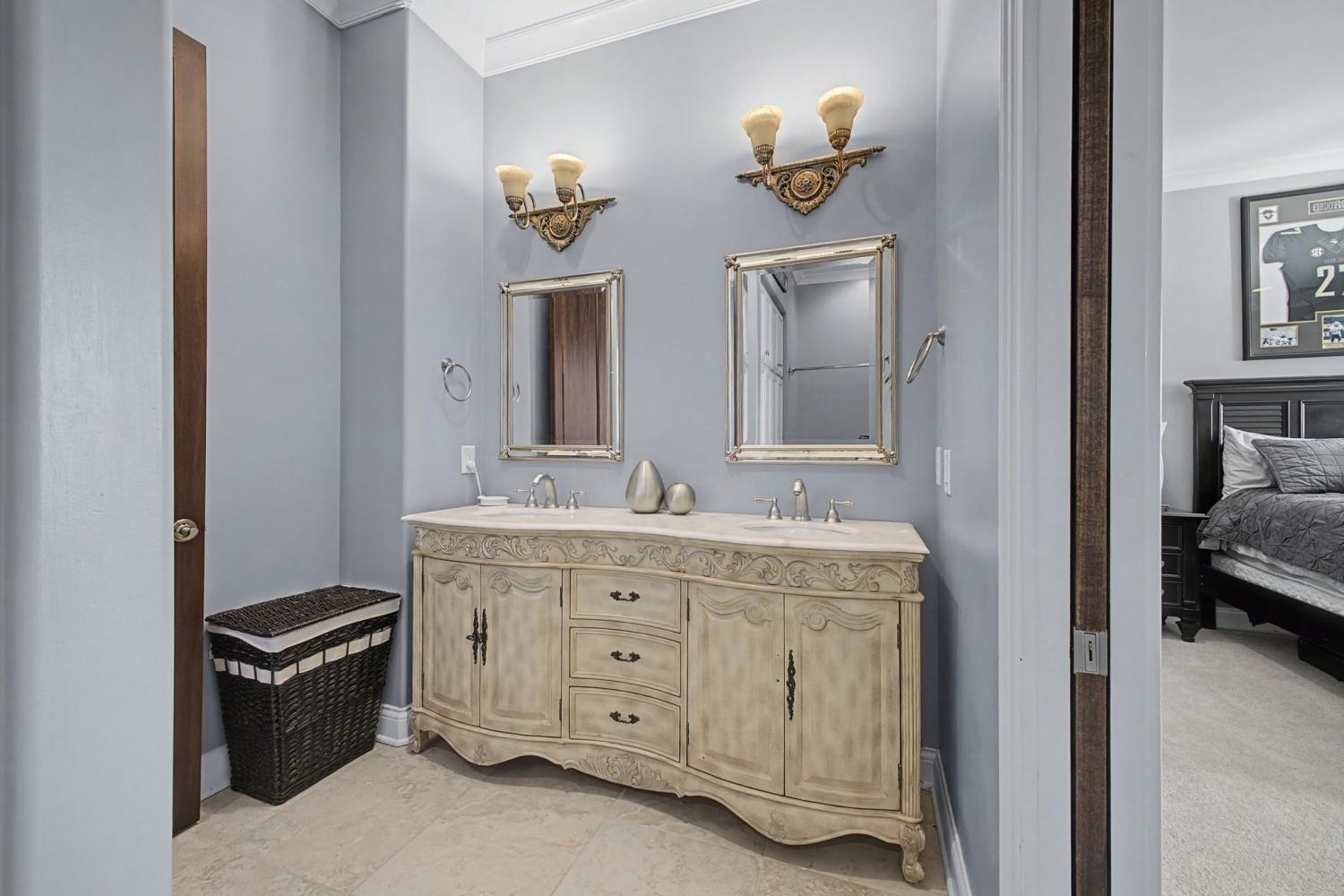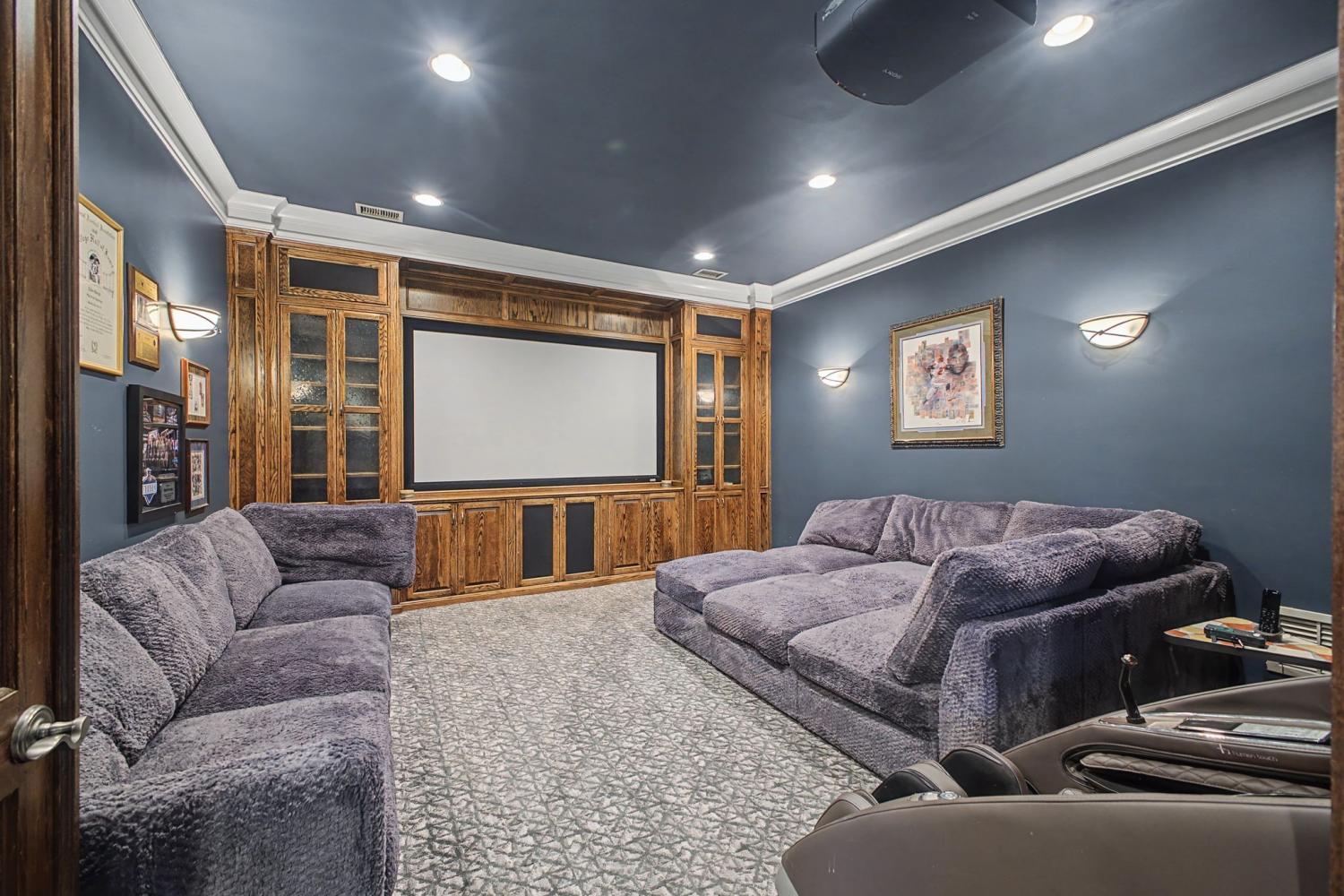 Welcome to the exceptional home you’ve been waiting for—an exquisite European Tudor nestled behind private gates on a quiet Hampton Reserve cul-de-sac. Arrive in style with a grand circular driveway leading to stately double mahogany doors, where timeless stonework, brick, and dual flame lanterns set a sophisticated tone. Step inside to a striking foyer that opens to an elegant two-story formal living area adorned with a chandelier lift and soaring 20-foot ceilings. The gourmet kitchen boasts double ovens, an inviting eat-in bar, and a butler’s pantry—perfect for effortless entertaining. Gather in the spacious hearth room featuring a two-story fireplace and dramatic a-frame ceiling, designed for comfort and connection. Enjoy the convenience of a four-car garage, a dedicated theater room, and a stunning all-wood office with coffered ceilings and built-in bookshelves. Functional luxury continues with laundry rooms on both levels for easy living. The versatile basement offers a large recreation room with slate flooring, a full bar, a workout room with bath, and direct access to the backyard oasis. Outdoors, indulge in a private retreat with a natural stone pool, waterfall, and hot tub—all enveloped by mature trees for ultimate privacy.