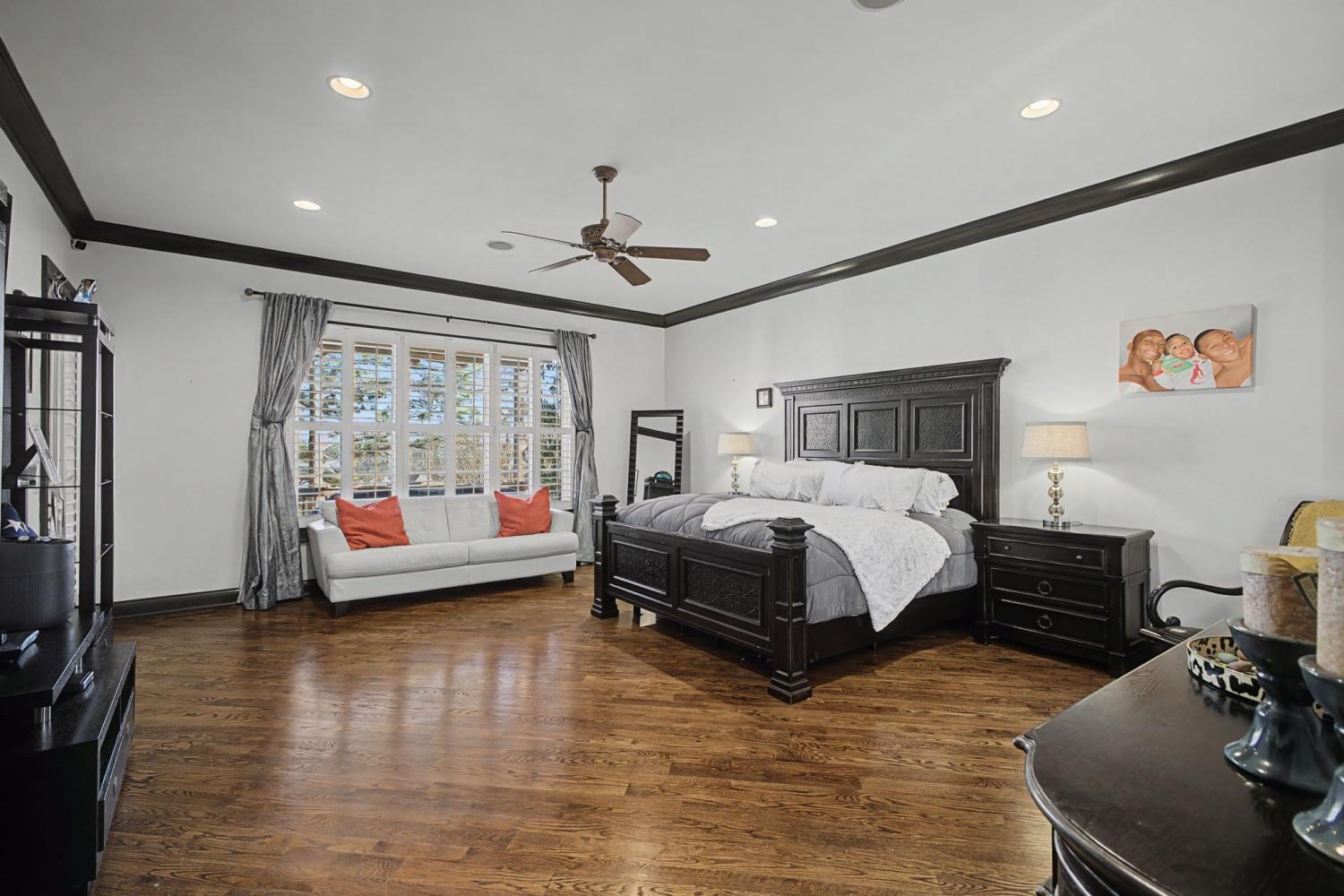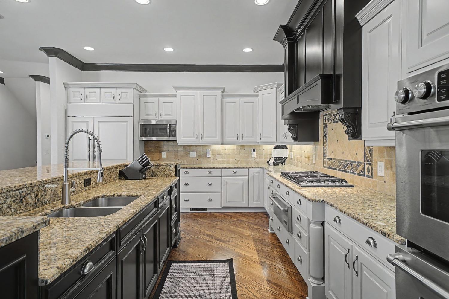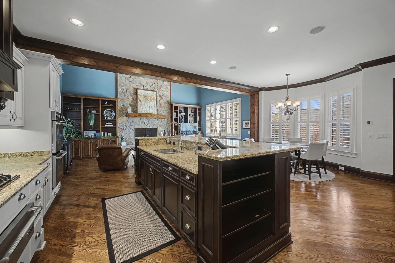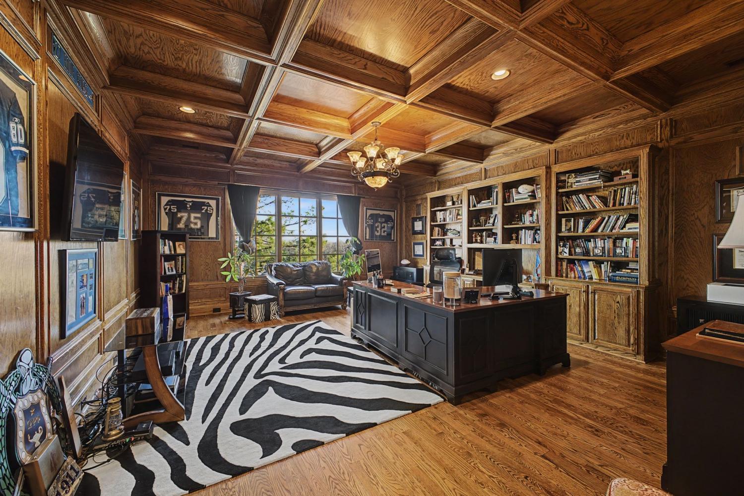 Welcome to the exceptional home you’ve been waiting for—an exquisite European Tudor nestled behind private gates on a quiet Hampton Reserve cul-de-sac. Arrive in style with a grand circular driveway leading to stately double mahogany doors, where timeless stonework, brick, and dual flame lanterns set a sophisticated tone. Step inside to a striking foyer that opens to an elegant two-story formal living area adorned with a chandelier lift and soaring 20-foot ceilings. The gourmet kitchen boasts double ovens, an inviting eat-in bar, and a butler’s pantry—perfect for effortless entertaining. Gather in the spacious hearth room featuring a two-story fireplace and dramatic a-frame ceiling, designed for comfort and connection. Enjoy the convenience of a four-car garage, a dedicated theater room, and a stunning all-wood office with coffered ceilings and built-in bookshelves. Functional luxury continues with laundry rooms on both levels for easy living. The versatile basement offers a large recreation room with slate flooring, a full bar, a workout room with bath, and direct access to the backyard oasis. Outdoors, indulge in a private retreat with a natural stone pool, waterfall, and hot tub—all enveloped by mature trees for ultimate privacy.