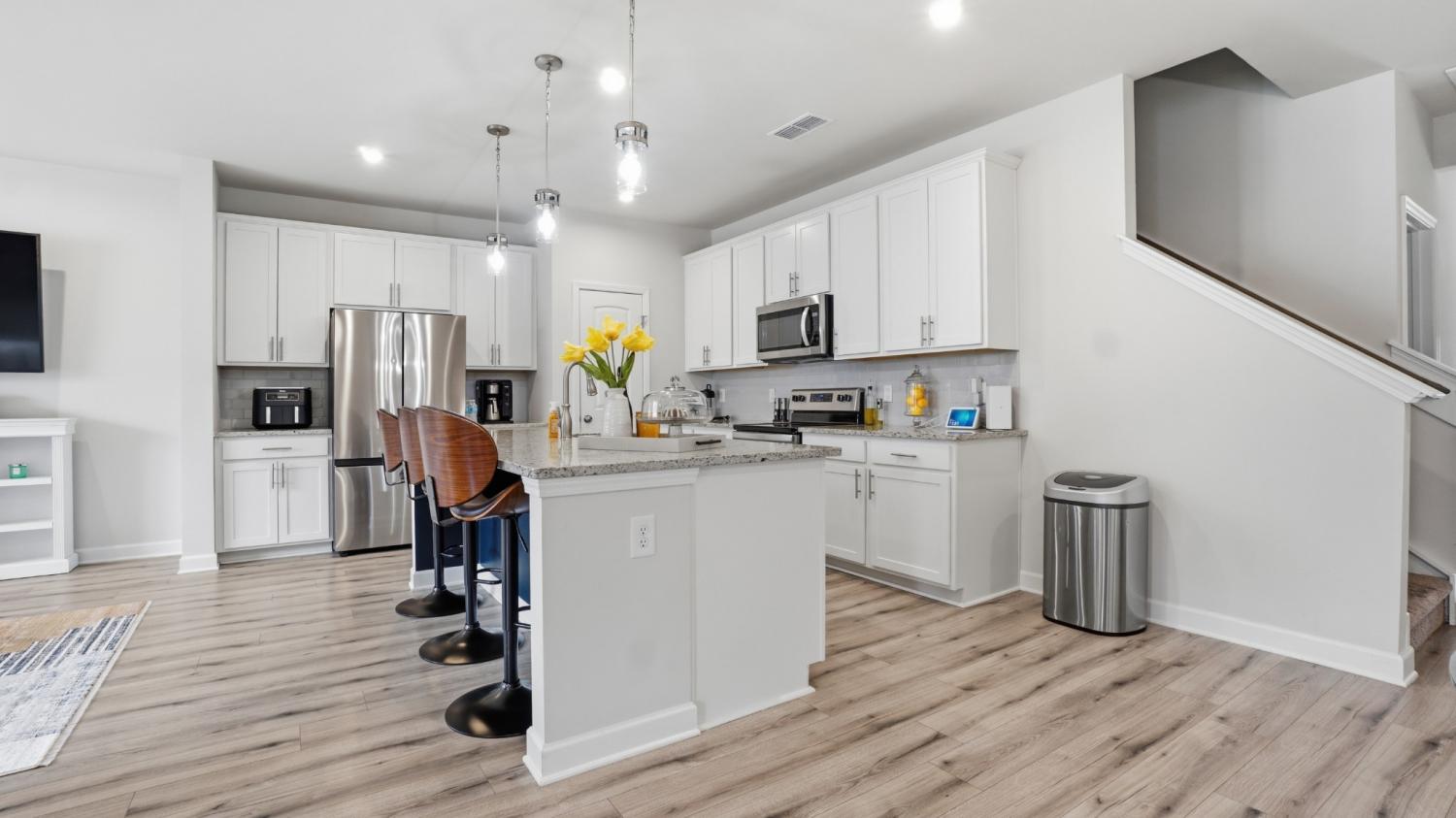 THIS ONE!! End-unit Townhome with primary Suite on the main level in North Murfreesboro. Offering Low-Maintenance Living-No yard work required! Full Brick Exterior with a rear-entry garage that leads to private courtyard. This Immaculately kept Unit offers comfort and style. Upstairs, two additional bedrooms that share a spacious open loft- ideal for a media room, home office or play space. Conveniently located near shopping, dining and everyday essentials. Community also offers Dog Park and Bocce Ball Courts and Playground, Creating spaces for Connection, Recreation and Fun for All!