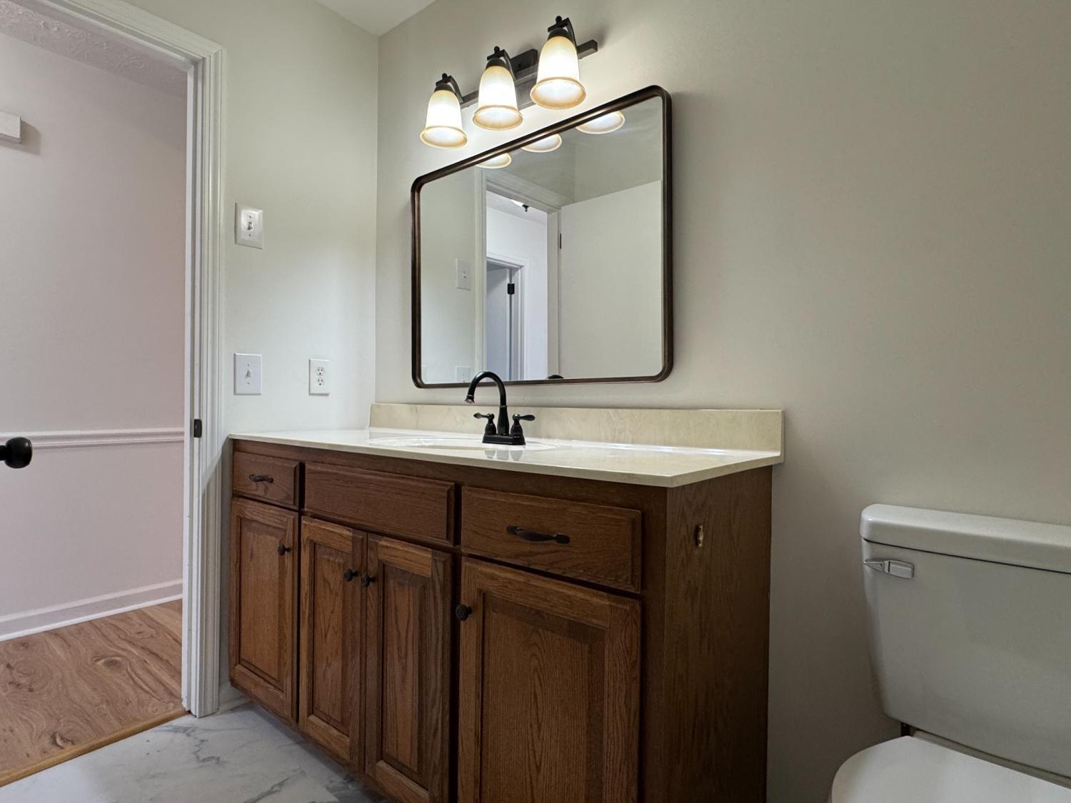 Ranch style house on a large lot with plenty of room. New paint. New flooring. New light fixtures. Upgraded bathrooms. Covered back porch. Separate den and living room. New landscaping. Move-in ready with 4 bedrooms and 2.5 bathrooms.