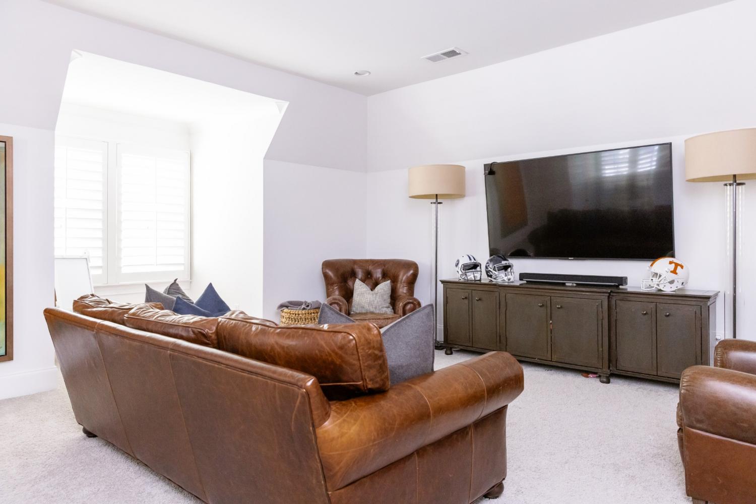 Built by Zurich Homes, this 5-bedroom, 5.5-bath residence offers thoughtful design, quality craftsmanship, and functional living throughout. The main level features a private primary suite with two oversized walk-in closets, a dedicated office (or optional guest bedroom), and seamless flow for everyday living and entertaining. The chef’s kitchen is equipped with double ovens, a gas cooktop, abundant prep space, and connects to a formal dining room, breakfast area, and well-appointed butler’s pantry. A spacious laundry room provides additional cabinetry and workspace. Oversized sliding doors open the main living area to a large screened porch, creating true indoor-outdoor living. Three fireplaces - in the great room, screened porch, and outdoor patio - make the home ideal for year-round gatherings. Upstairs offers three secondary bedrooms and a generous bonus room. Additional highlights include a front-loading three-car garage with epoxy floors, built-in workbench, and ample storage, professional landscape lighting and full irrigation in both front and rear yards, a security camera system covering the front and back of the home, and an August smart lock system for added convenience and peace of mind. A well-designed home offering comfort, storage, and versatility in every space.