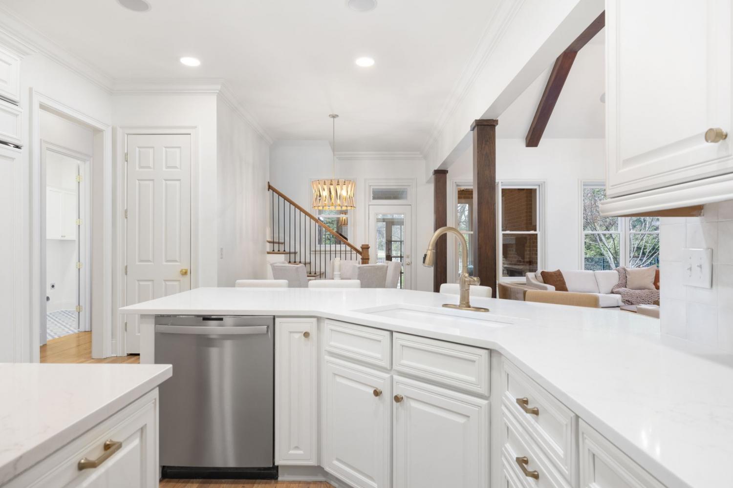 Welcome to your dream home in Westhaven! This beautifully maintained all-brick residence offers a rare blend of privacy and convenience, backing up to lush common space with mature trees and nestled beside a scenic walking trail. Enjoy peaceful mornings on the charming front porch, sunny afternoons on the spacious patio, or sunset views from the upstairs terrace. This home has been meticulously updated with a brand-new roof, refinished hardwood floors, new carpets throughout, freshly painted interior, modern new lighting fixtures, stunning kitchen countertops and backsplash, updated hardware, elegant plantation shutters, and a fully renovated primary bathroom that feels like a spa retreat. The first-floor primary suite offers main-level living convenience, while two versatile bonus rooms upstairs provide flexibility for a home office, gym, guest suite, or playroom. The vaulted ceiling in the living room and wood-burning stone fireplace create a warm, inviting atmosphere that flows seamlessly into a cozy sunroom with French doors opening to the backyard—perfect for indoor/outdoor entertaining. The large, fenced-in yard is ideal for children, pets, or simply relaxing in your private oasis surrounded by nature. Additional highlights include an encapsulated crawl space for energy efficiency, new tankless water heater in 2024, main level HVAC unit replaced in 2021, secondary HVAC's replaced in 2020 and 2021. The home is walking distance to school and surrounded by green space on two sides. This is truly one of Westhaven's most special settings—schedule your showing today!