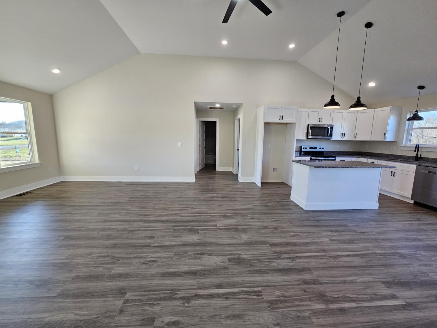This spacious 1,664 sqft NEW CONSTRUCTION offers three bedrooms and two full bathrooms on a level 1.01 acre lot. The open floor plan features a split‑bedroom design, creating both flow and privacy throughout the home. The kitchen stands out with stainless steel appliances, a large island, granite countertops, and custom white cabinetry, all opening directly into an inviting living area with soaring ceilings and recessed lighting. The primary suite includes a huge walk‑in closet and a full bath with a tile shower, while the additional bedrooms are well‑sized and conveniently located near the second full bathroom. The setting offers a peaceful, relaxed atmosphere, making the covered concrete front porch and large back deck ideal for entertaining or relaxing. With a big, level yard, there’s plenty of room for kids, pets, or outdoor activities. All of this comes in a highly desirable location - just 6 minutes to I‑40, 20 minutes to Lebanon Square, and 40 minutes to BNA, providing the perfect balance of country living and easy access to town.