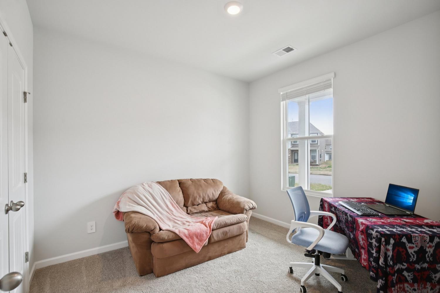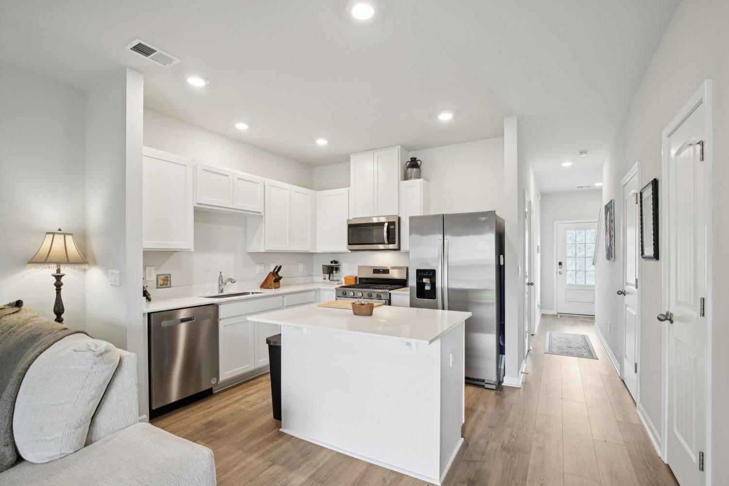 Seller is open to paying buyer closing costs depending on other offer terms. This 3-bedroom 2.5-bath townhome features one bedroom on the main level that could be used as an office. The laundry closet is upstairs with the primary bedroom and 2nd bedroom. The primary bedroom has an in-suite bath and dual closets. The primary bath features a double sink vanity, linen closet, private toilet and large shower. The living room and kitchen area has an open concept. The kitchen features an island, quartz counter tops, single bowl undermount sink and stainless appliances including a gas range. There is a covered patio with outside storage as well as a covered full front porch. Woodbridge Glen is in-between Mt. Juliet and Lebanon and only 1 mile from I-40 making the location very convenient for commute. The neighborhood features a beautiful pool, 2 dog parks, playground and a trail to the natural duck pond and pavilion. Schedule a tour today. Save and share the listing to anyone you know needing an affordable home in the area.