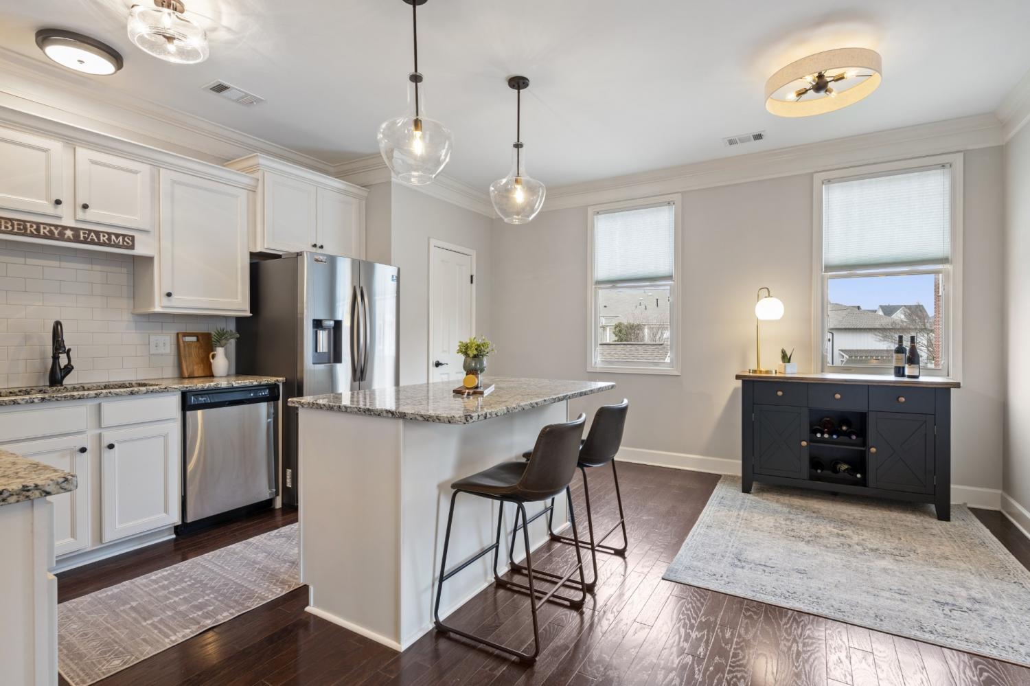 Welcome to one of the most desirable townhomes in highly sought-after Berry Farms in Franklin. This stunning 3-story end unit offers 4 spacious bedrooms, 3.5 baths, and hardwood floors throughout — combining luxury finishes with everyday functionality. Enjoy true indoor-outdoor living with two wrap-around outdoor spaces — a covered porch perfect for morning coffee and a private balcony ideal for evening entertaining. Parking is exceptional and nearly impossible to find at this level: an extended driveway that fits 4 cars plus a 2-car garage. And the lifestyle? It’s hard to beat. Walk to shopping, dining, coffee, fitness, and everyday essentials just steps from your door. Residents also enjoy access to resort-style pools, a clubhouse, scenic sidewalks, and playgrounds. This is low-maintenance living with high-end appeal — in one of Franklin’s most connected and convenient communities. Walk to Ludlow and Prime, Titos, Soulshine Pizza, Publix, walk-in clinic, med spas, a dry bar, animal hospital, and pet grooming — all just steps from your door. And just across the street from the neighborhood is the brand new In-N-Out!