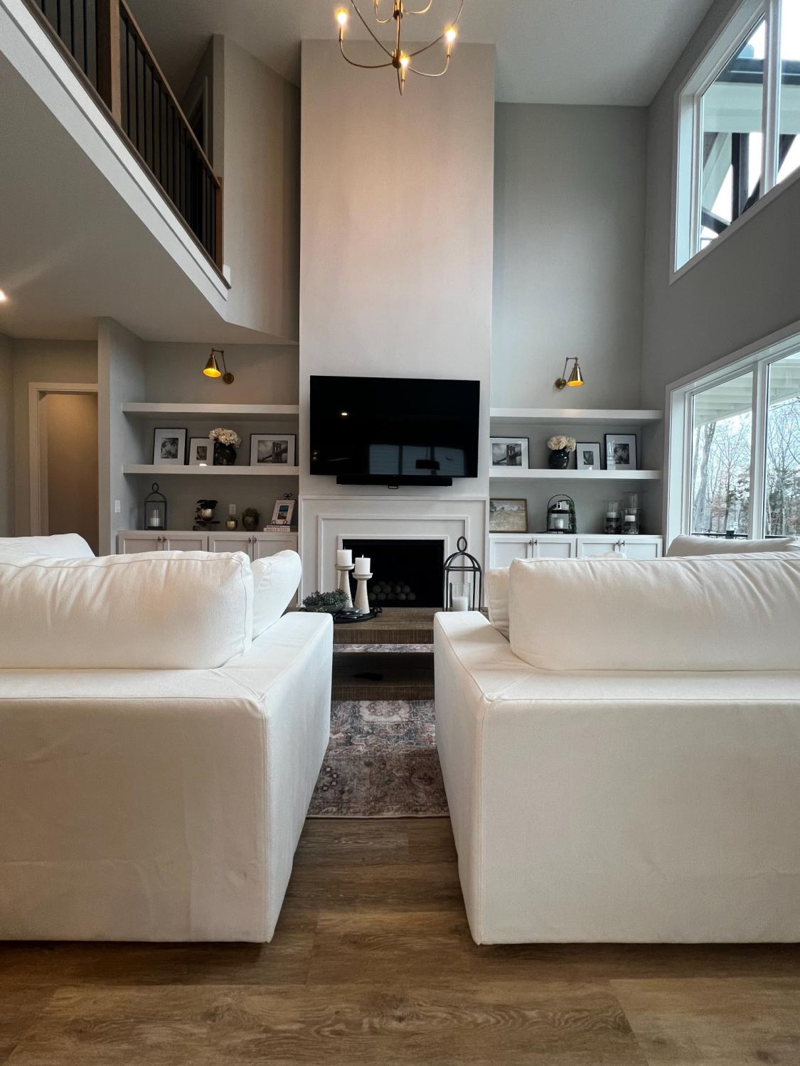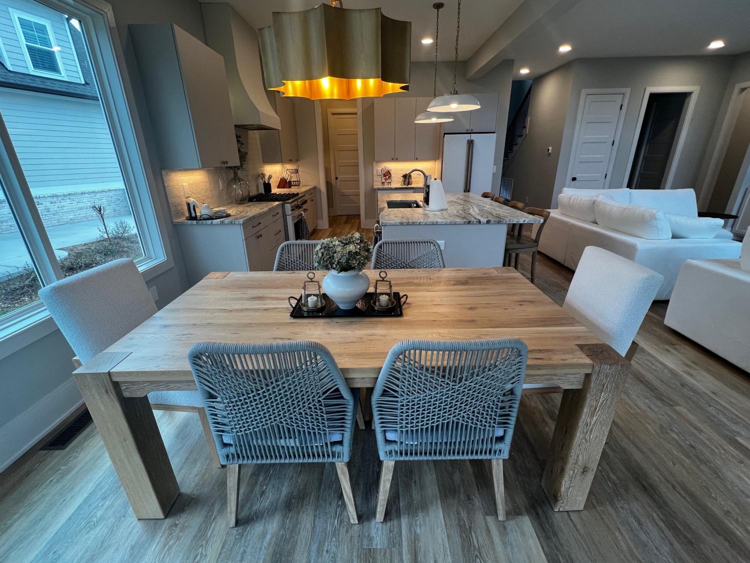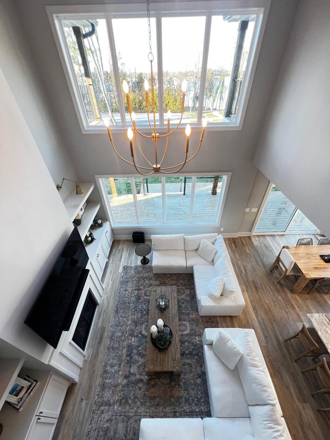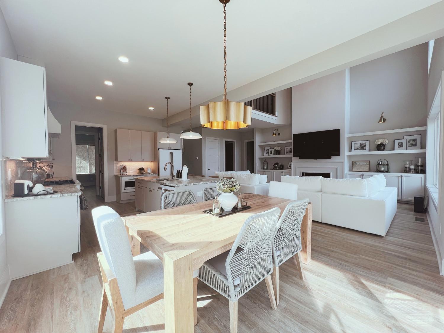 Stunning Lake Views! Experience luxury lake living in this beautifully designed home located on highly sought-after Hammock Drive in the gated community of Twin Creeks Village & Resort. The dramatic living room features soaring two-story ceilings, expansive windows showcasing gorgeous lake views, and a striking floor-to-ceiling gas fireplace with custom built-ins and designer sconces. The main-level primary suite offers a spa-inspired en-suite bath complete with a soaking tub and a separate shower with rainhead. Upstairs, a secondary suite includes its own soaking tub and large shower, while Bedrooms 3 and 4 share a convenient Jack-and-Jill bath. A HUGE bonus room with a full hallway bath provides flexible space for guests, recreation, or media. The chef’s kitchen is an entertainer’s dream, featuring granite or quartz countertops, pantry, coffee bar/wet bar area, plaster hood, and CAFE appliances including the refrigerator. Additional upgrades include tile flooring in the laundry room and designer finishes throughout. The versatile flex room with custom millwork can serve as a dining room, office, or sitting area. Whether you’re seeking the ultimate entertainer’s lake house or a private retreat for relaxation, this home offers it all. Furniture is negotiable. The 6 seat golf cart by Advanced EV remains with the house for you to enjoy. Twin Creeks Village & Resort amenities include three community pools, and Twin Creeks Marina—located just behind the neighborhood—offers boat slips for easy lake access. Tour the lake life today!