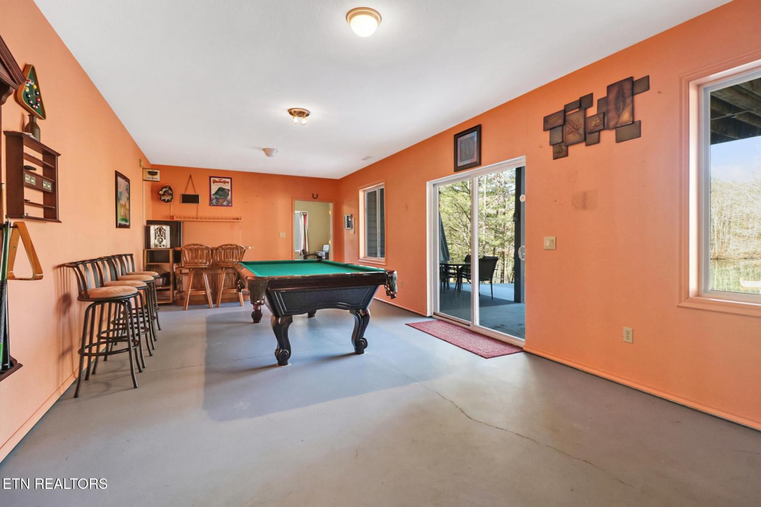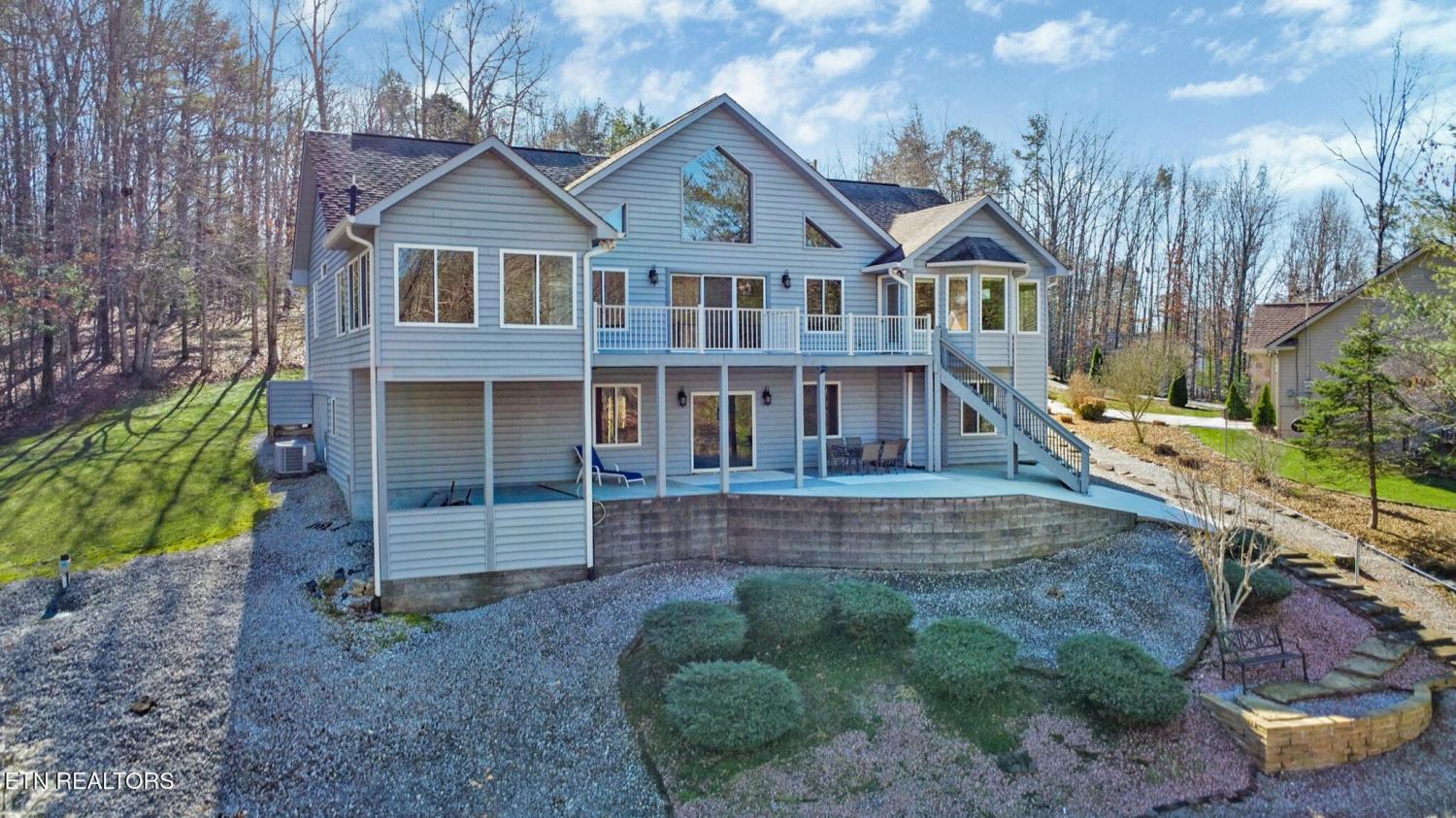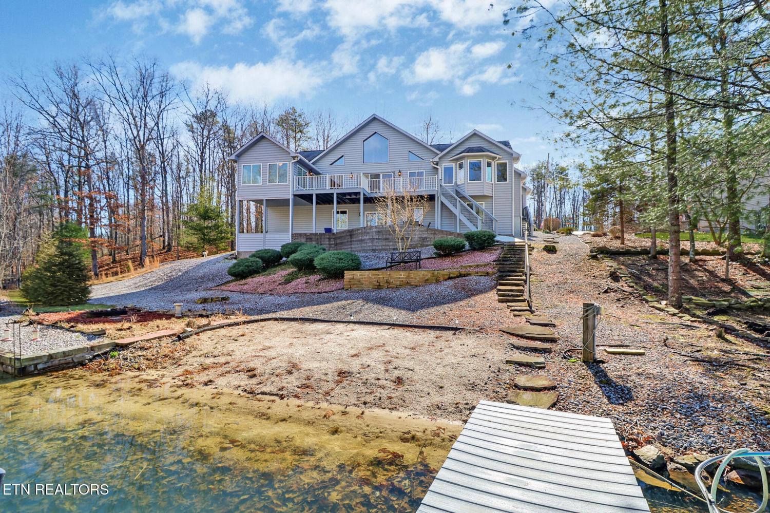 Discover one of Fairfield Glade's best-kept secrets on the quiet, serene banks of Lake Kirkstone. This lovely home was inspired by the rustic elegance of a Southern Spanish Villa. As you enter, high ceilings and a wall of windows flood the home with natural light while offering panoramic lake views. The open floorplan flows easily between great room, dining room and library - perfect for hosting or a quiet afternoon with a good book. The kitchen features gorgeous granite countertops, a large island and breakfast bar. The 4-season sunroom is likely to be your favorite ''room with a view'' with windows on 3 sides and a cozy freestanding gas stove for chilly evenings. There are two bedrooms on the main level. Your sanctuary awaits as you wake up to lake views in the spacious master suite, with a spa-like jetted bath, tile shower, twin sinks and linen closet. The second bedroom is tucked away on the opposite side of the home offering guests privacy. Step out onto the newer Trex deck from the master bedroom, great room or the sunroom. The lower level is built for fun and features a bar and pool table, bonus room and bath. There is a access to the outside patio with stone steps down to the dock and lake. Unlike many lakes, Lake Kirkstone's deep, oxygen-rich waters not only support Bass, Perch and Catfish but also support Rainbow Trout and Walleye - a Fisherman's paradise! HVAC is 8 years old in July; Septic pump was replaced 4 months ago. Public water is at the street.