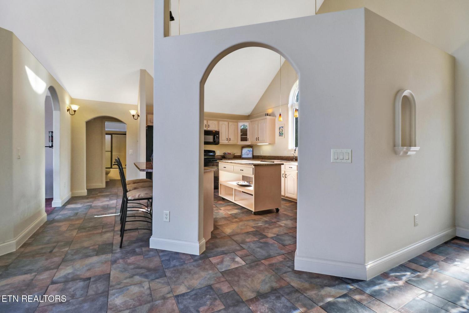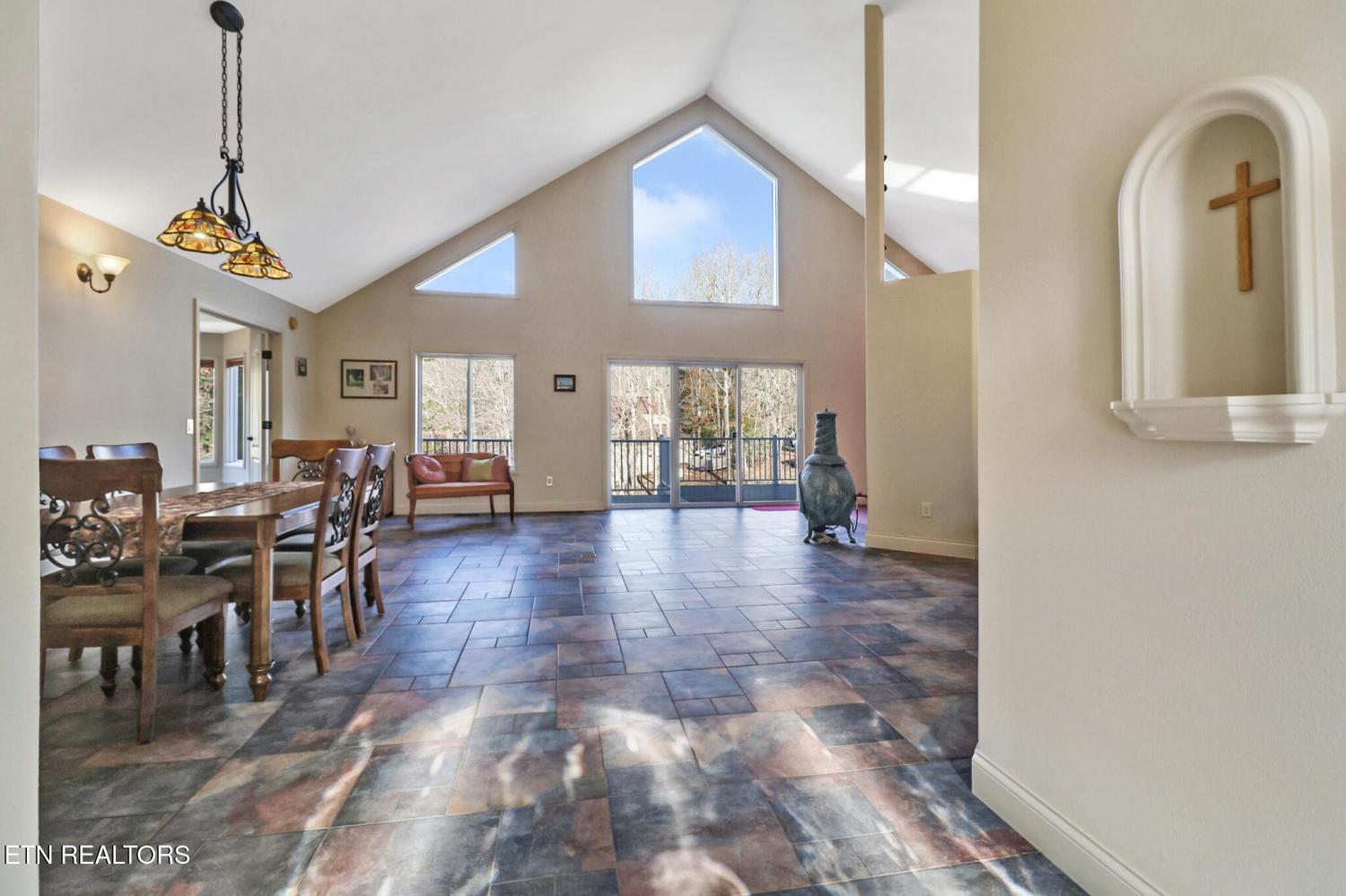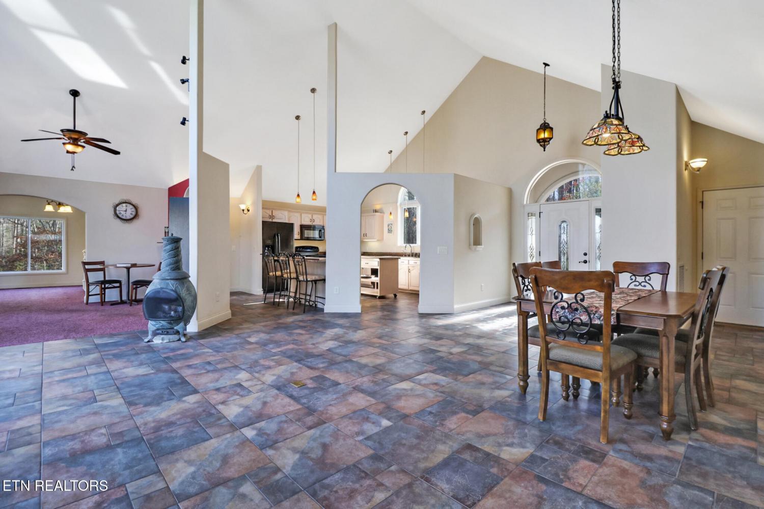 Discover one of Fairfield Glade's best-kept secrets on the quiet, serene banks of Lake Kirkstone. This lovely home was inspired by the rustic elegance of a Southern Spanish Villa. As you enter, high ceilings and a wall of windows flood the home with natural light while offering panoramic lake views. The open floorplan flows easily between great room, dining room and library - perfect for hosting or a quiet afternoon with a good book. The kitchen features gorgeous granite countertops, a large island and breakfast bar. The 4-season sunroom is likely to be your favorite ''room with a view'' with windows on 3 sides and a cozy freestanding gas stove for chilly evenings. There are two bedrooms on the main level. Your sanctuary awaits as you wake up to lake views in the spacious master suite, with a spa-like jetted bath, tile shower, twin sinks and linen closet. The second bedroom is tucked away on the opposite side of the home offering guests privacy. Step out onto the newer Trex deck from the master bedroom, great room or the sunroom. The lower level is built for fun and features a bar and pool table, bonus room and bath. There is a access to the outside patio with stone steps down to the dock and lake. Unlike many lakes, Lake Kirkstone's deep, oxygen-rich waters not only support Bass, Perch and Catfish but also support Rainbow Trout and Walleye - a Fisherman's paradise! HVAC is 8 years old in July; Septic pump was replaced 4 months ago. Public water is at the street.