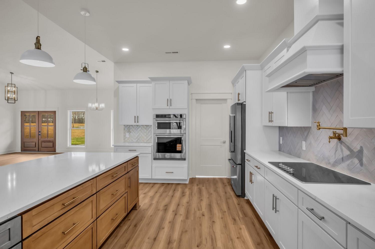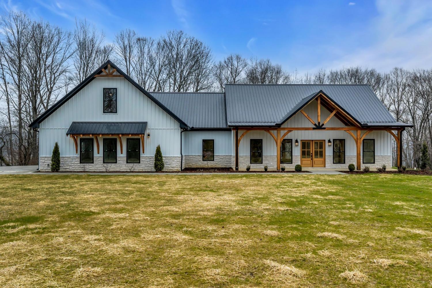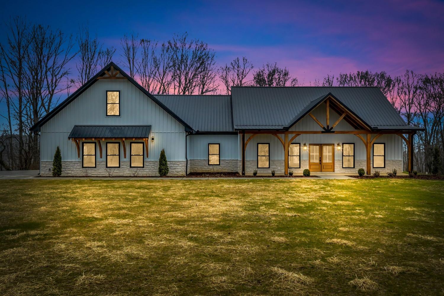 Discover luxury country living in this brand-new custom-built 4 bedroom, 2.5 bath home perfectly positioned on 11 peaceful acres. From the moment you pull up, this stunning modern farmhouse makes an impression with its striking board-and-batten exterior, stone accents, metal roof, and gorgeous timber-framed front porch. Step inside to an open, airy floor plan filled with natural light and premium finishes. The gourmet kitchen is truly the heart of the home—featuring custom cabinetry, an oversized island with rich wood accents, quartz countertops, a pot filler, stainless appliances, and designer lighting. The wide-open layout flows effortlessly into the living and dining spaces, creating an ideal setup for both everyday living and entertaining. The home offers four bedrooms, including a private primary suite, along with 2.5 beautifully finished bathrooms. High ceilings, warm wood flooring, and detailed craftsmanship are featured throughout. Outside, the property provides 11 acres of open space and wooded backdrop—perfect for privacy, recreation, and relaxing. Enjoy peaceful mornings on the covered front porch and plenty of room to create your ideal outdoor living environment. If you’ve been looking for a new custom home with upscale finishes, land, and room to breathe, this one checks every box.