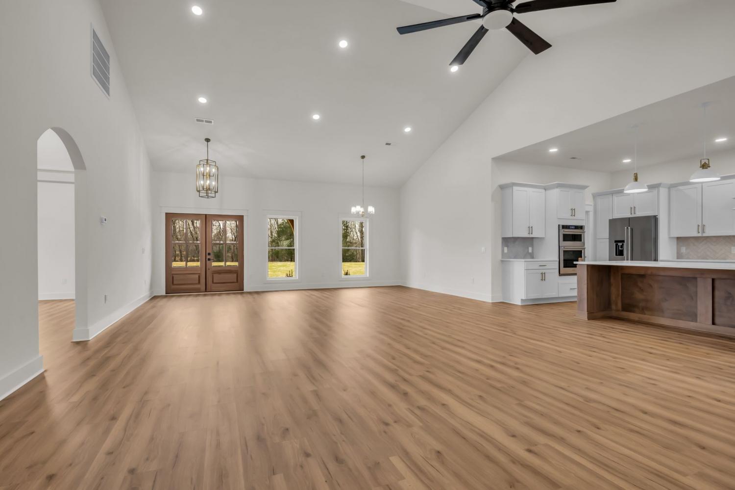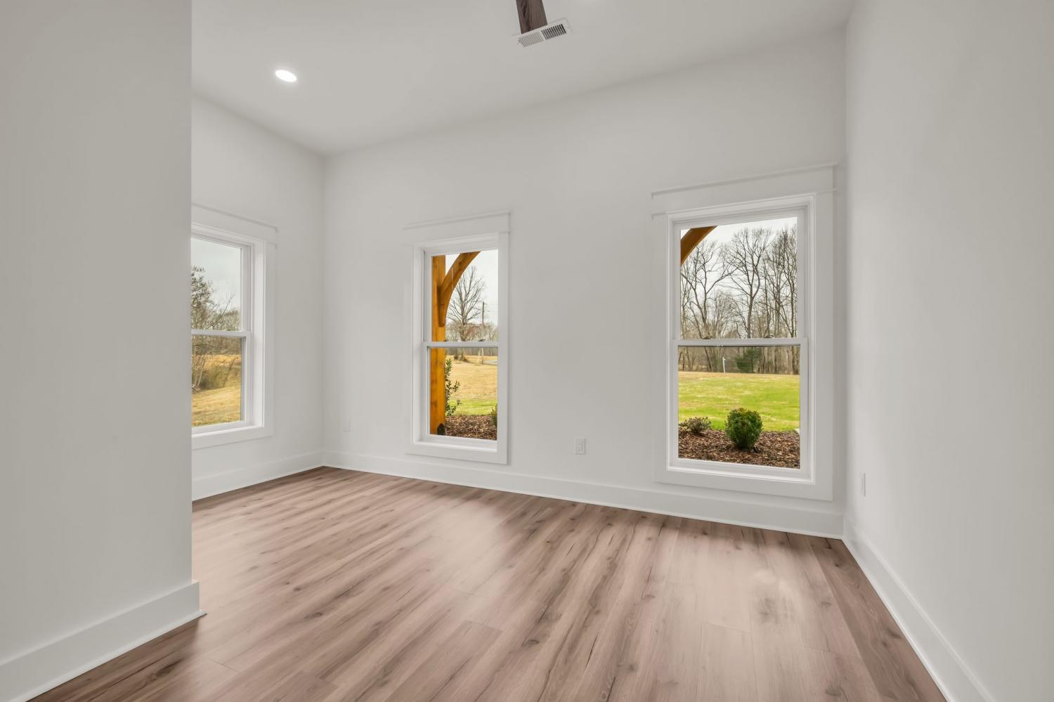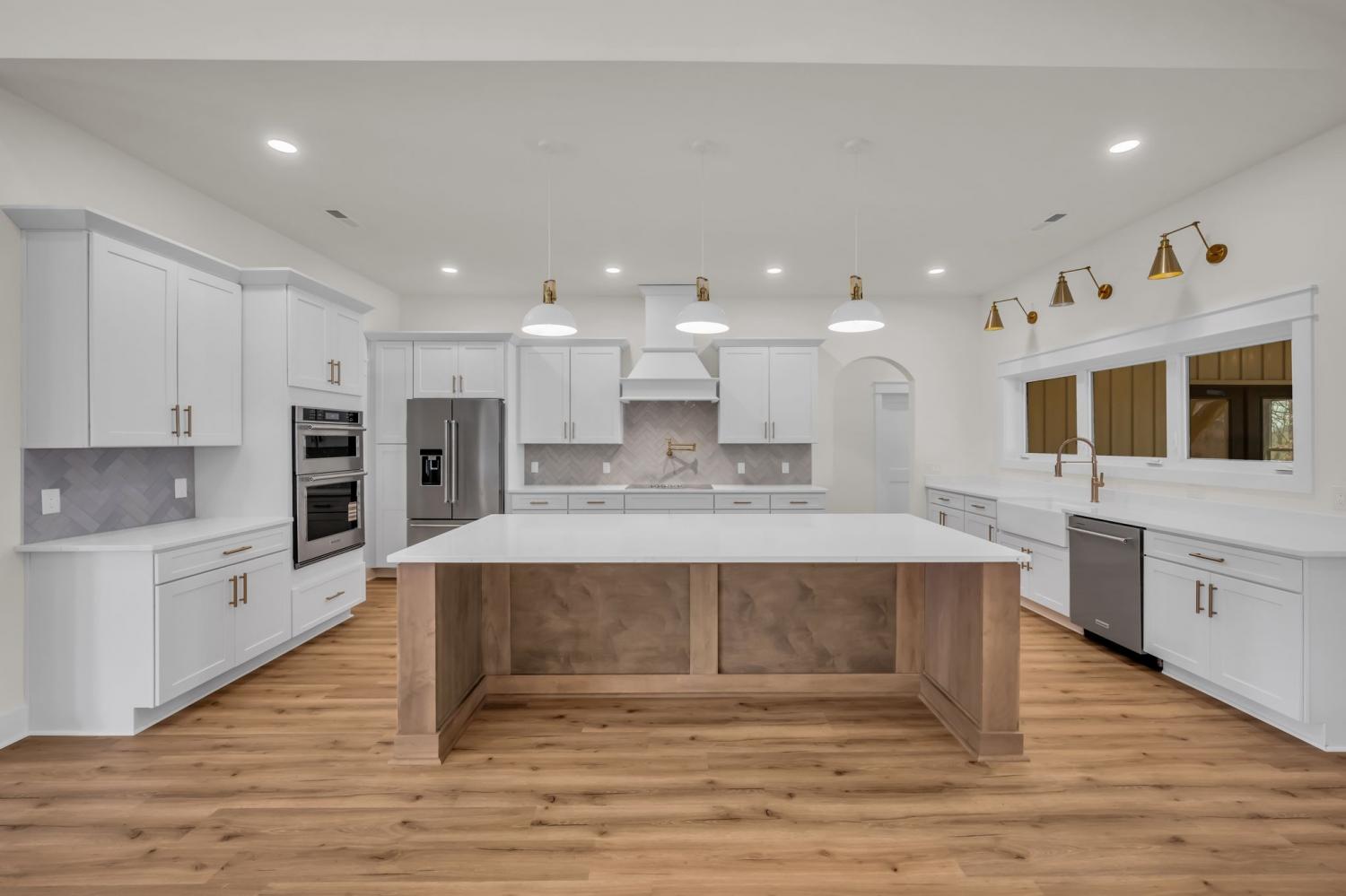 Discover luxury country living in this brand-new custom-built 4 bedroom, 2.5 bath home perfectly positioned on 11 peaceful acres. From the moment you pull up, this stunning modern farmhouse makes an impression with its striking board-and-batten exterior, stone accents, metal roof, and gorgeous timber-framed front porch. Step inside to an open, airy floor plan filled with natural light and premium finishes. The gourmet kitchen is truly the heart of the home—featuring custom cabinetry, an oversized island with rich wood accents, quartz countertops, a pot filler, stainless appliances, and designer lighting. The wide-open layout flows effortlessly into the living and dining spaces, creating an ideal setup for both everyday living and entertaining. The home offers four bedrooms, including a private primary suite, along with 2.5 beautifully finished bathrooms. High ceilings, warm wood flooring, and detailed craftsmanship are featured throughout. Outside, the property provides 11 acres of open space and wooded backdrop—perfect for privacy, recreation, and relaxing. Enjoy peaceful mornings on the covered front porch and plenty of room to create your ideal outdoor living environment. If you’ve been looking for a new custom home with upscale finishes, land, and room to breathe, this one checks every box.
