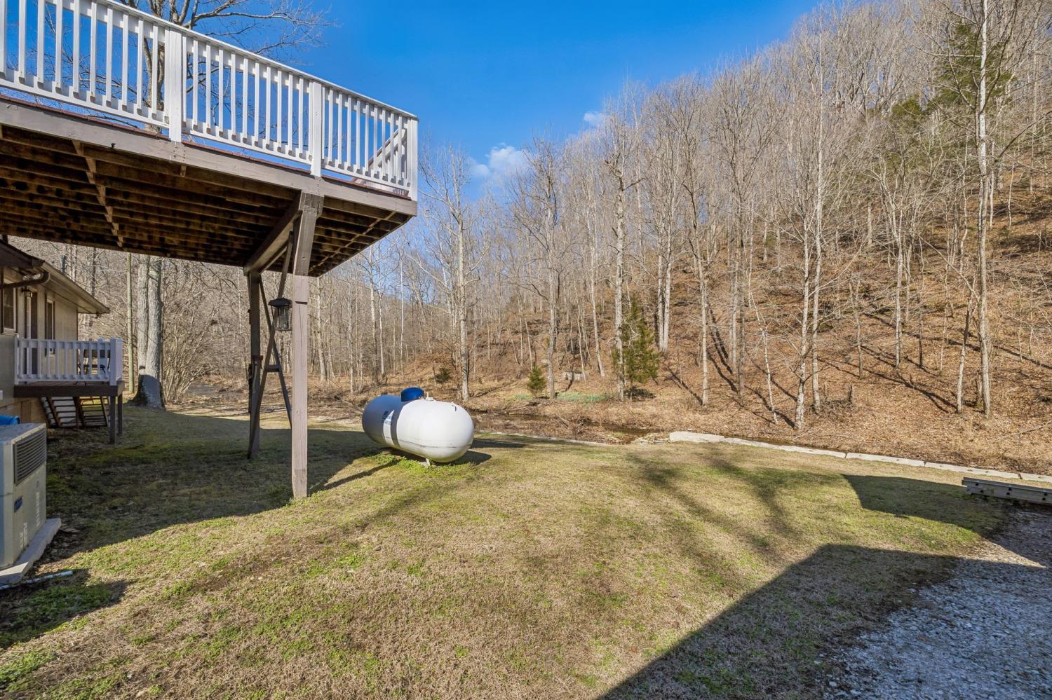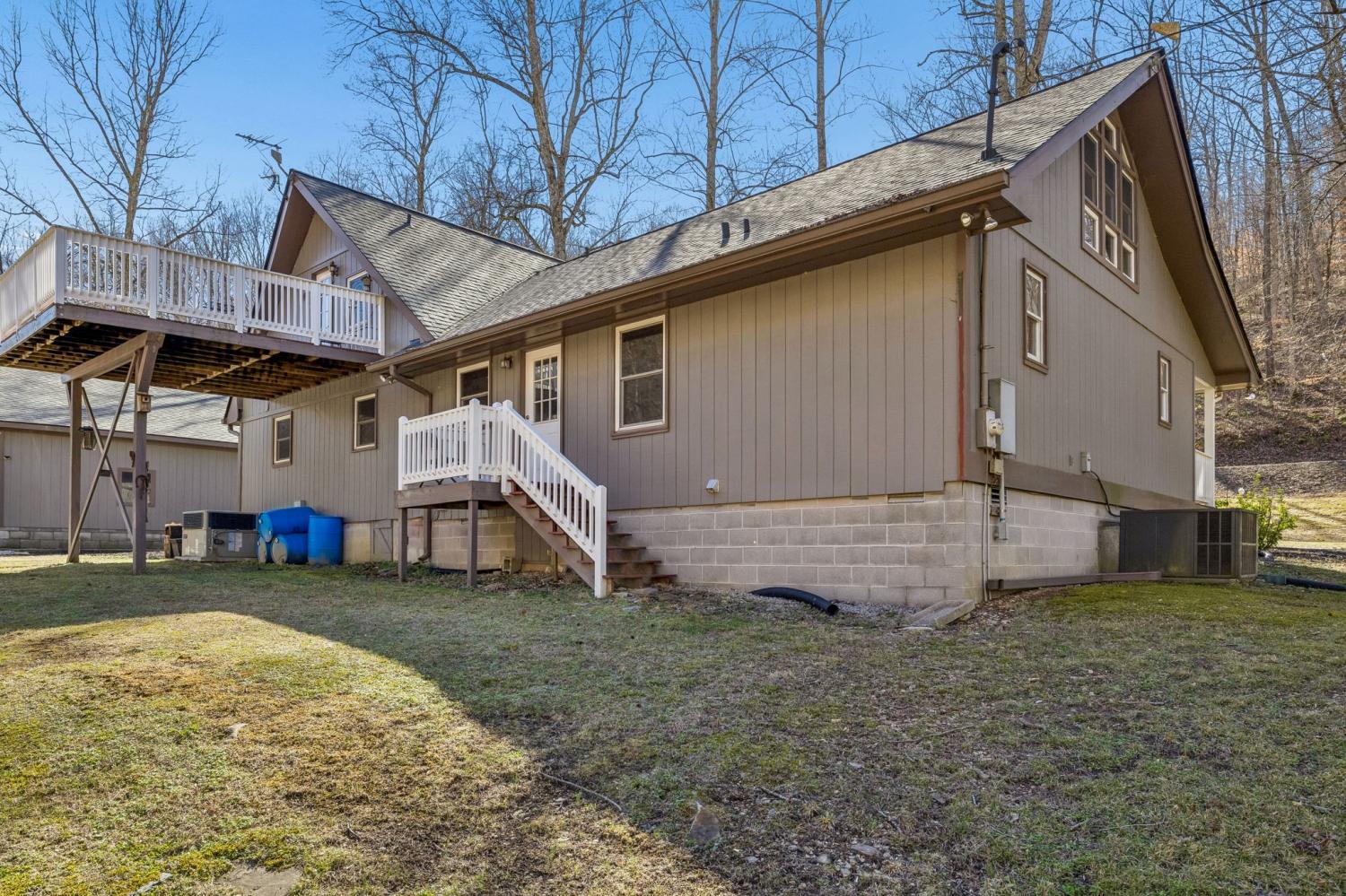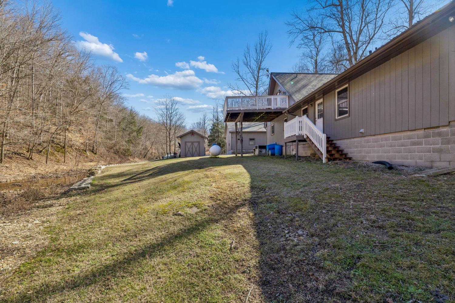 Live like you’re on vacation every day in this stunning Gatlinburg-style A-frame retreat nestled on 6 peaceful acres. A year-round, spring-fed creek flows across the back of the property, and the expansive deck overlooks the water—offering the soothing sounds of trickling water and frequent visits from deer, turkey, and other wildlife.Inside, you’ll find beautiful hardwood floors, a show-stopping custom staircase, crown molding, bead-board ceilings, recessed lighting, and fresh neutral décor throughout. One of the previous owners was a master craftsman, and several of the custom cabinets were personally built on-site in the workshop, adding character and quality you simply can’t replicate.The property includes an impressive 36x32 heated and cooled garage/shop (approximately 1,152 sq ft) with 14-foot ceilings, 10-foot doors, and 8-inch concrete floors—perfect for car enthusiasts, musicians, entrepreneurs, or hobbyists. There is also a 10x19 concrete-floored storage building with electricity. Don't forget the newer roof only about 1.5 years old and the whole house water filtration system. Private, peaceful, and surrounded by woods, this property offers the ultimate retreat while still being conveniently located near Nashville. City water is available, with the option to switch to the spring-fed well. Not located in a flood plain. Move-in ready and thoughtfully updated throughout—this is your private paradise in Middle Tennessee.